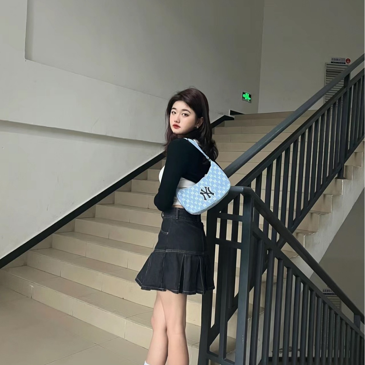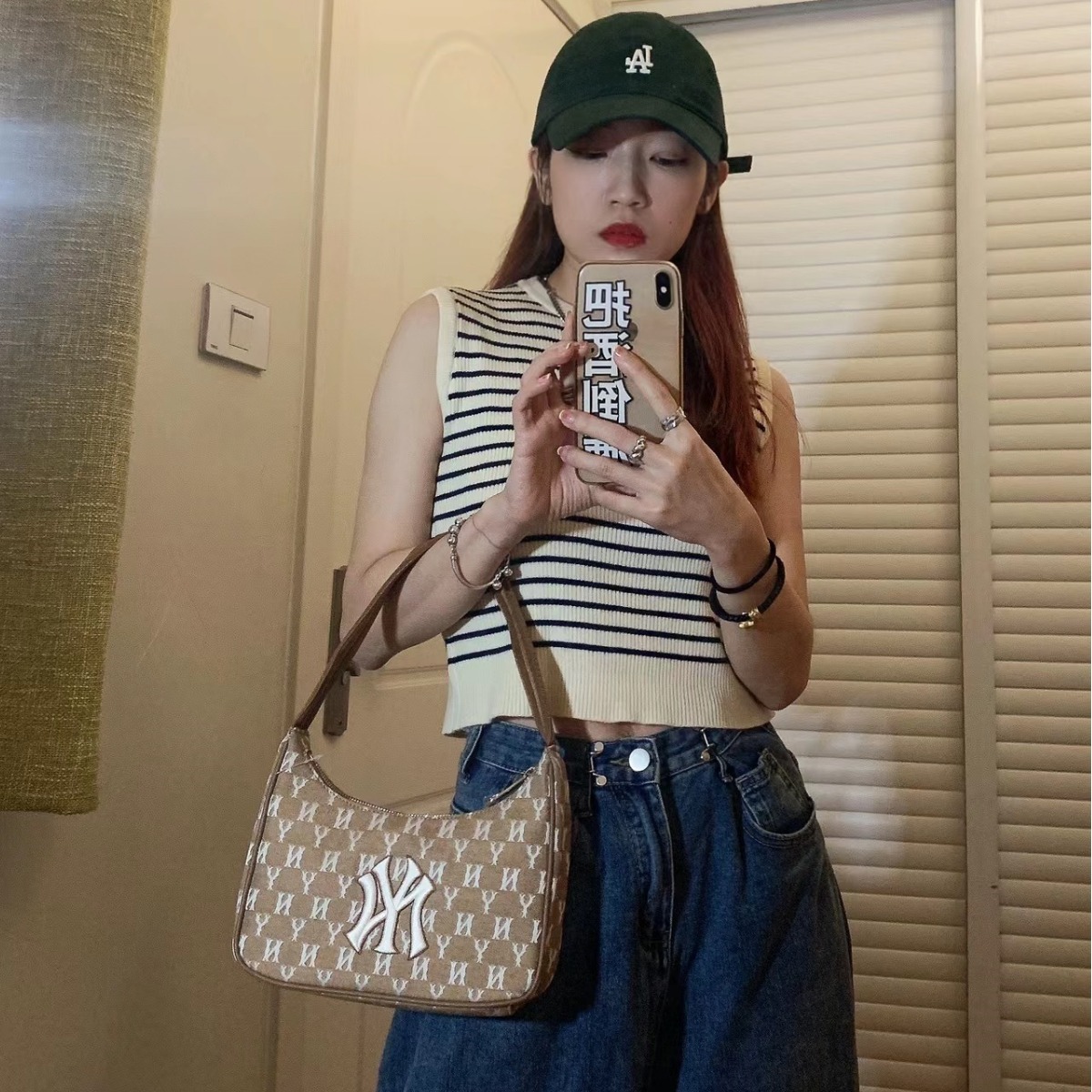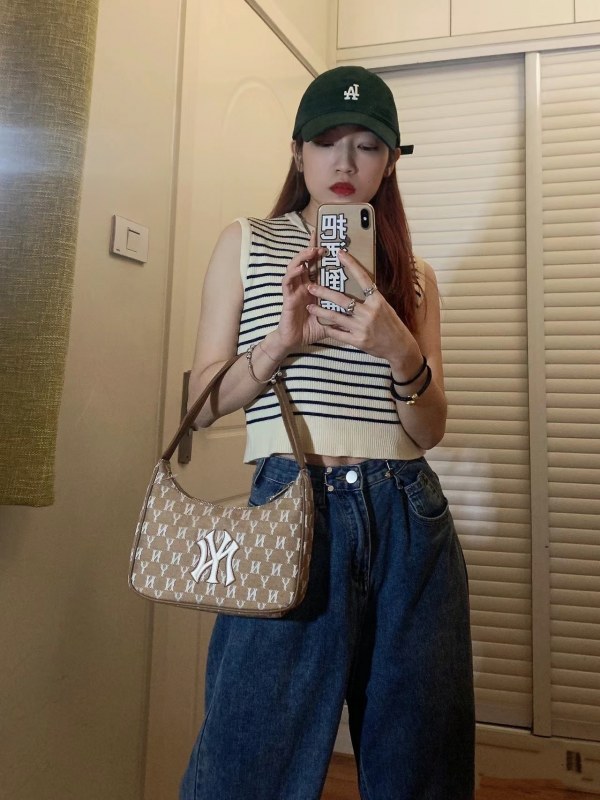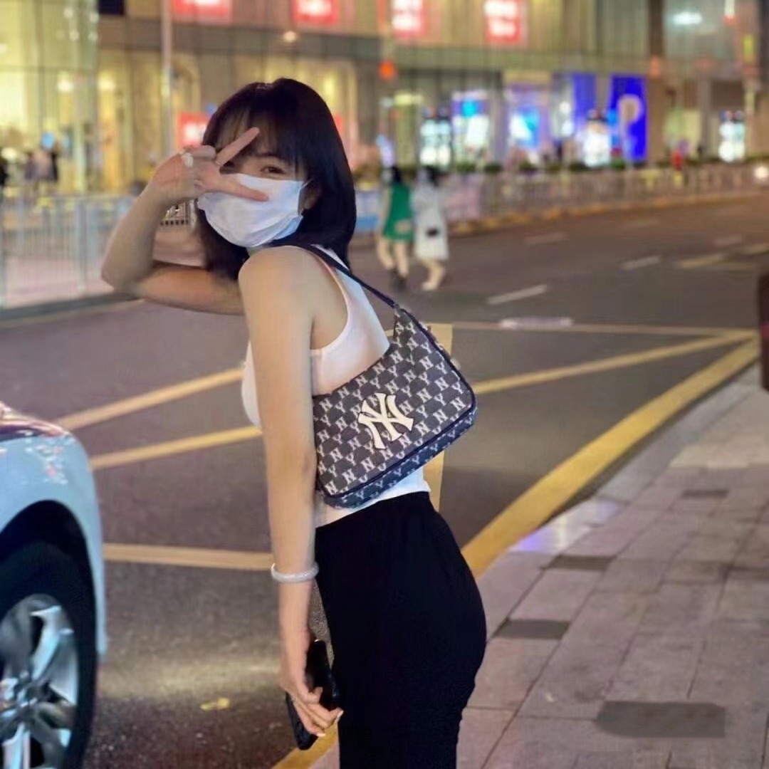 • 韓国 mlb 脇の下バッグ刺繍フルプリントレトロトレンディな軽量ハンドバッグレディースファッション多用途ショルダーバッグ