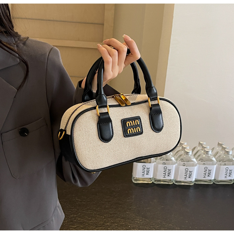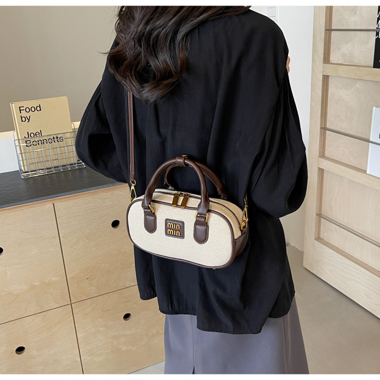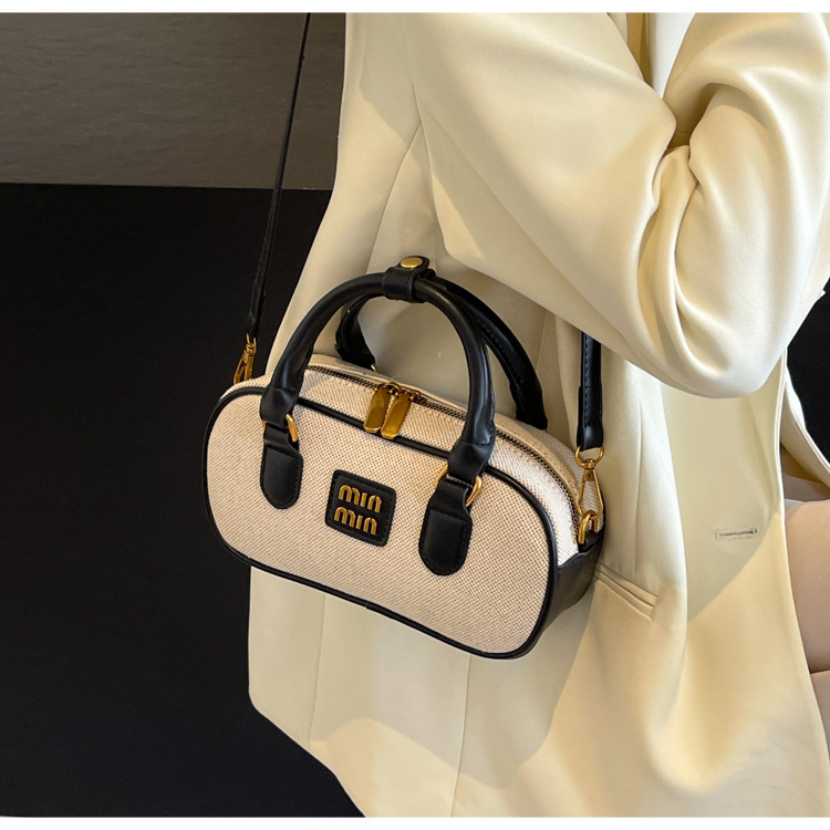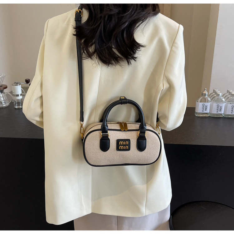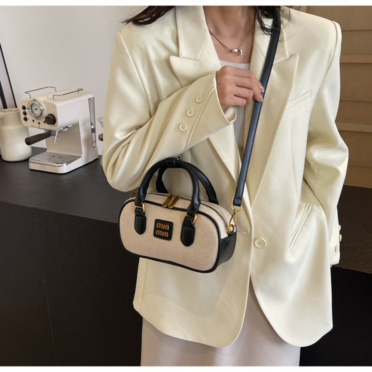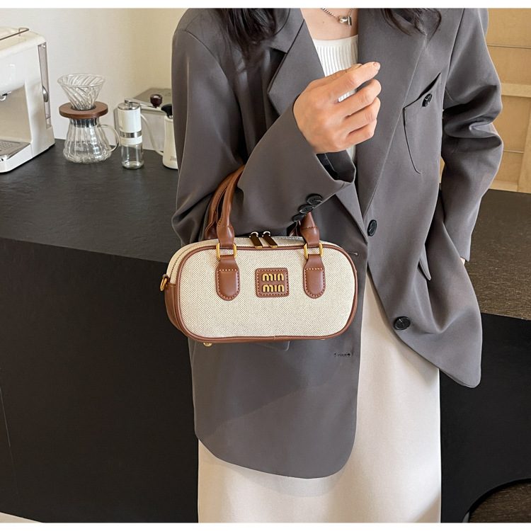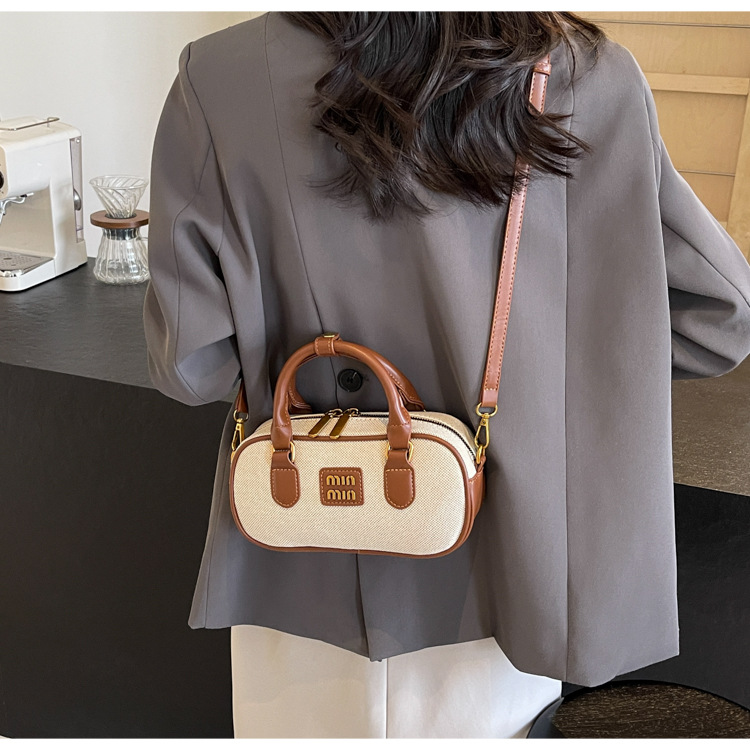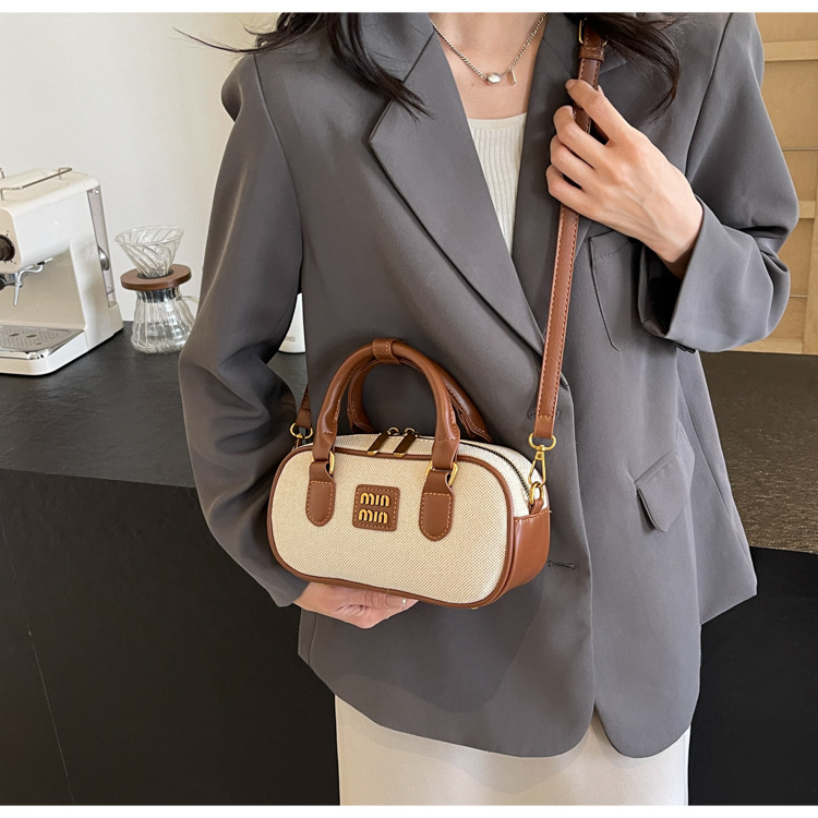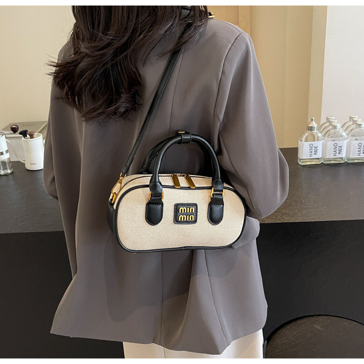 • レトロボストンコントラストカラーポータブル枕小さなバッグ女性 2024 新多用途ファッションショルダーメッセンジャーバッグ