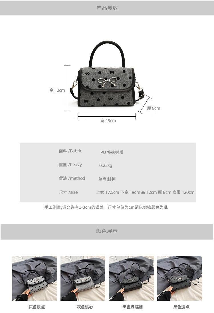 • 韓国スタイルのリボンバッグ女性の 2024 新しいシングルショルダークロスボディバッグハイエンド水玉ハンドヘルド小さな正方形バッグ