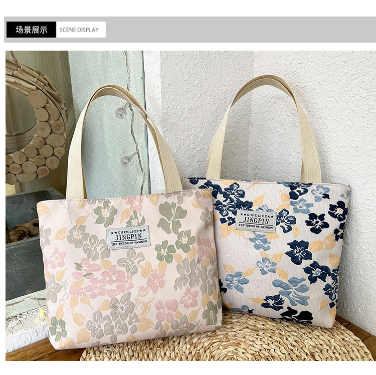 • 小花柄キャンバスバッグ 化粧品バッグ レディース ショルダーバッグ カジュアル ハンドバッグバッグ 文学風プリントバッグ
