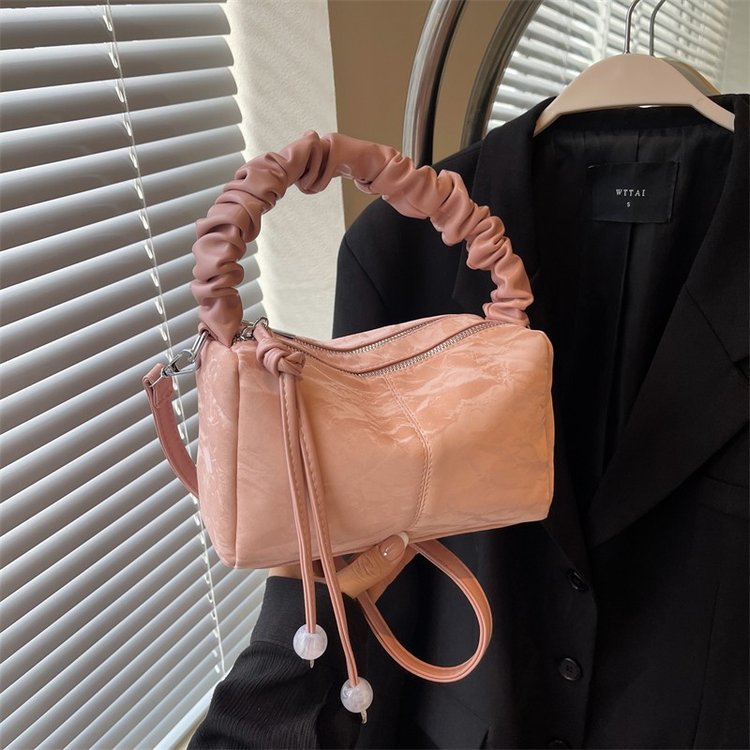 • レディース ジッパー付き PU ステッチ スモール スクエア バッグ ショルダーバッグ