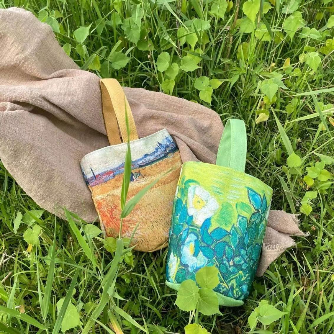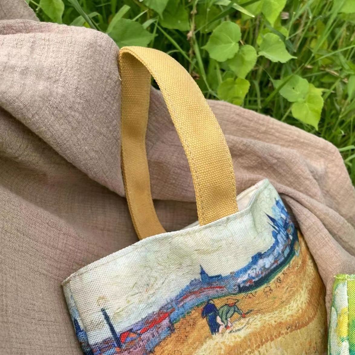• バケツバッグ、文学ハンドバッグ、日本のカップバッグ、レトロハンドキャンバスバッグ