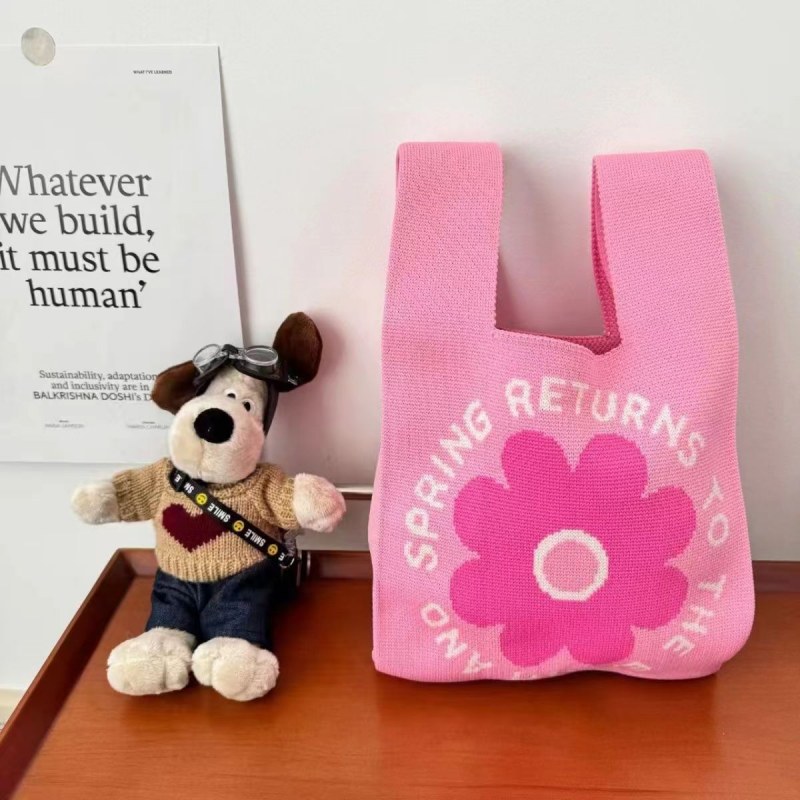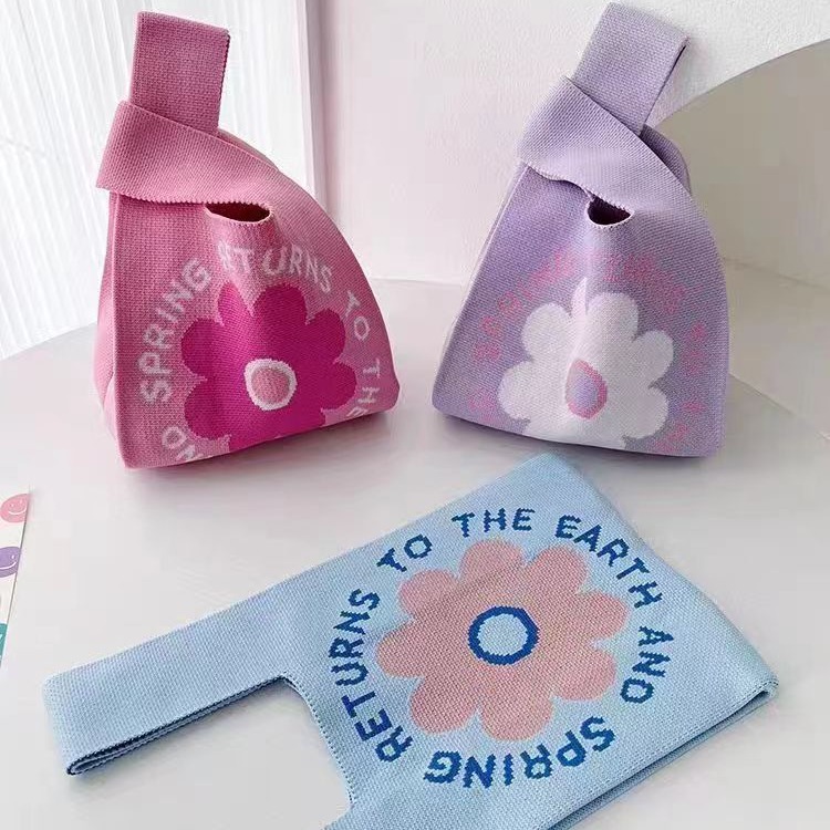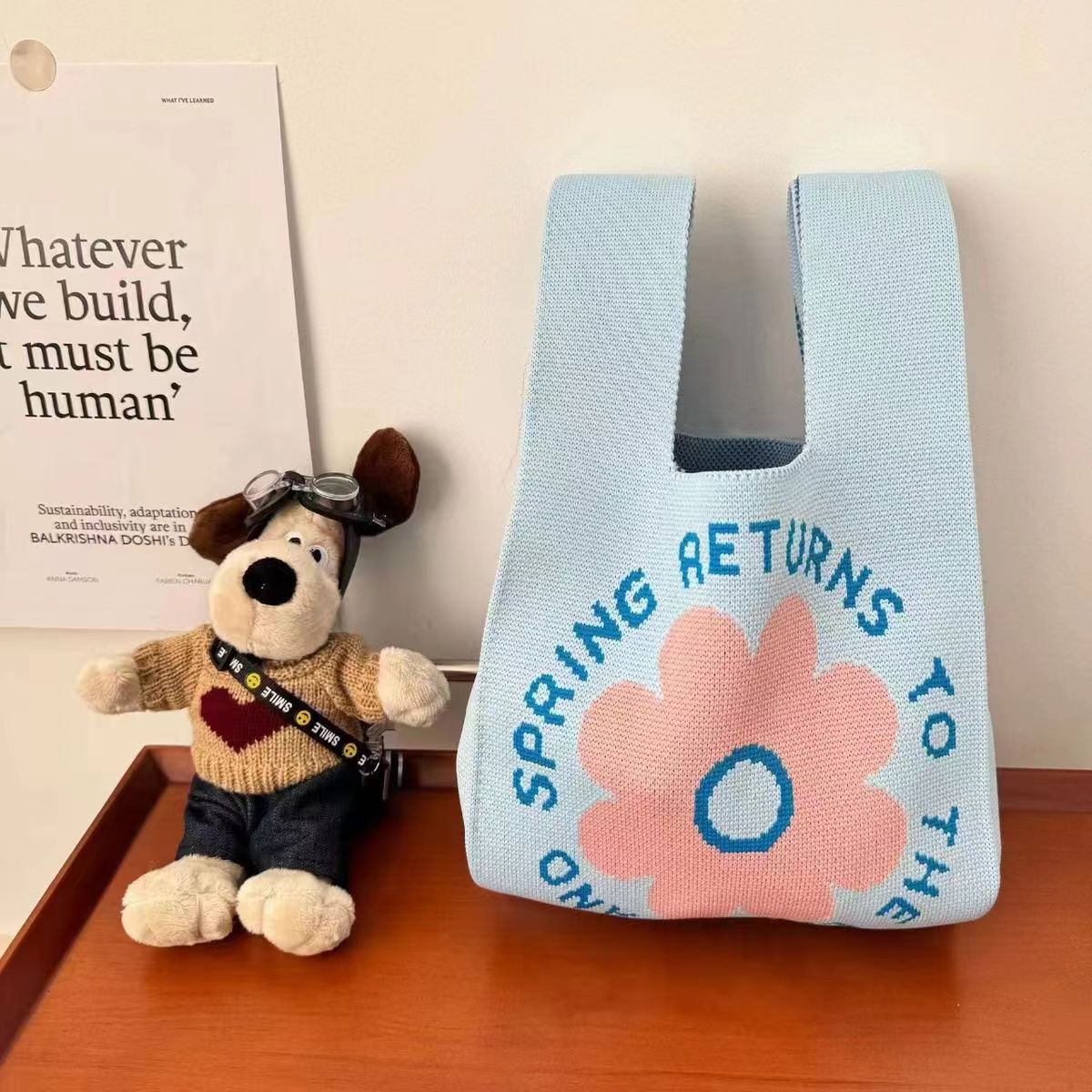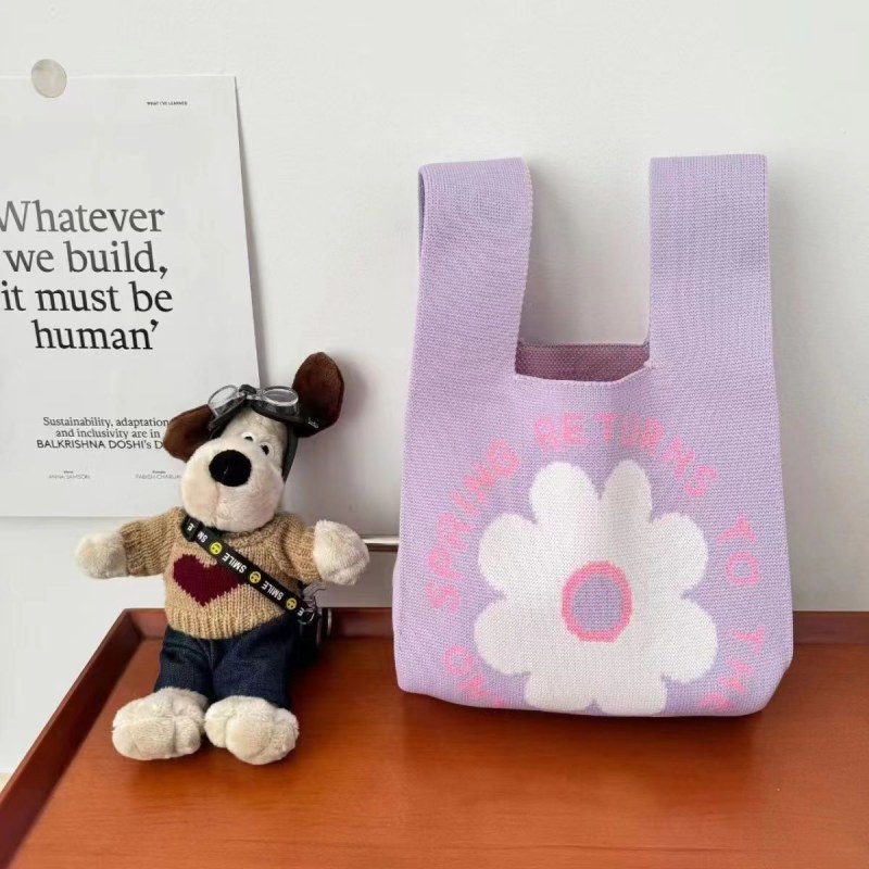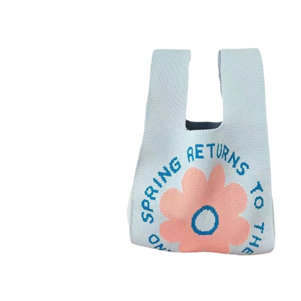 • 女性の外出時の携帯用ハンドバッグ、ニットウールのバケットバッグ、かわいいバッグ、カジュアルトート