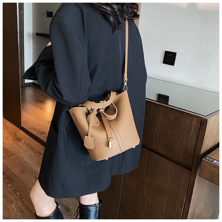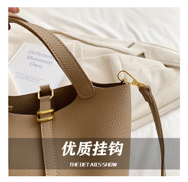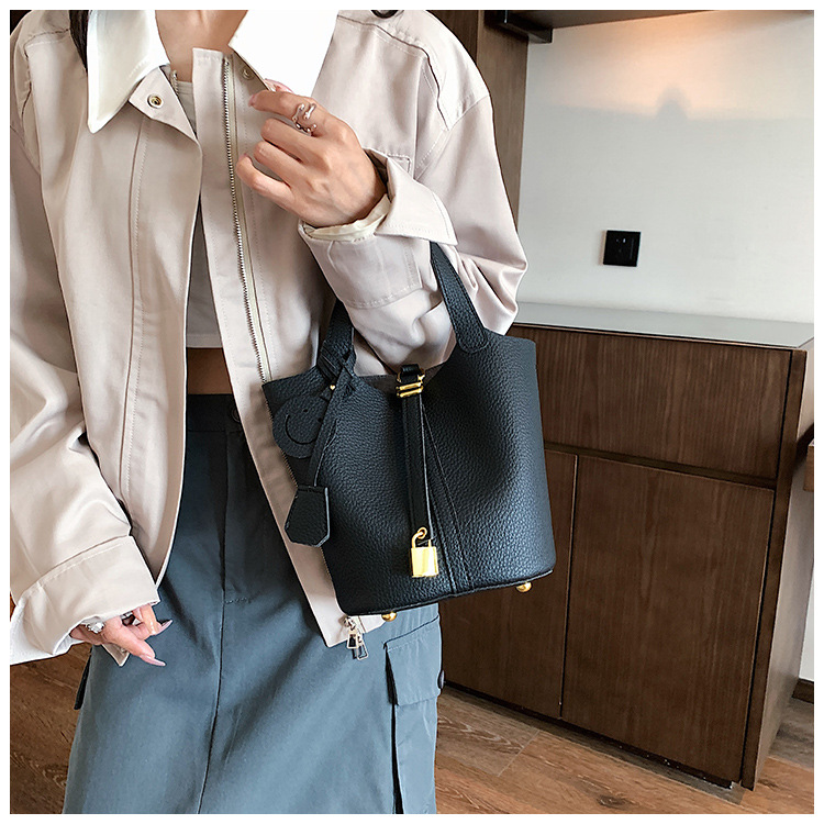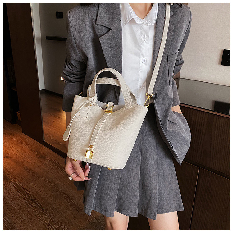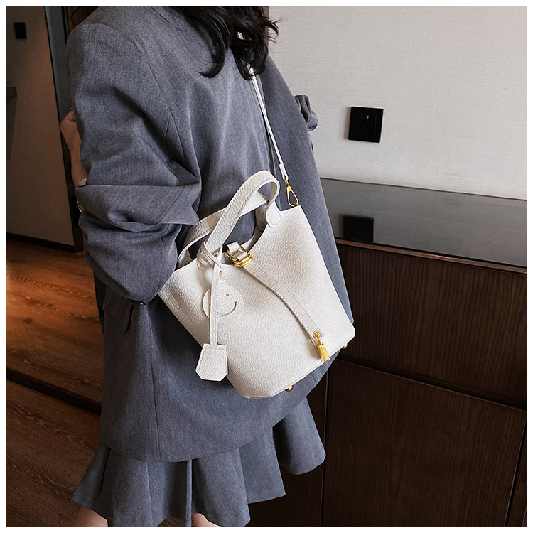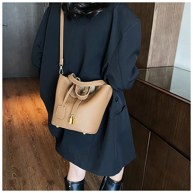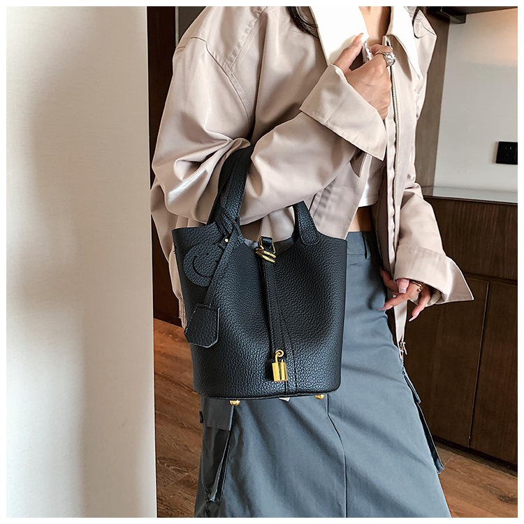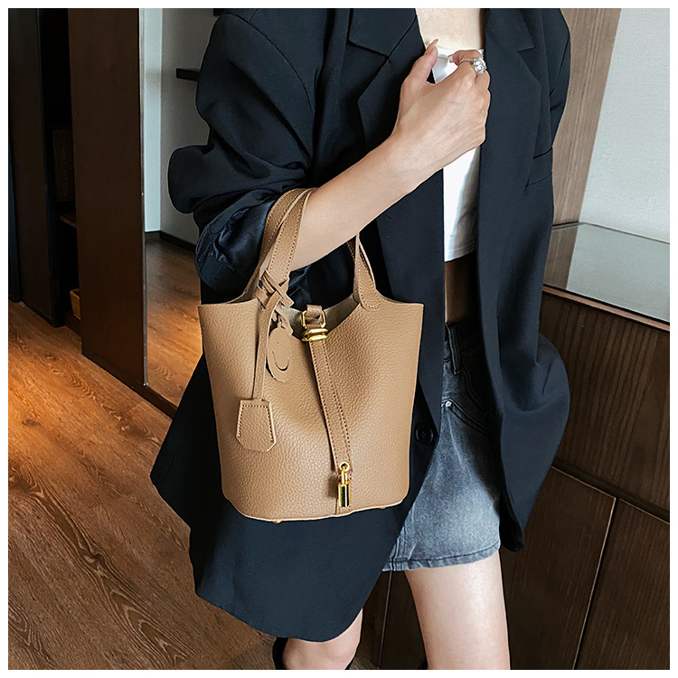 • 新しいスタイルの女性用バッグ、ライチ柄無地ハンドバッグ、シンプルなカジュアルな女性用バケットバッグ、ハンドバッグ