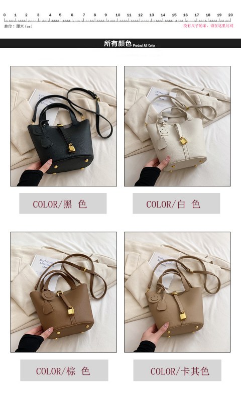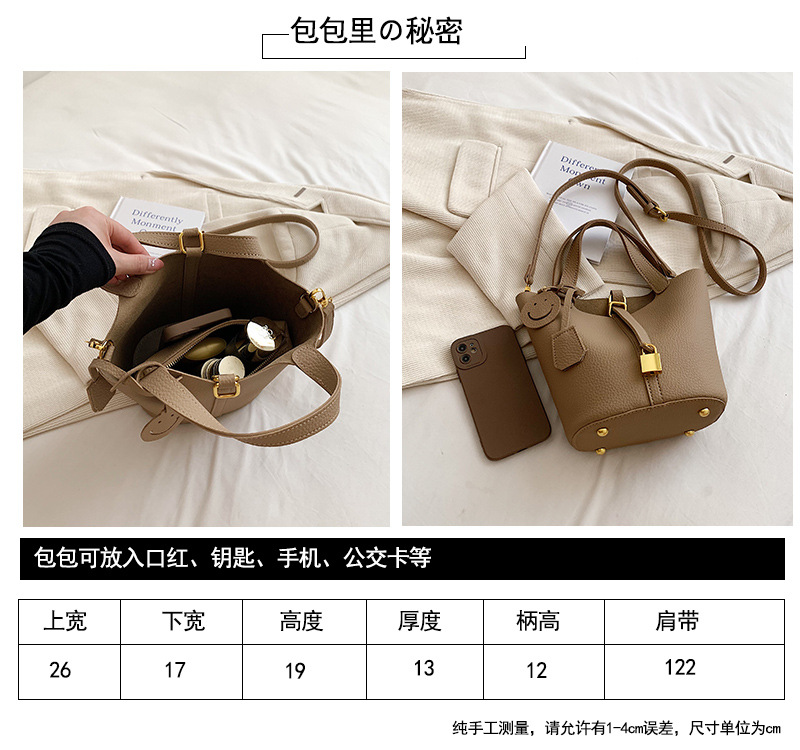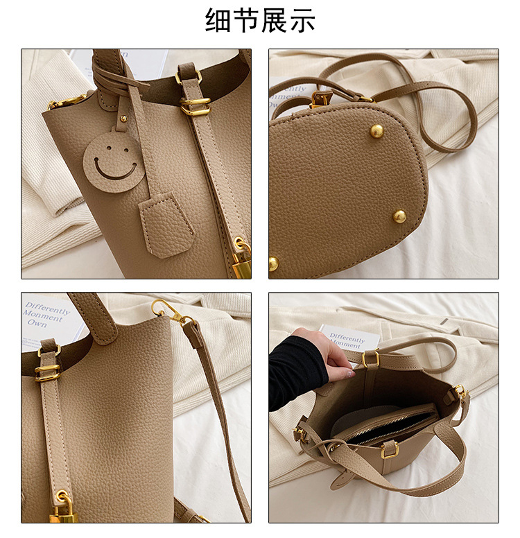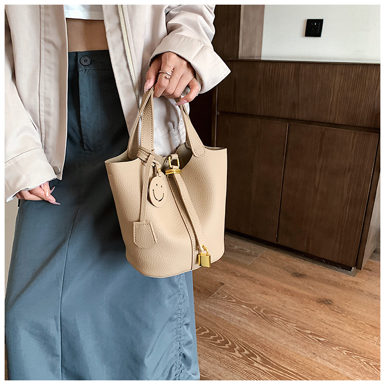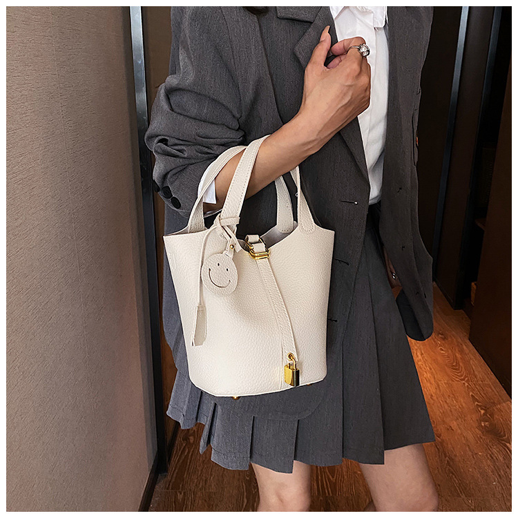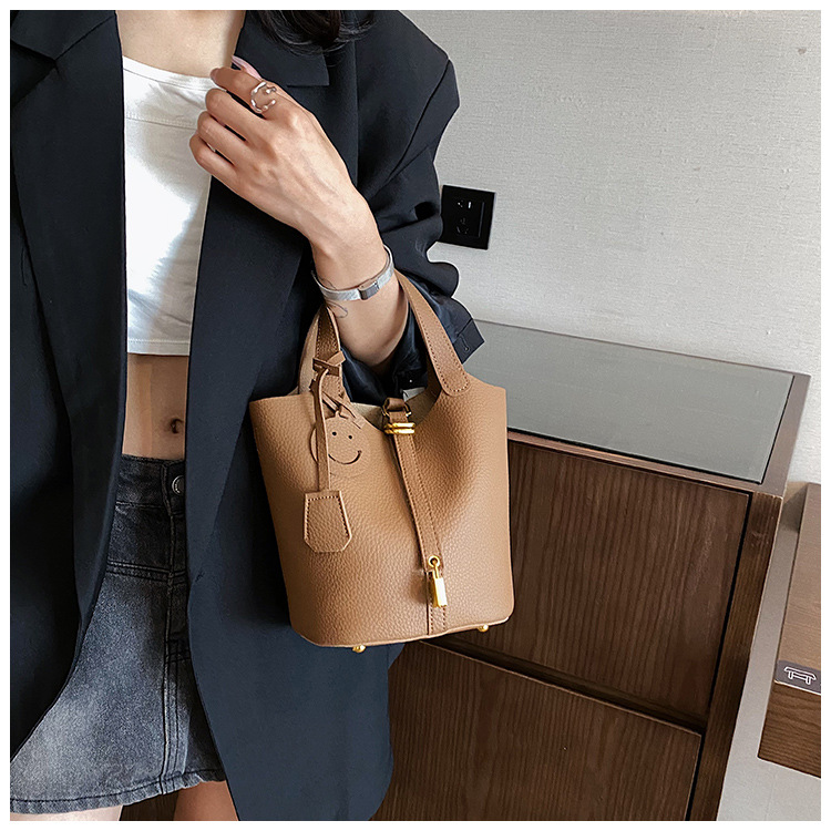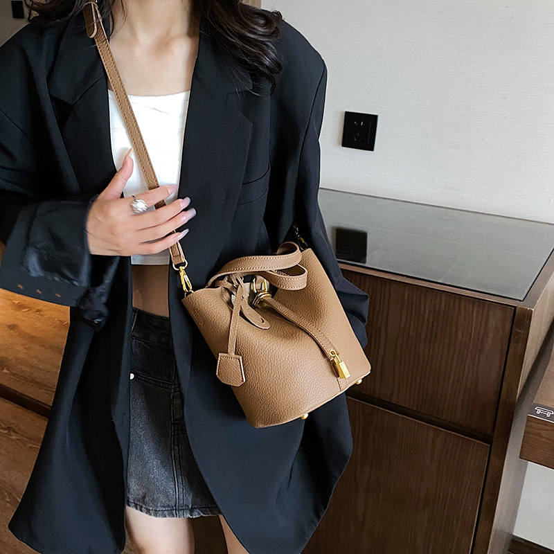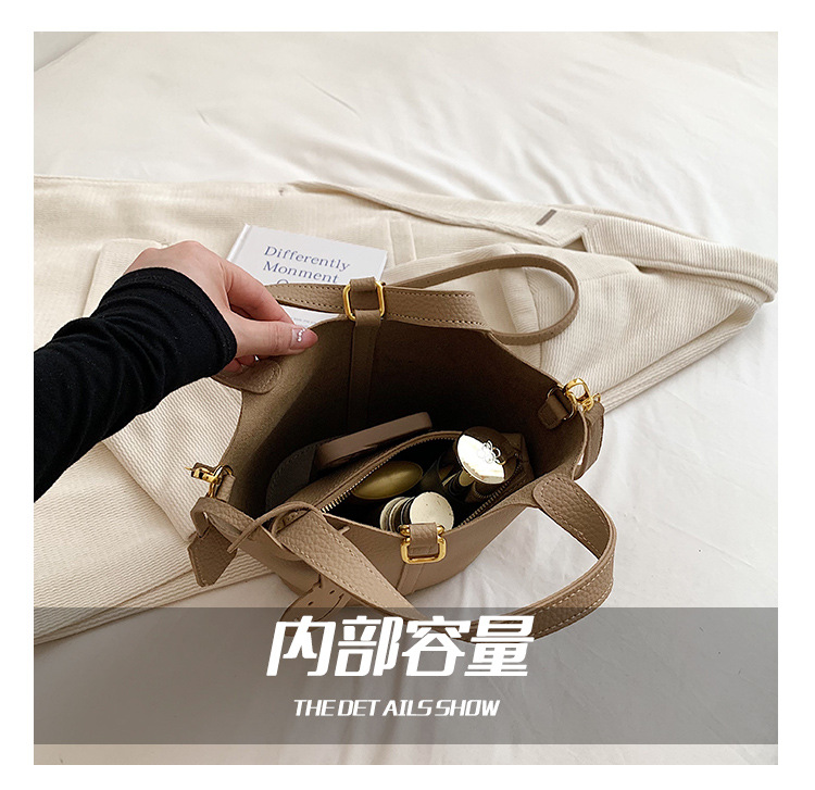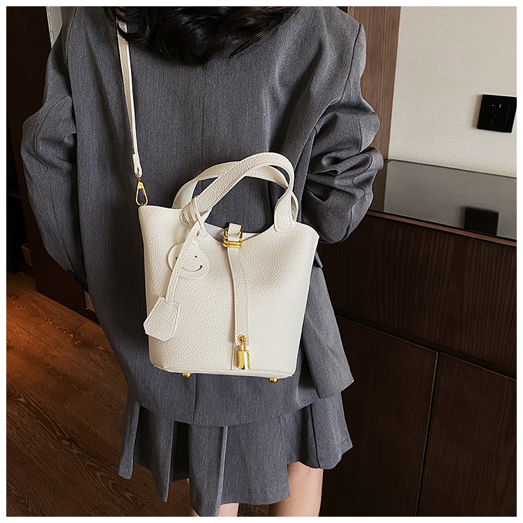 • 新しいスタイルの女性用バッグ、ライチ柄無地ハンドバッグ、シンプルなカジュアルな女性用バケットバッグ、ハンドバッグ
