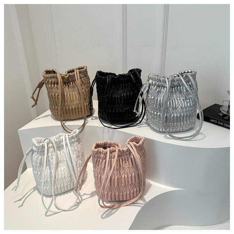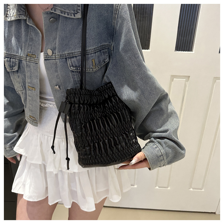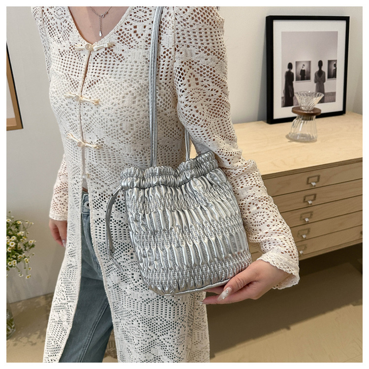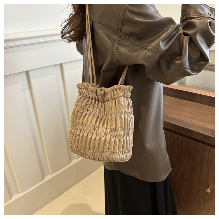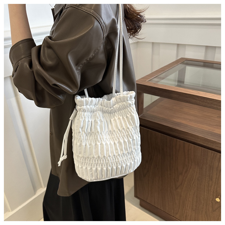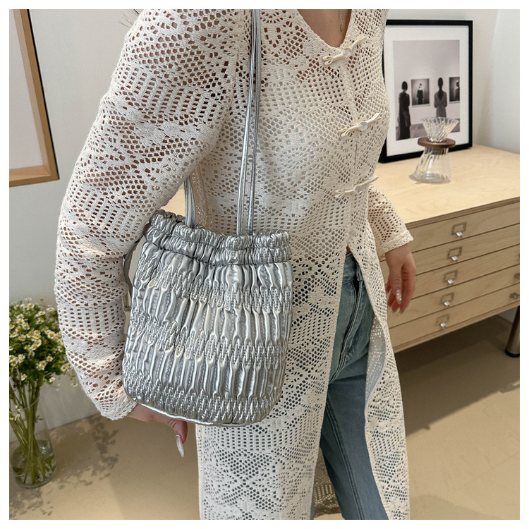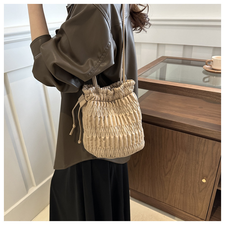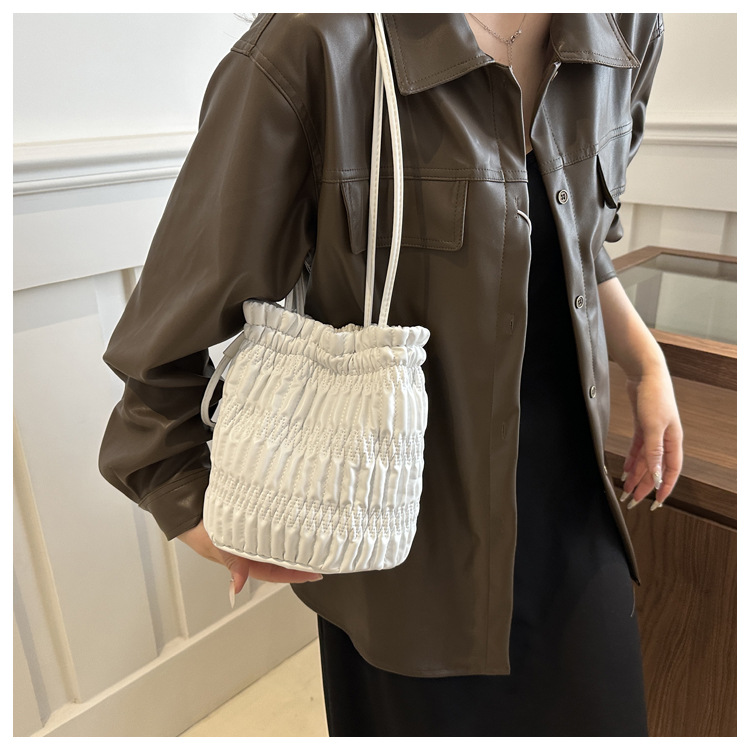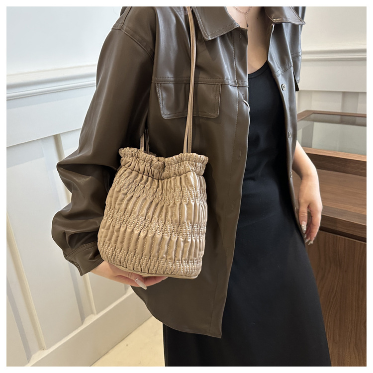 • ファッション穏やかなプリーツショルダーバッグ女性のための 2024 春の新多目的イン脇の下バッグバケットバッグ女性のための
