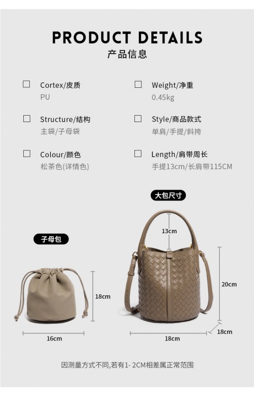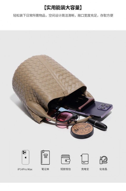 • 手編みのポータブルバケットバッグ、ファッショナブル、カジュアル、多用途、シンプルで新しいスタイルのクロスボディショルダーバッグ