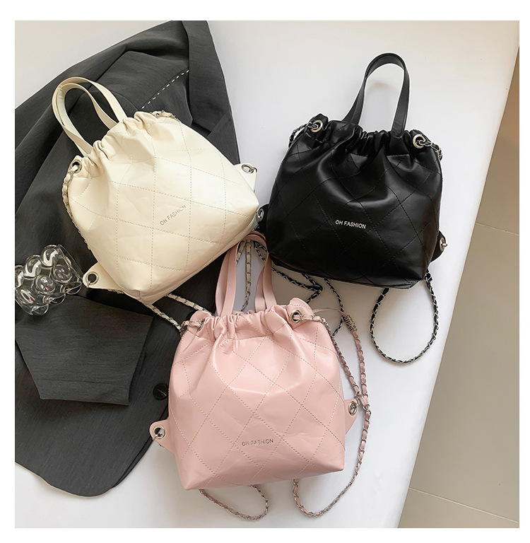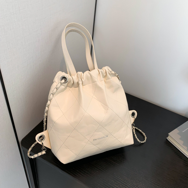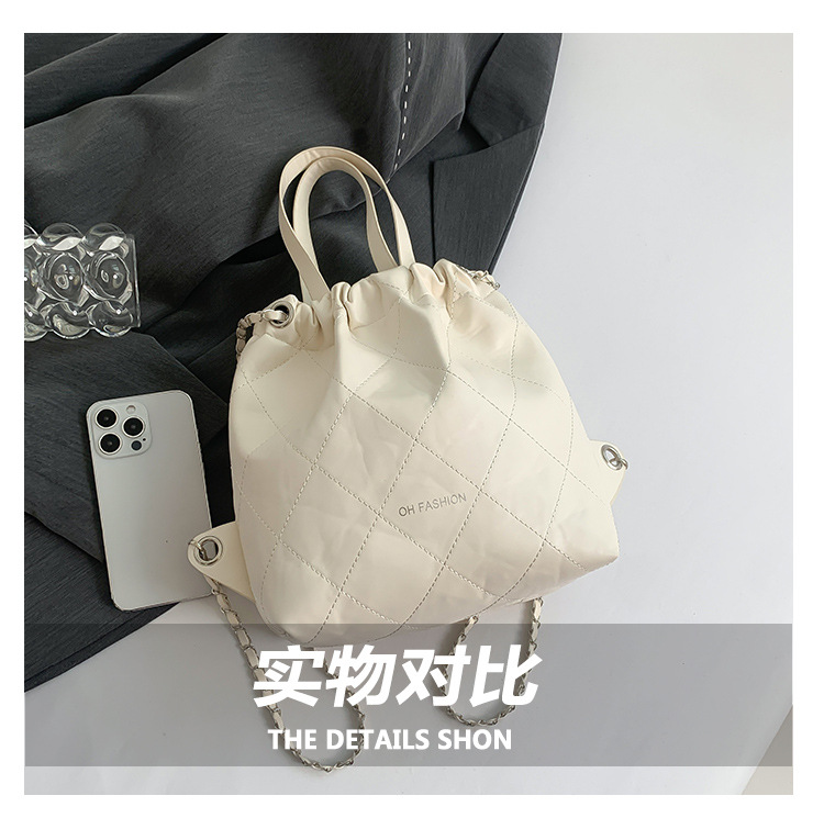 • 巾着大容量ファッション女性の無地カジュアルバッグ 2024 新しい多用途 Ins バックパックバケットバッグ女性のための