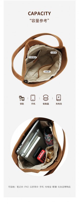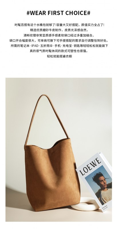 • レディースバッグニッチ多用途ポータブルショルダーバッグソリッドカラー通勤大容量ハイエンドフロストレザーバケットバッグ