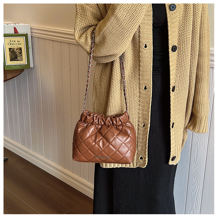 • ファッションチェーン巾着バッグ女性の冬の新しい多用途韓国スタイルのクロスボディバケットバッグ