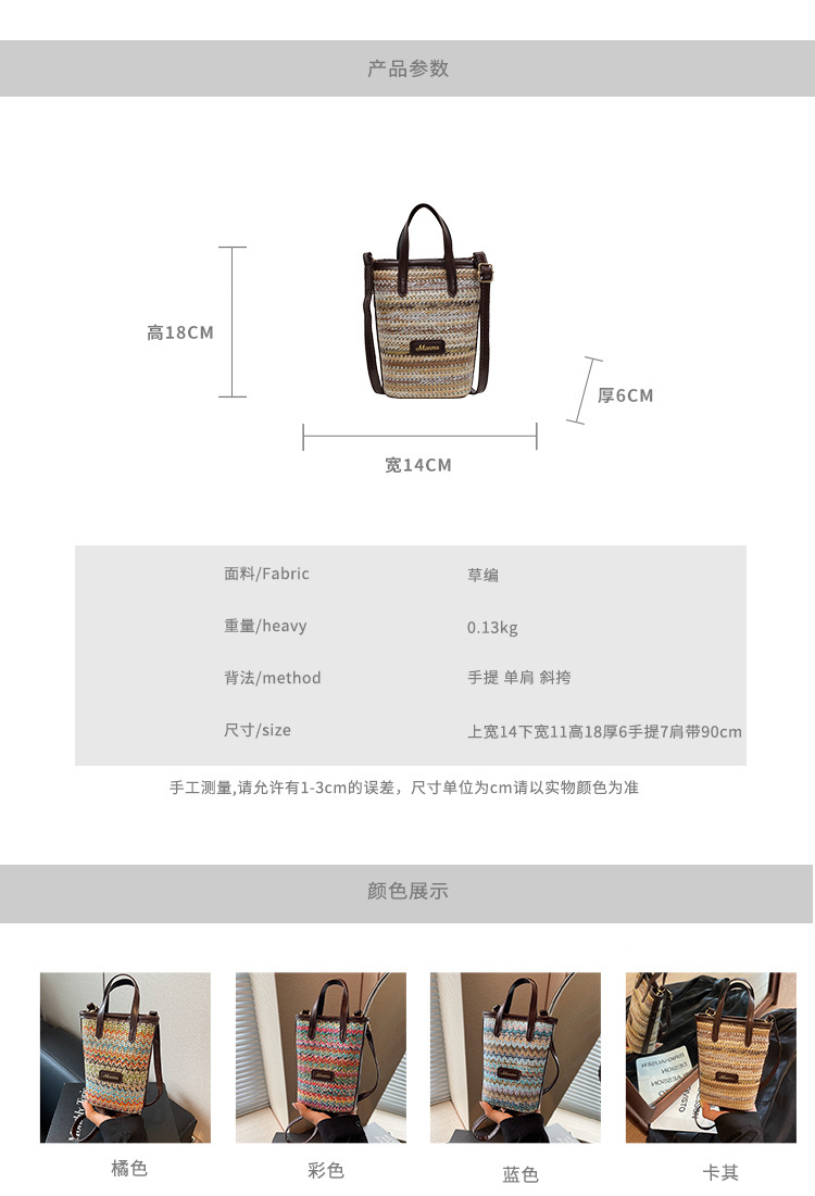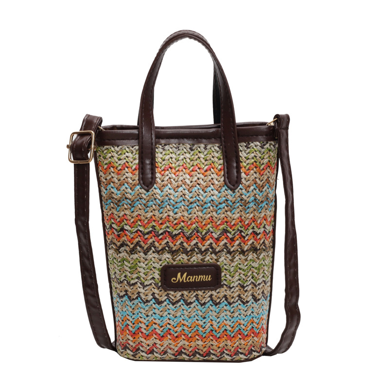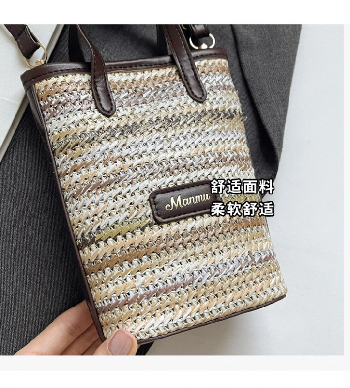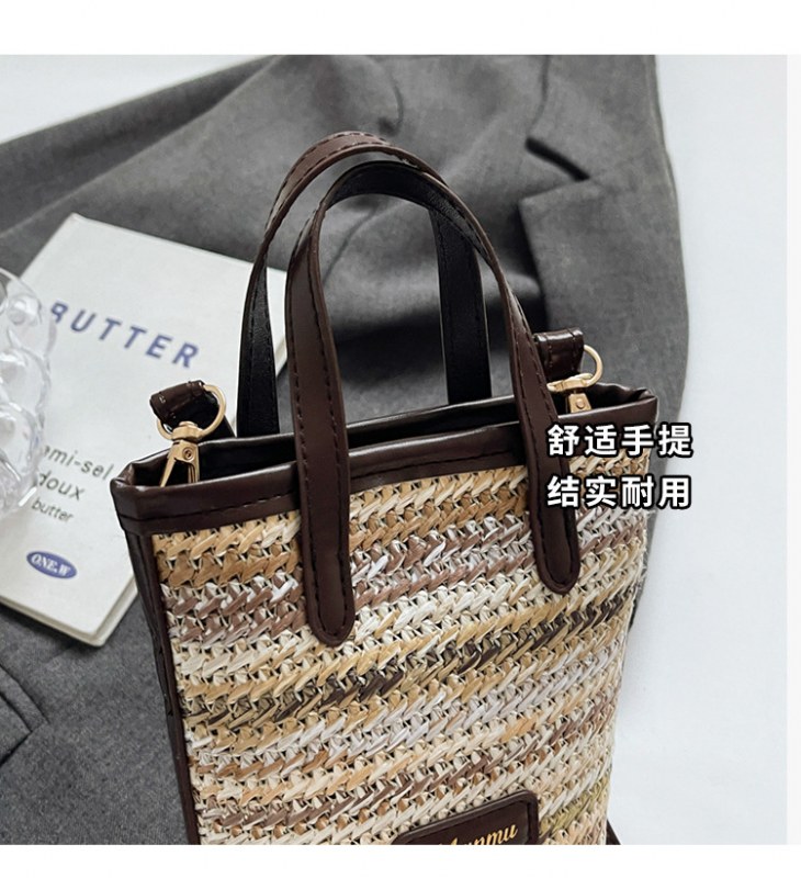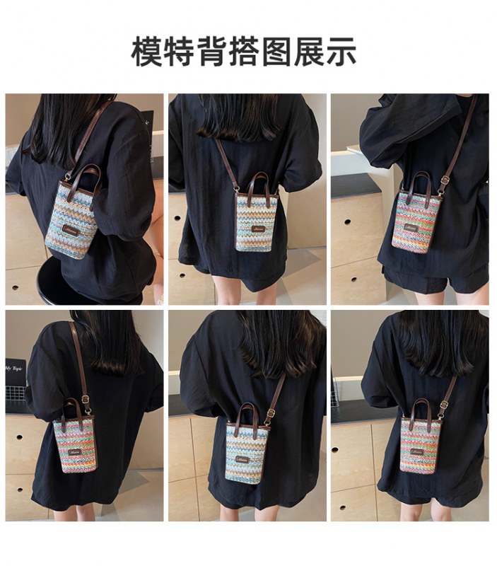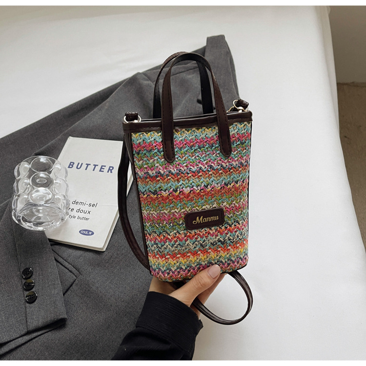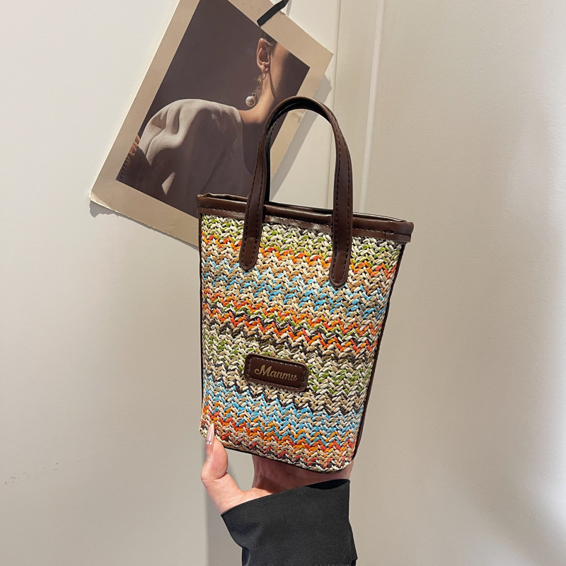 • 絶妙なミニスーパーホットスモールバッグ女性 2024 新しい人気のコントラストカラーわらバケツバッグ多用途クロスボディ携帯電話バッグ