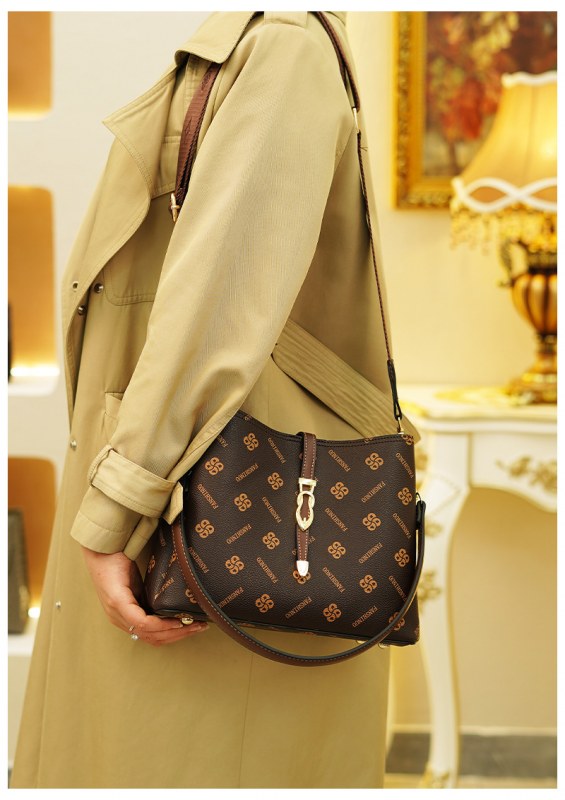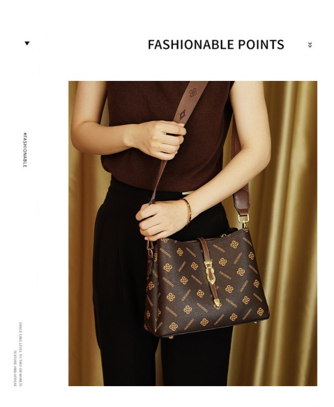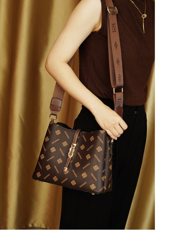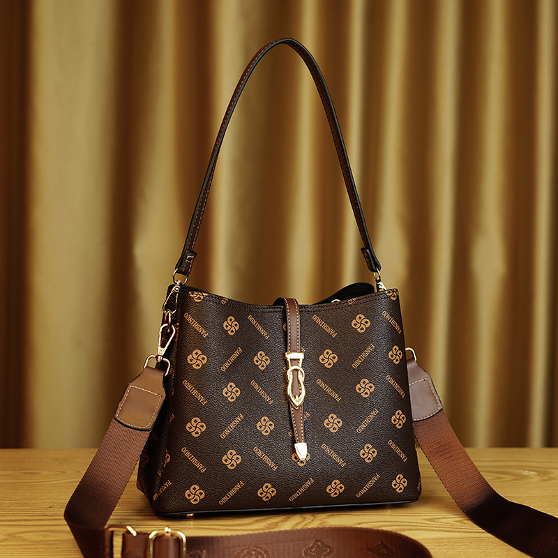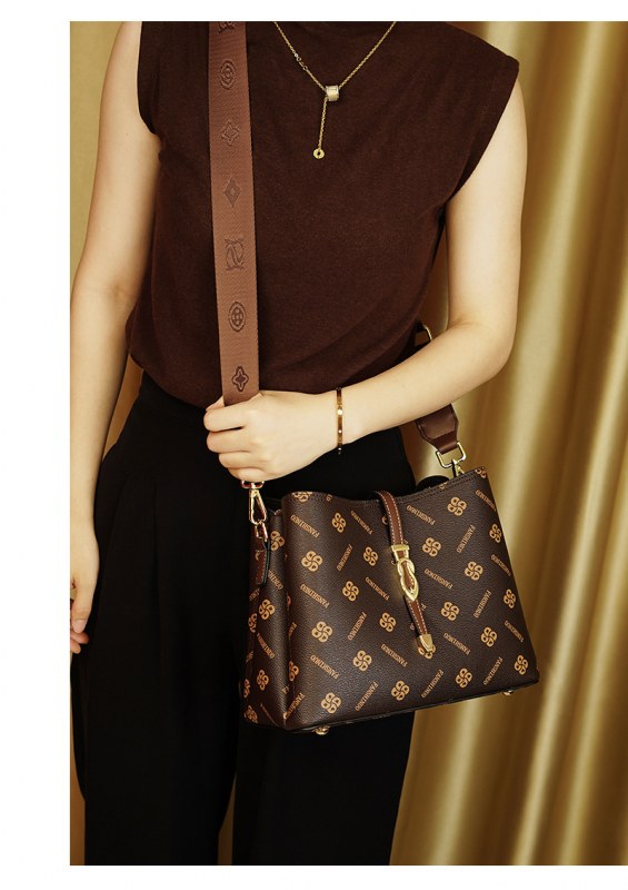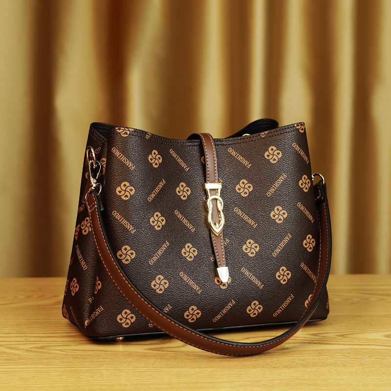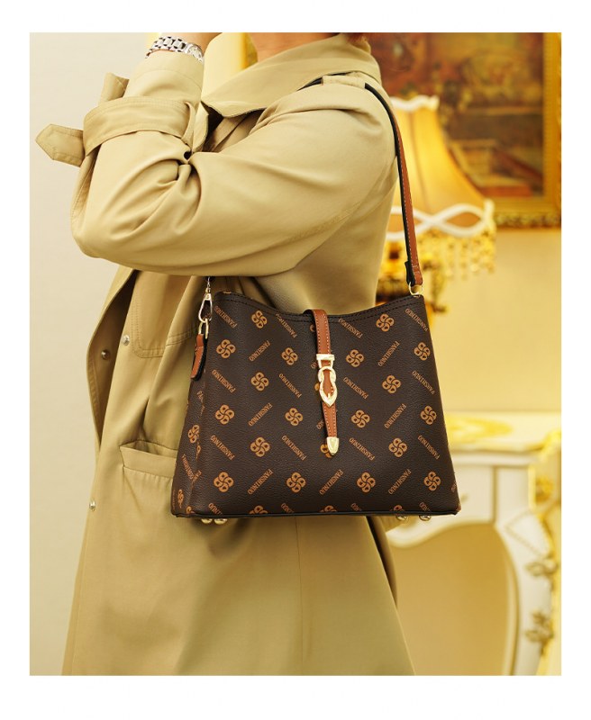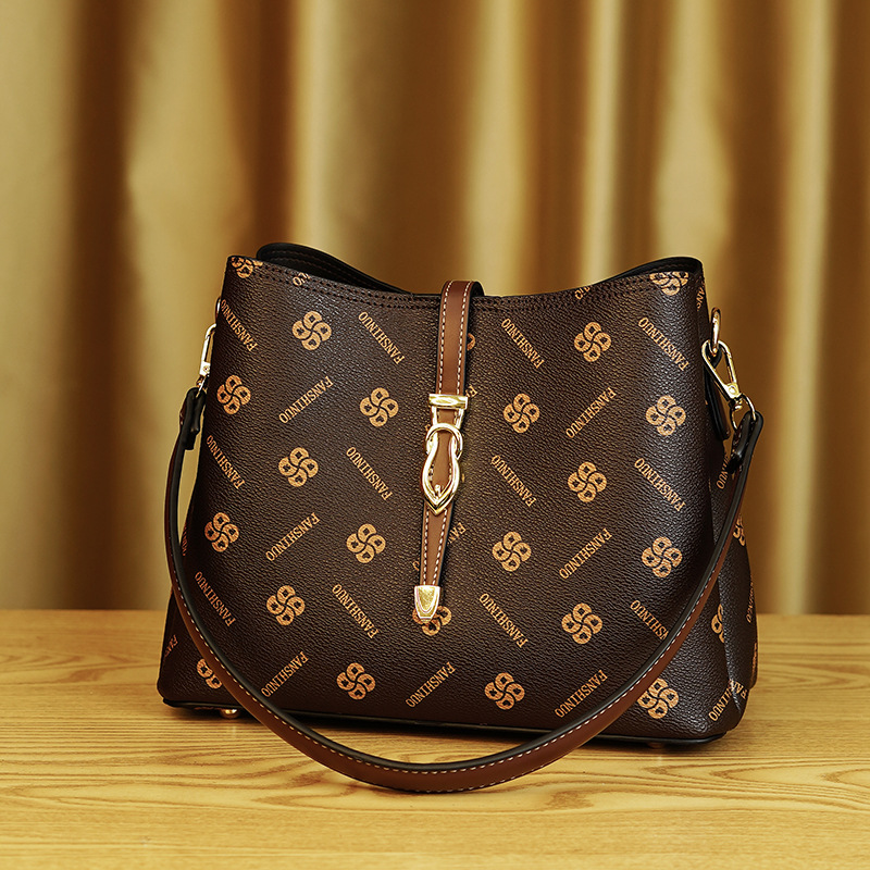 • バケットレディースバッグ 2024 秋の新ハイエンドプリントショルダーバッグレトロ多用途トレンディなクロスボディバッグ