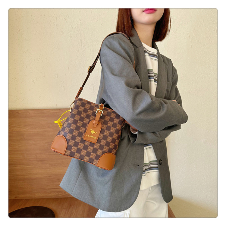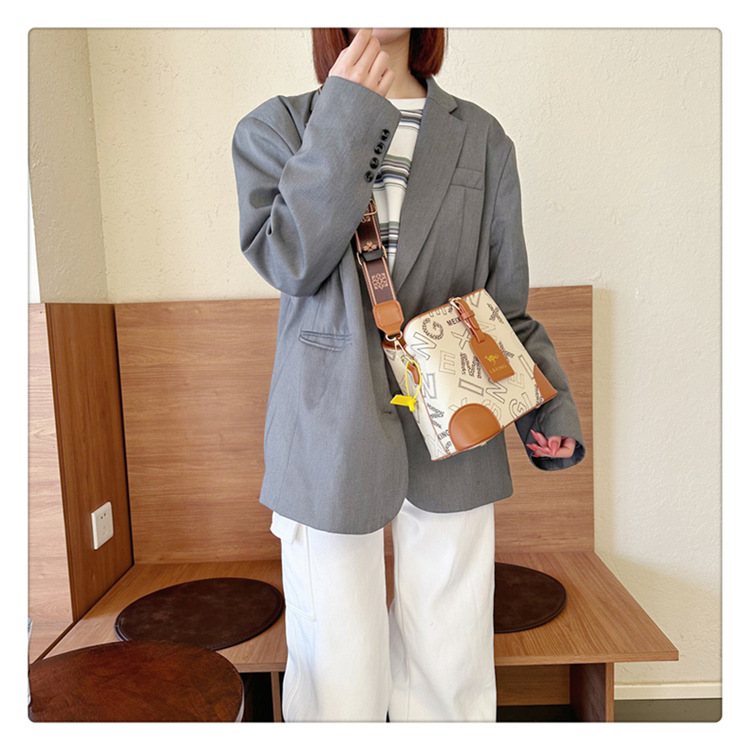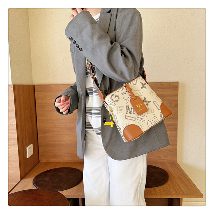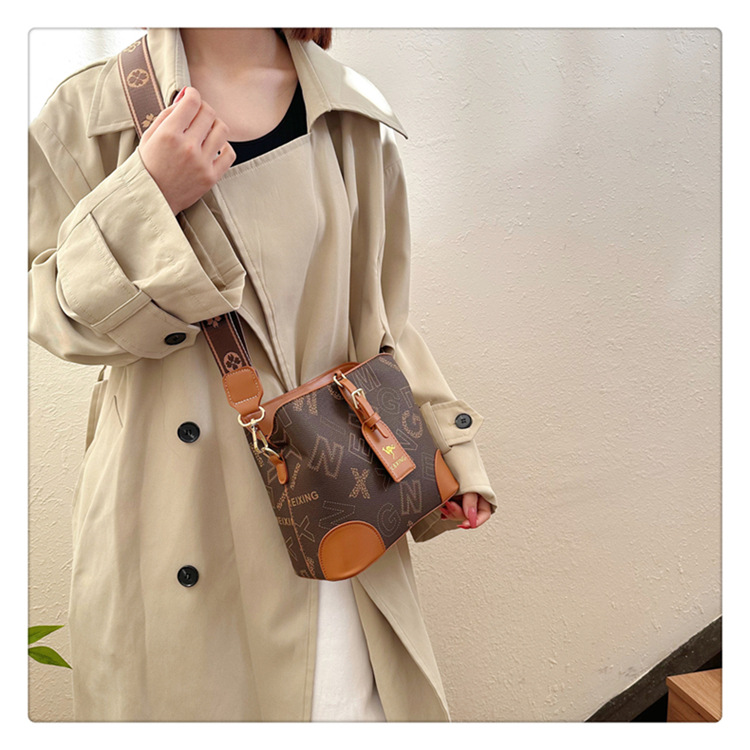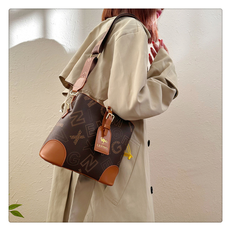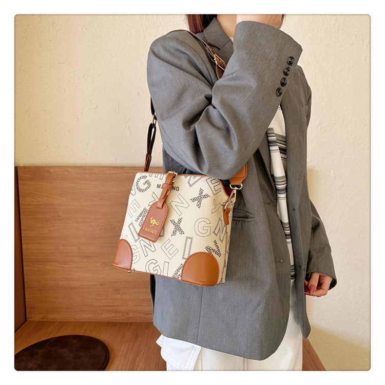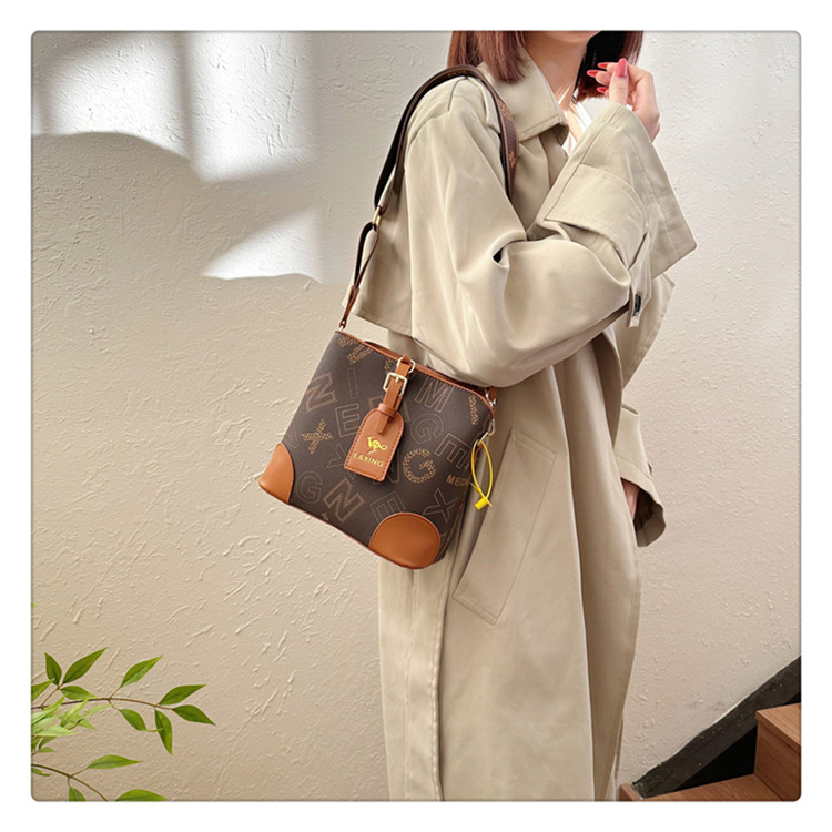 • 女性のためのバッグ 2024 新しいハイエンドバッグプリント文字大容量バケツバッグショルダーハンドバッグトレンド