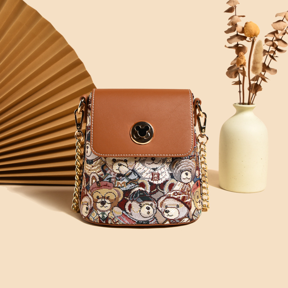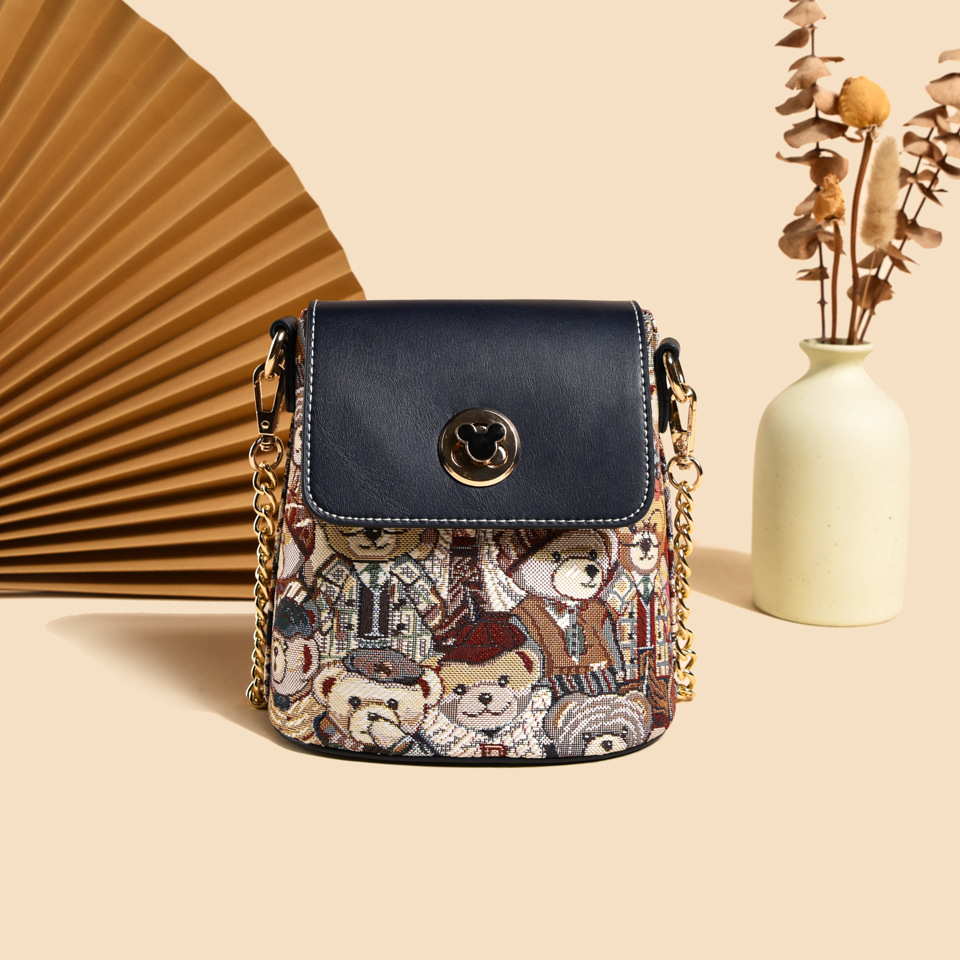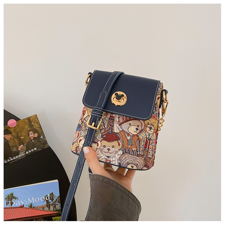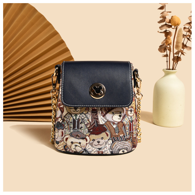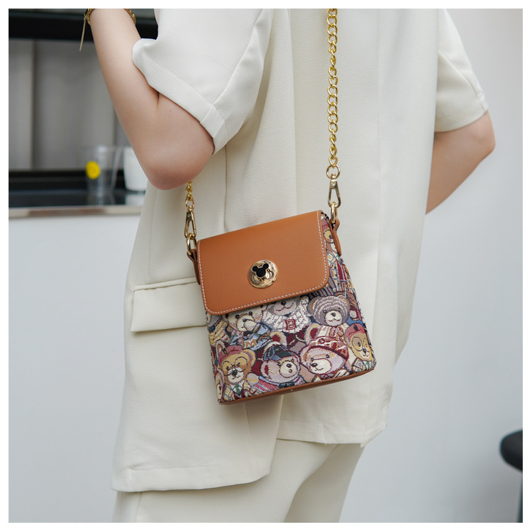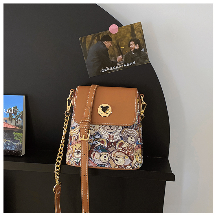 • フリップ キャンバス レザー コントラストカラー バケット バッグ レディース 新しいトレンディなワンショルダー クロスボディ ベア バッグ