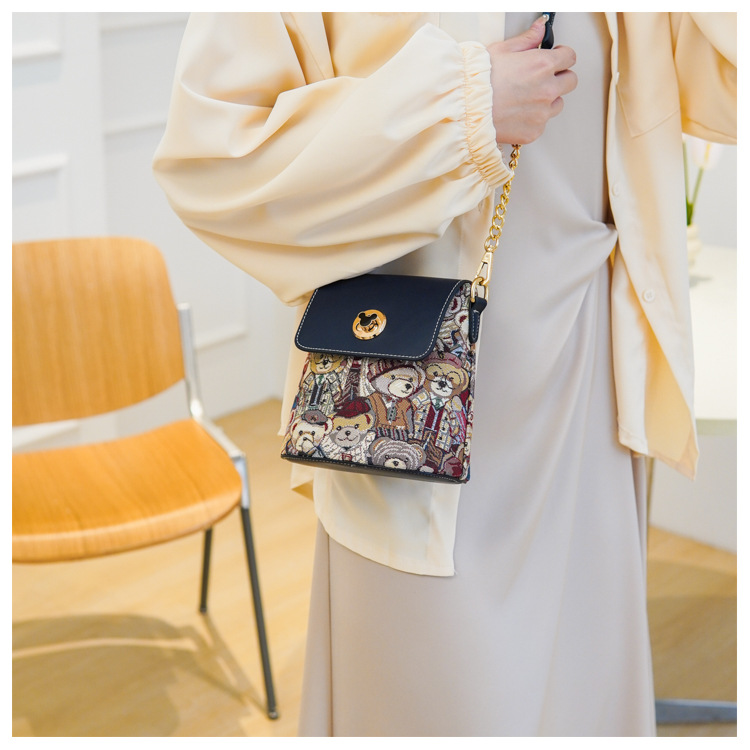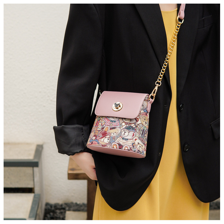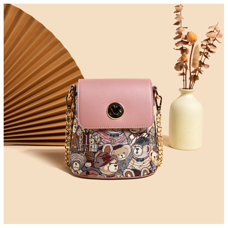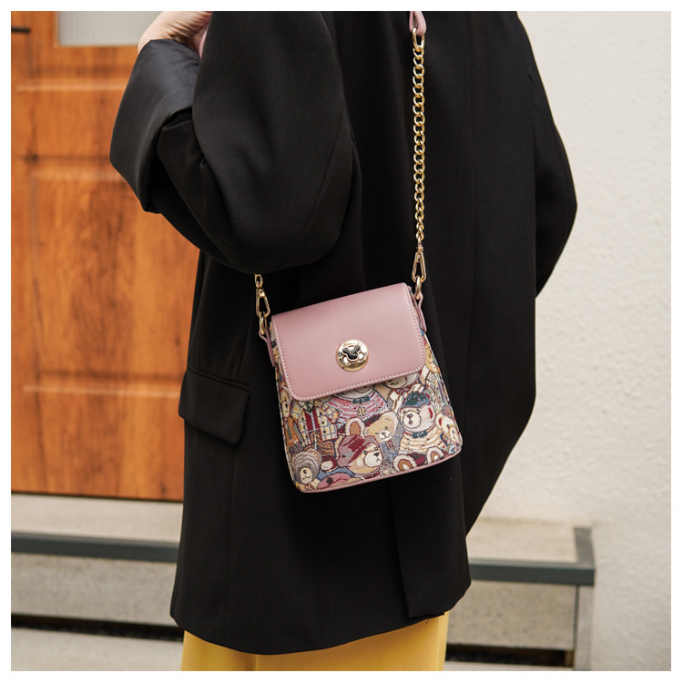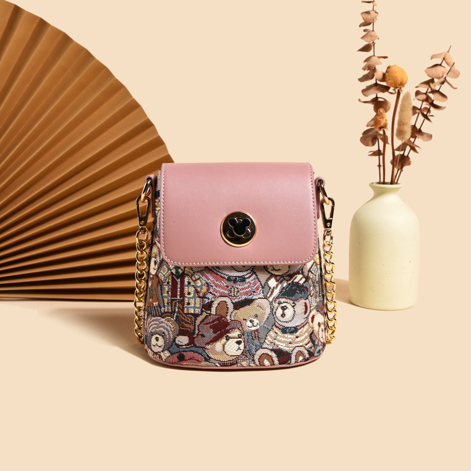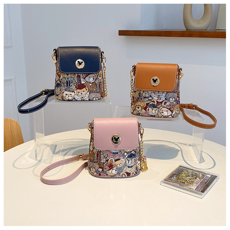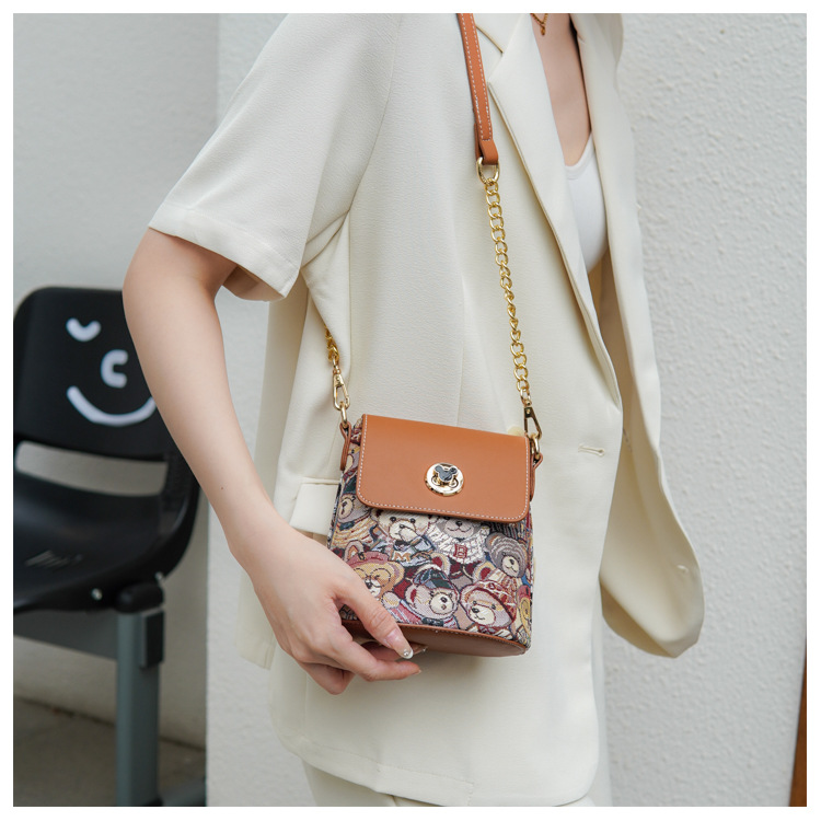 • フリップ キャンバス レザー コントラストカラー バケット バッグ レディース 新しいトレンディなワンショルダー クロスボディ ベア バッグ