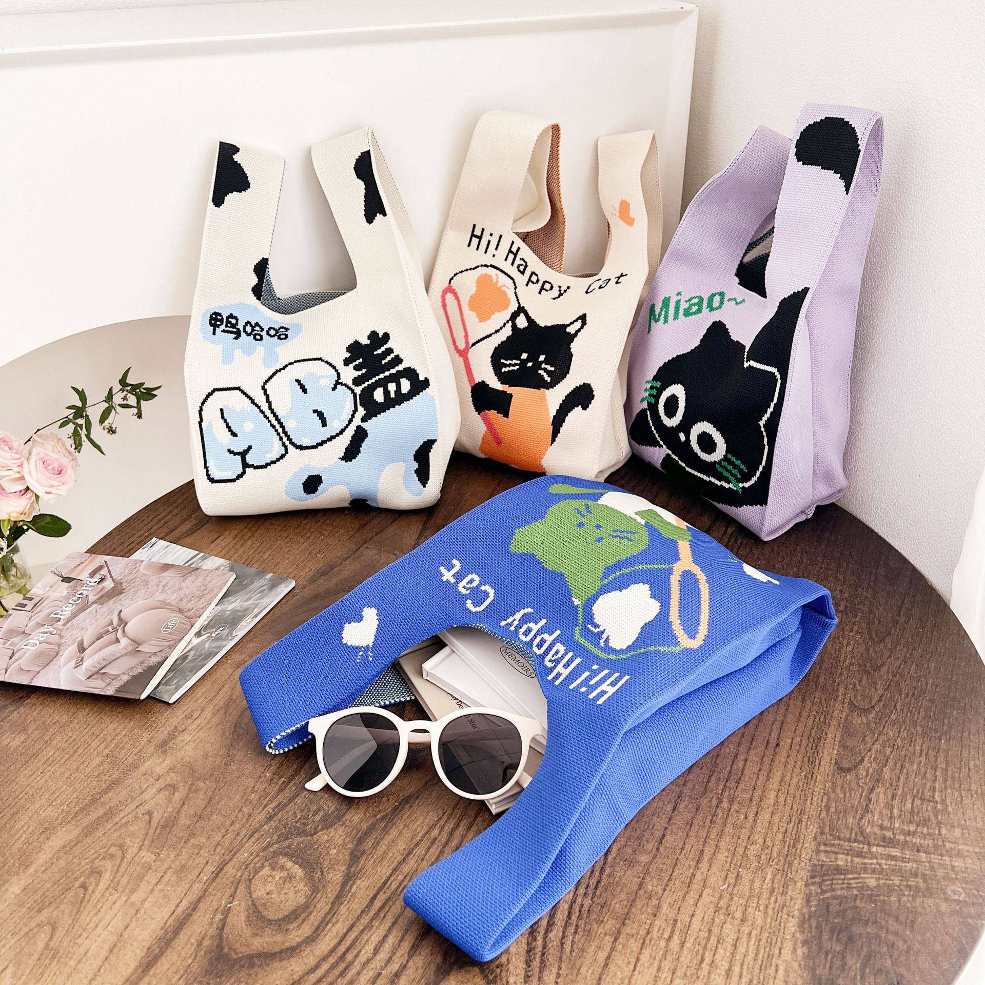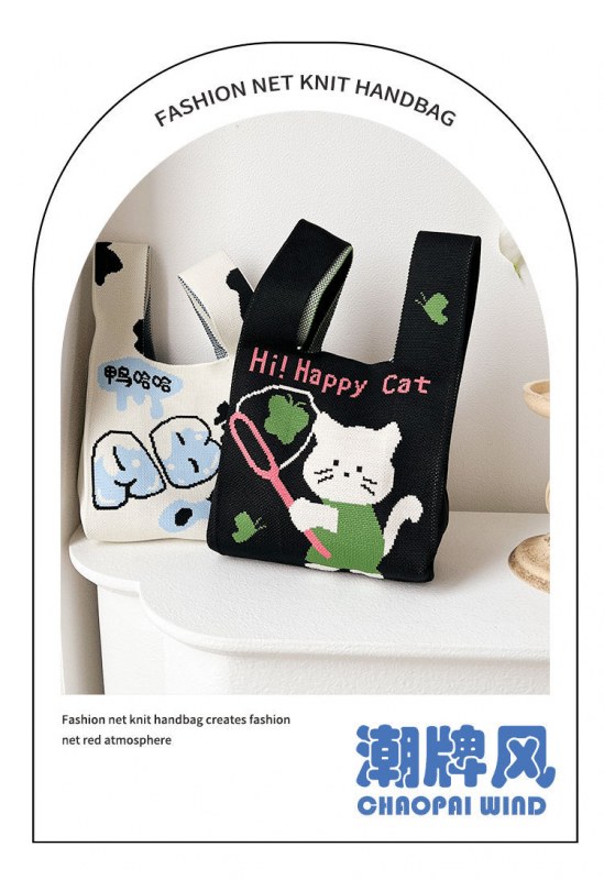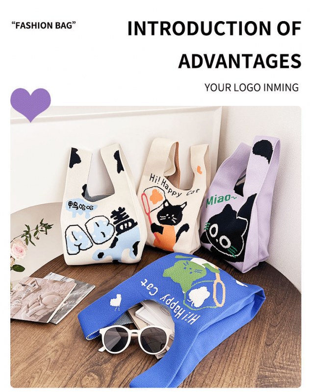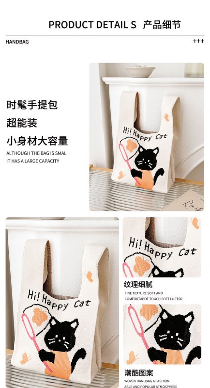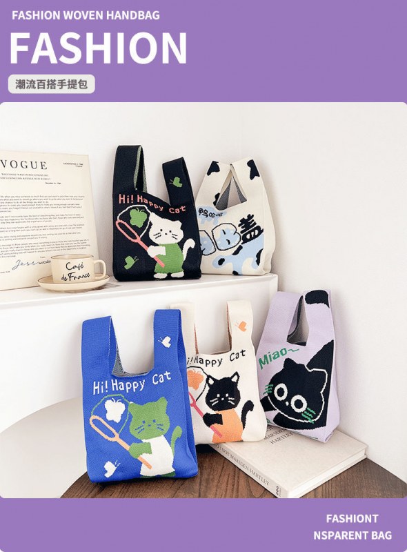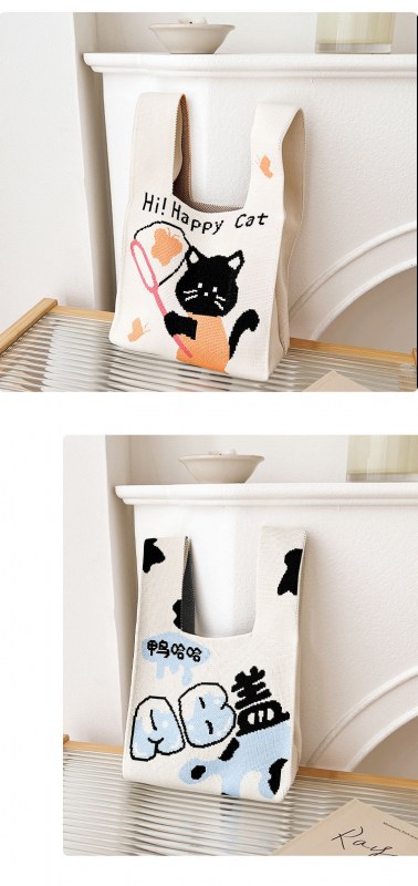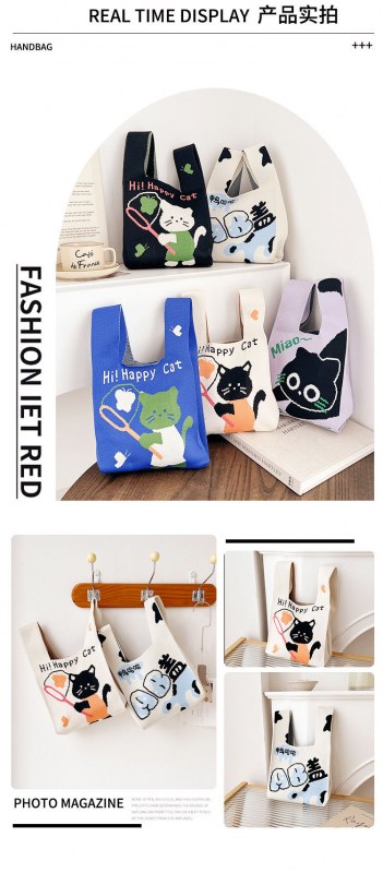 • 2024 かわいい猫新製品大型多用途学生大容量クォーターバッグショルダーバッグニットバッグハンドバッグ工場