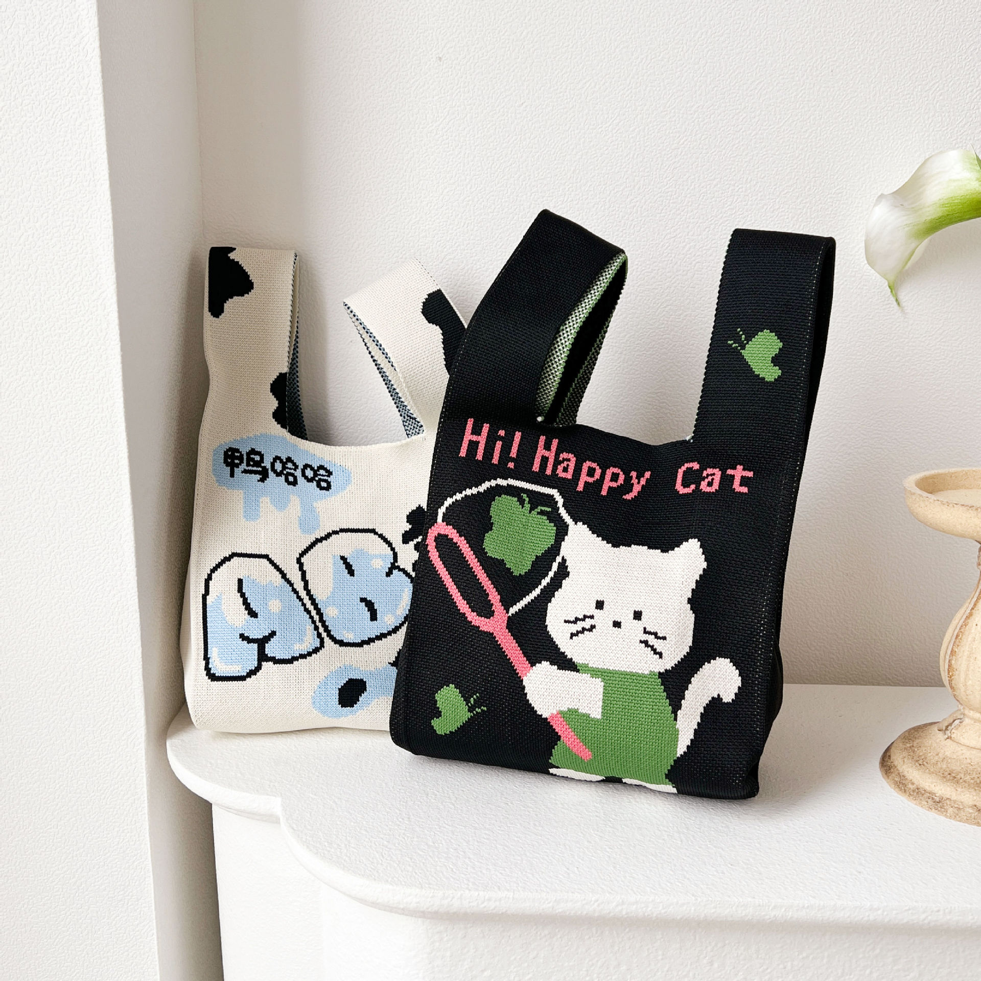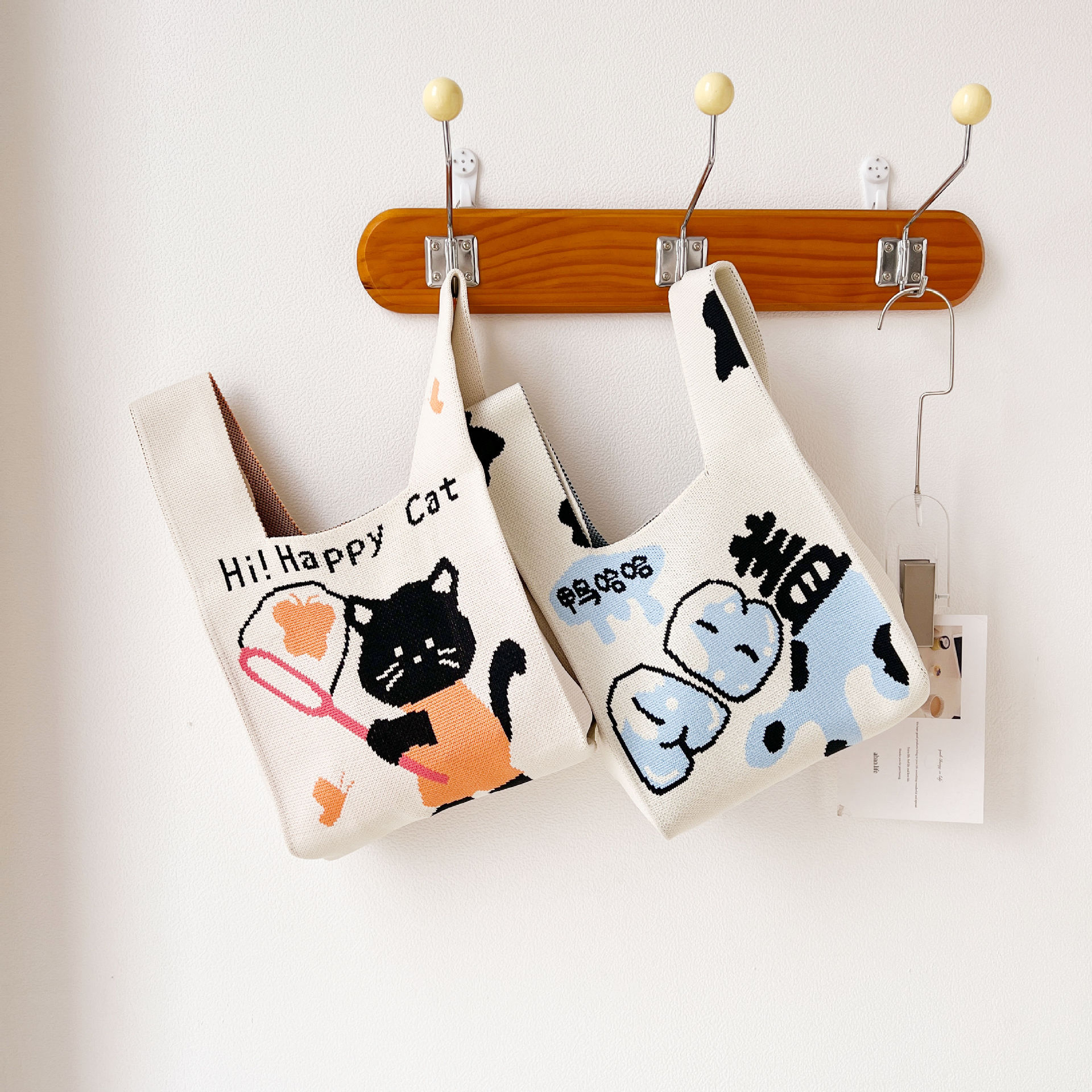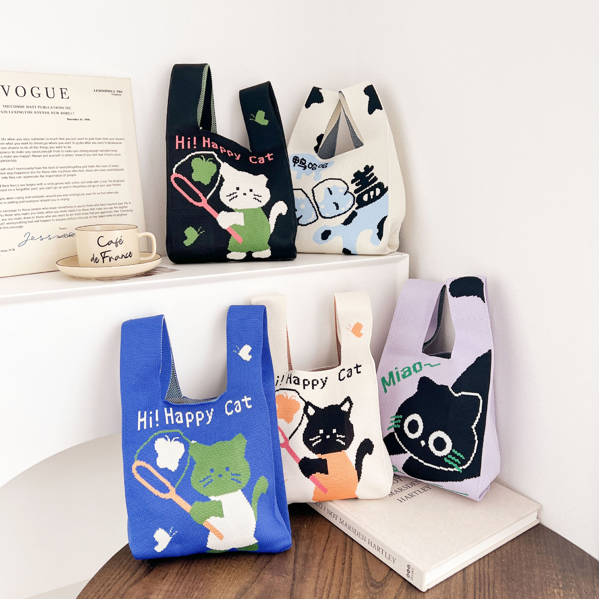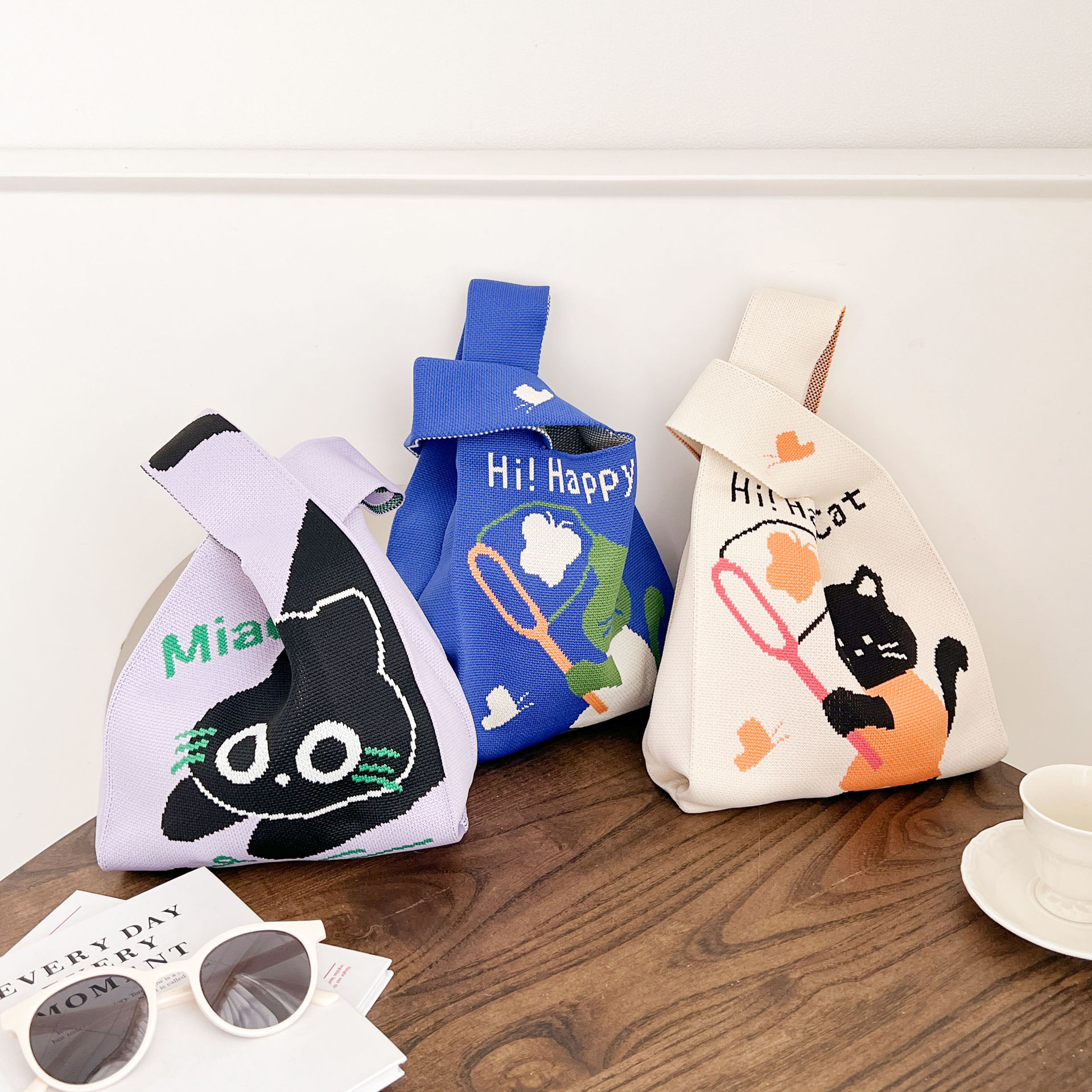 • 2024 かわいい猫新製品大型多用途学生大容量クォーターバッグショルダーバッグニットバッグハンドバッグ工場