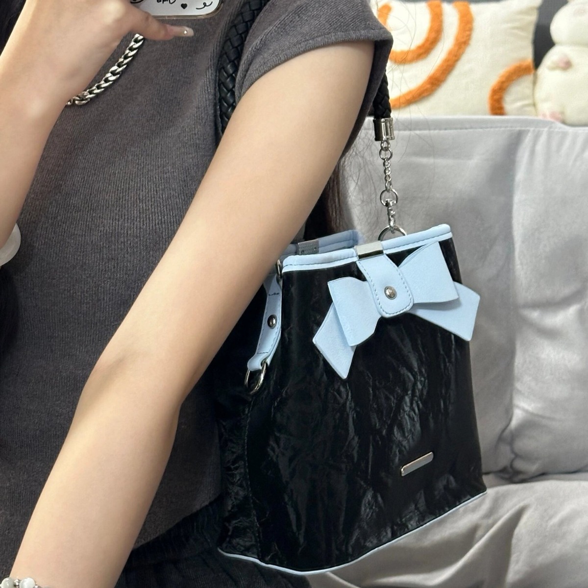 • 女性のためのバケットバッグ 2024 新しいトレンディなニッチハイエンドハンドバッグボウカジュアル多用途ショルダークロスボディバッグ