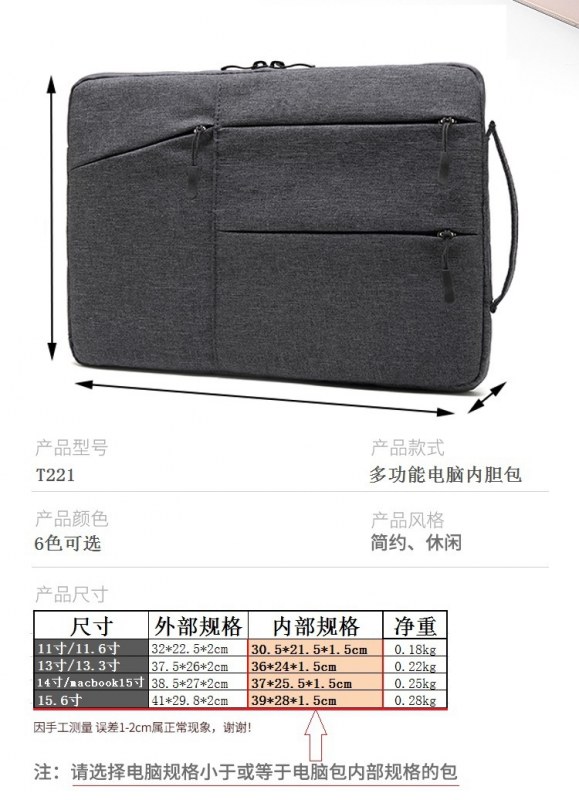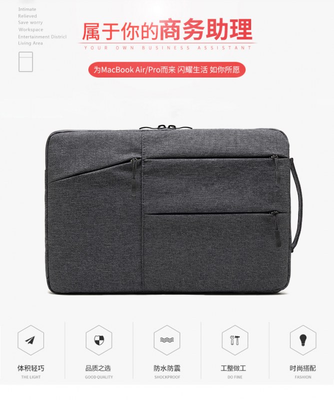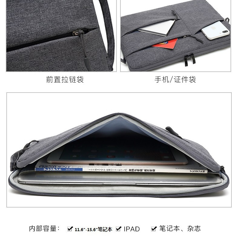 • Apple 13 Huawei 15インチマルチポケットタブレット収納バッグラップトップスリーブバッグに適したハンドルコンピュータバッグ