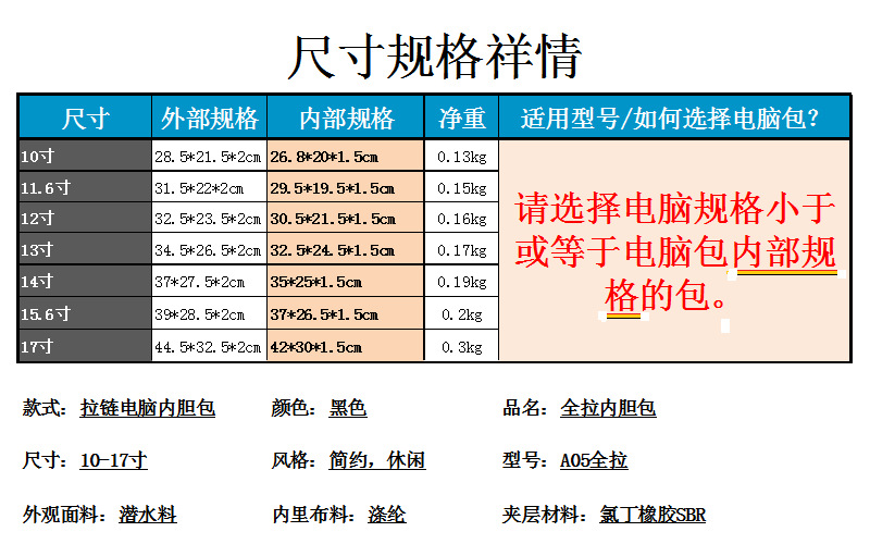 • ネオプレン ネオプレン SBR コンピューター バッグ 13Air14pro 15 インチ ジッパー防水ライナー バッグ保護カバー