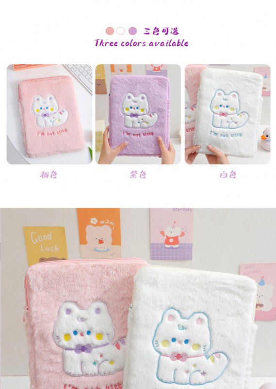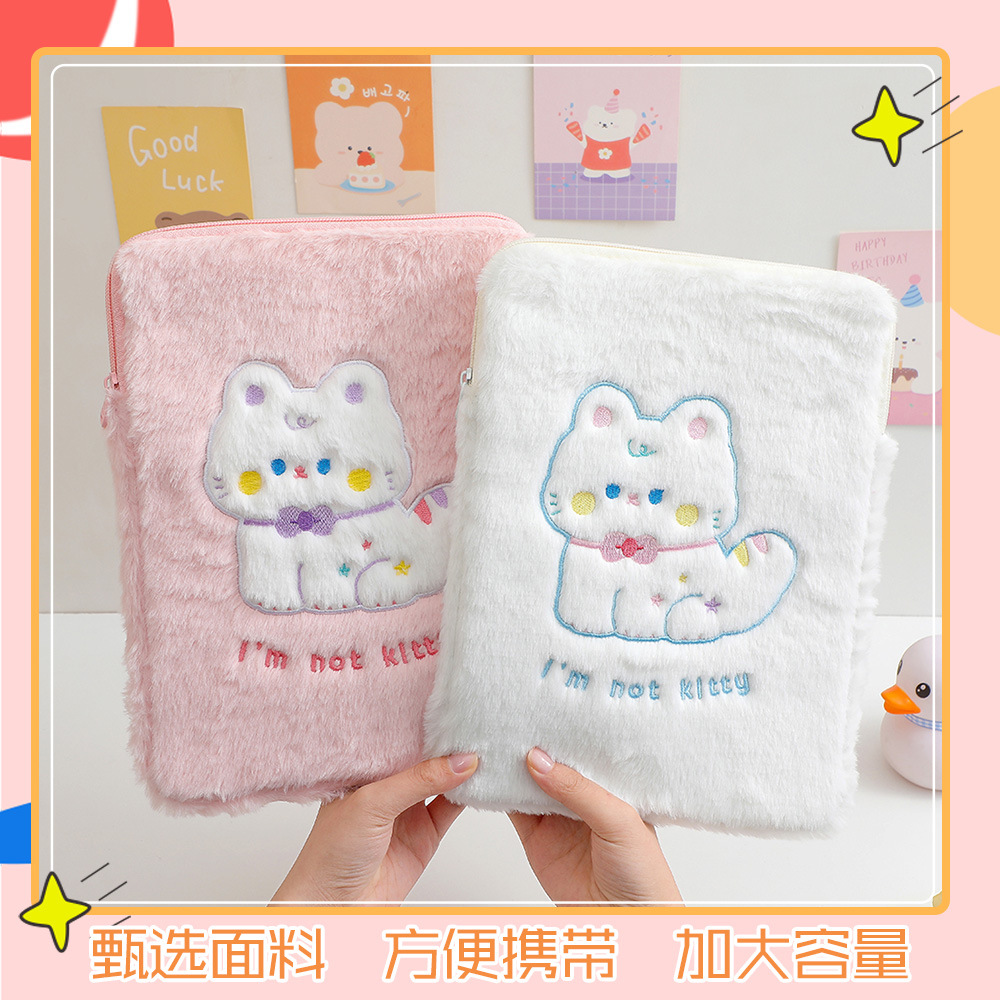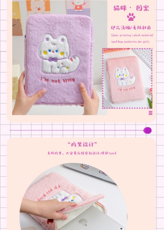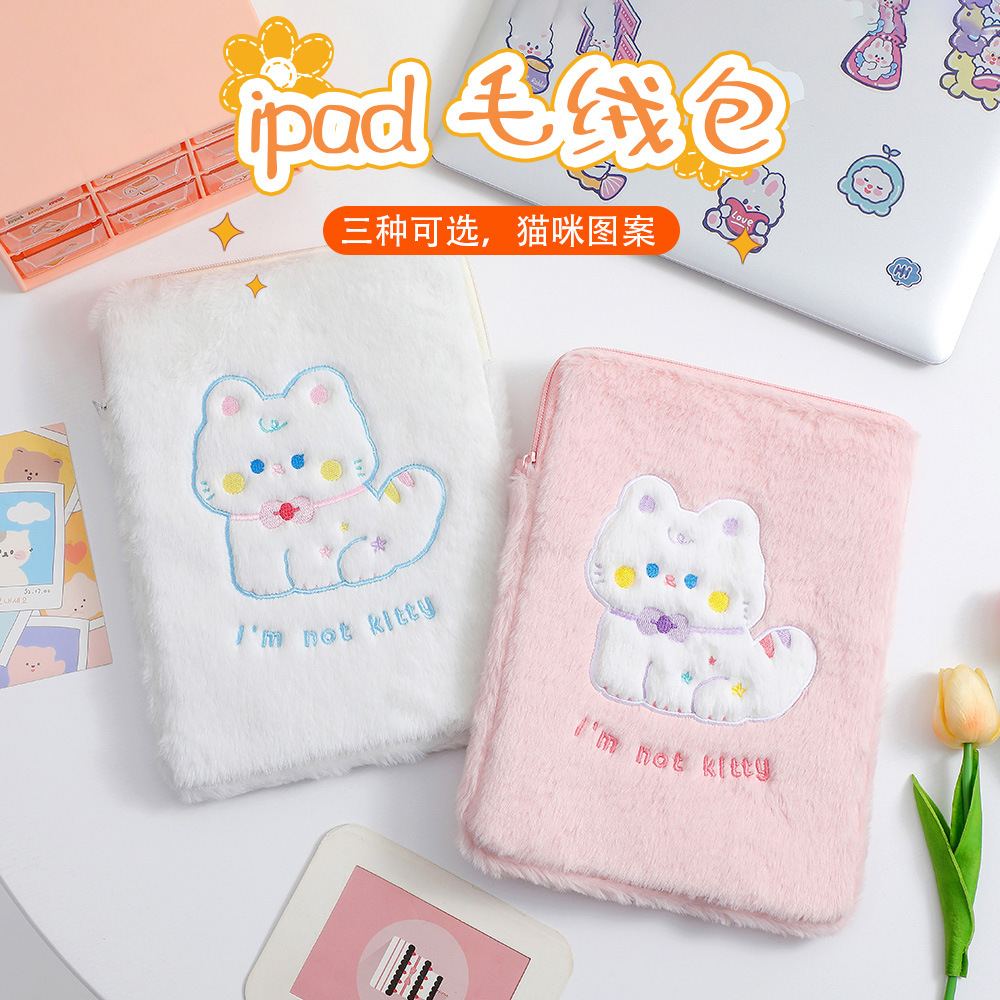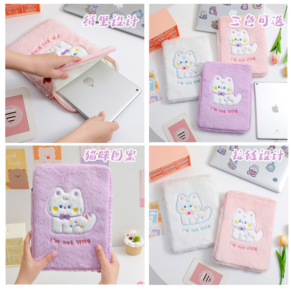• ガーリーかわいいソフト猫ぬいぐるみ iPad タブレット収納袋学生 10.9 インチタブレットライナークラッチバッグ女性用