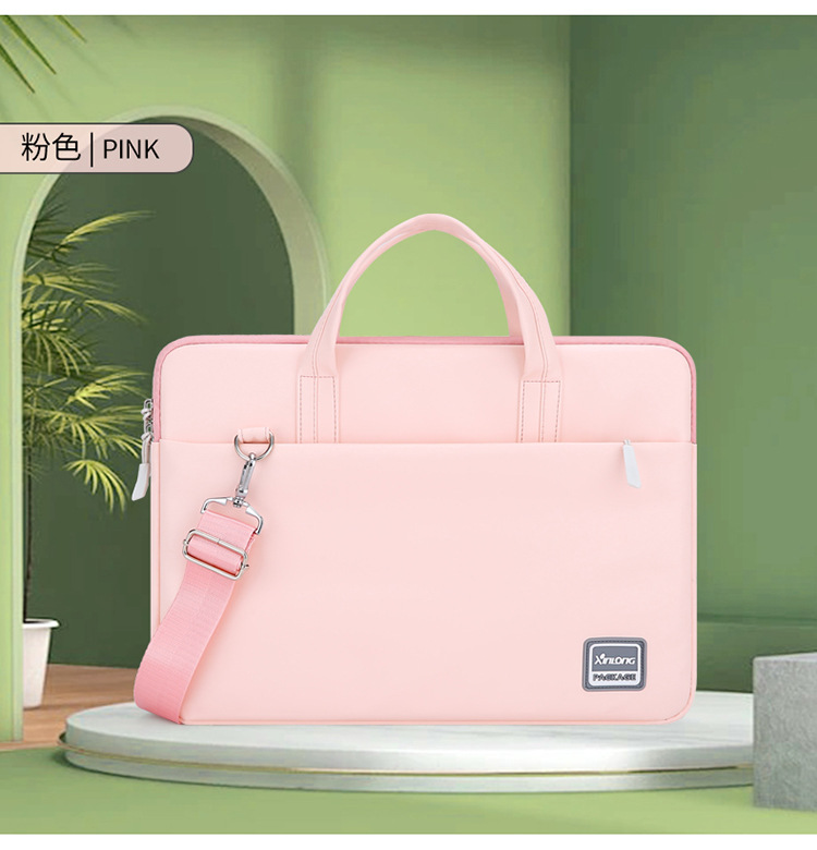 • マカロンカラーレザー15.6インチラップトップバッグ女性用14ショルダーコンピュータバッグ