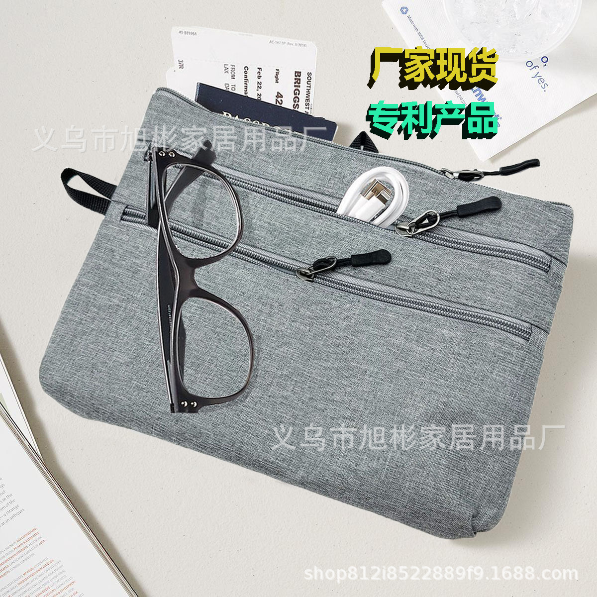 • 新しいシンプルでファッショナブルな収納バッグ グレーのフラット収納バッグ