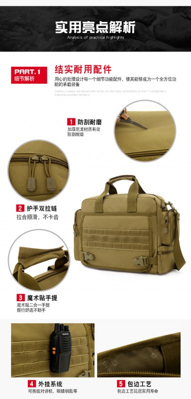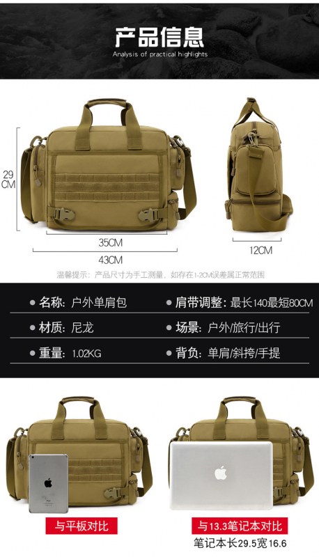 • タクティカルショルダーラップトップバッグ、アウトドア大容量多機能ナイロンショルダークロスボディバッグ、トレンディな機能バッグ