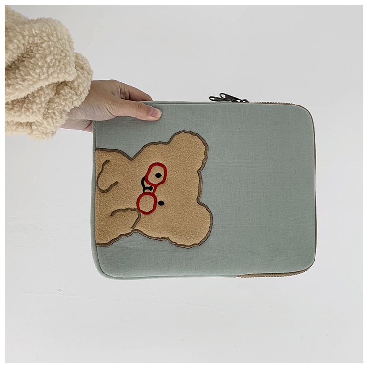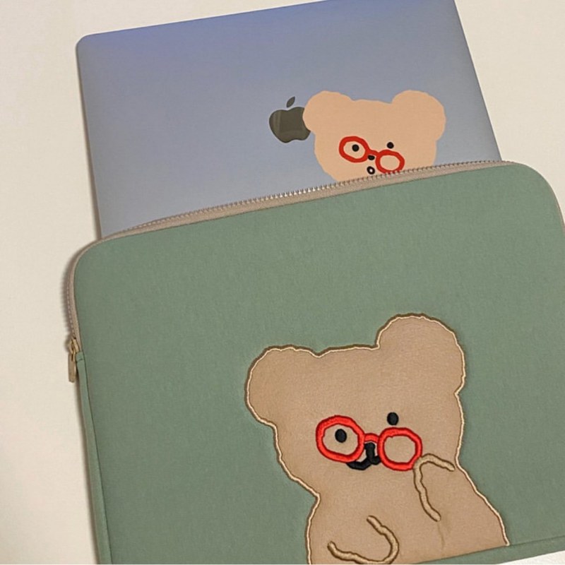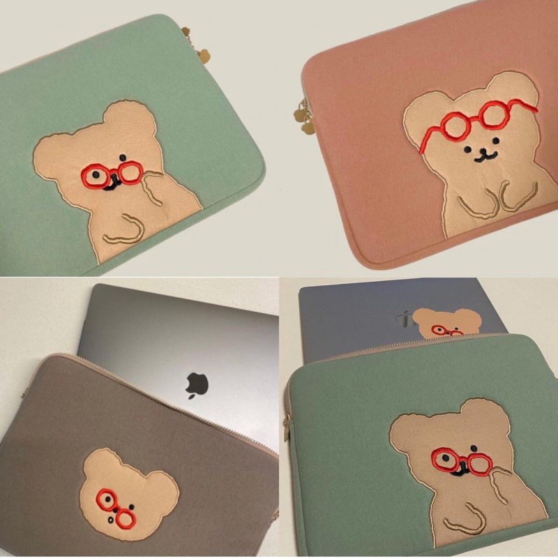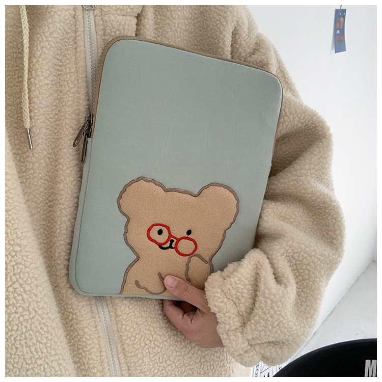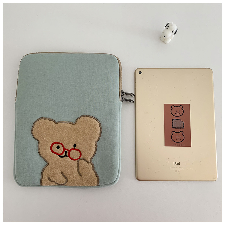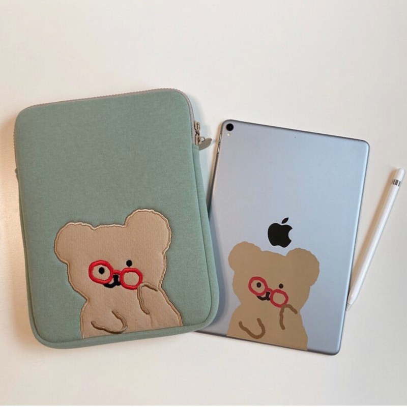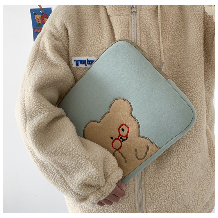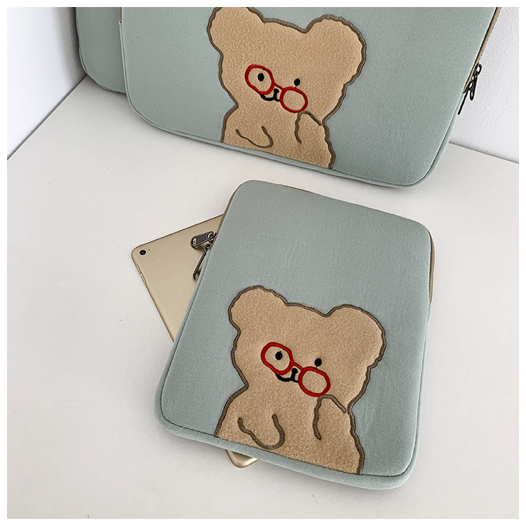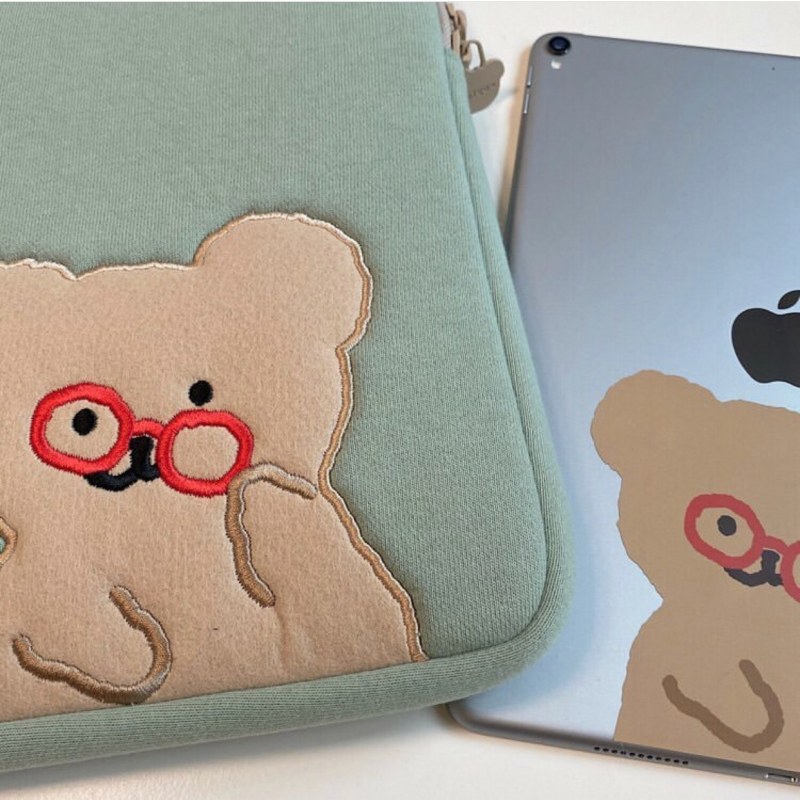 • 韓国 Ipad Pro タブレット収納袋 11/12.9 インチメガネクマ/13/15 インチコンピュータバッグ