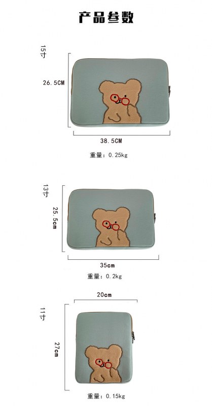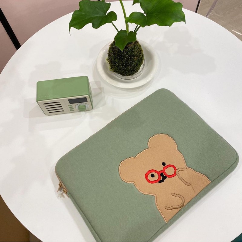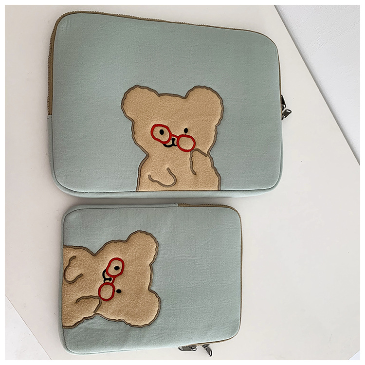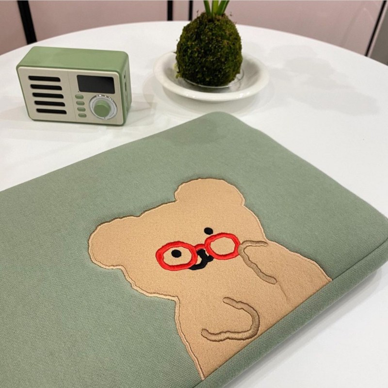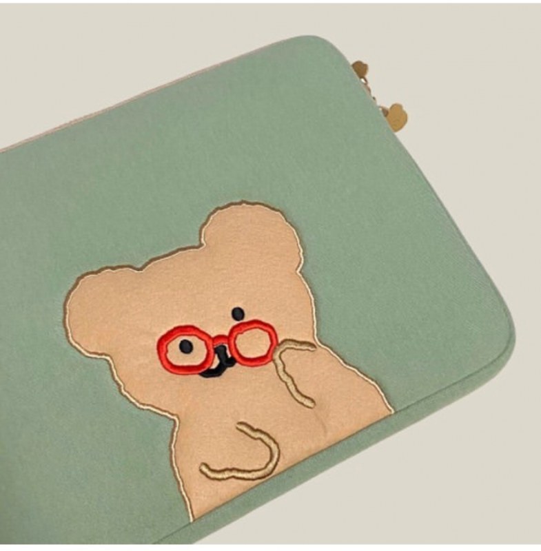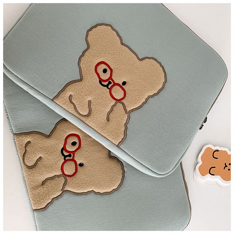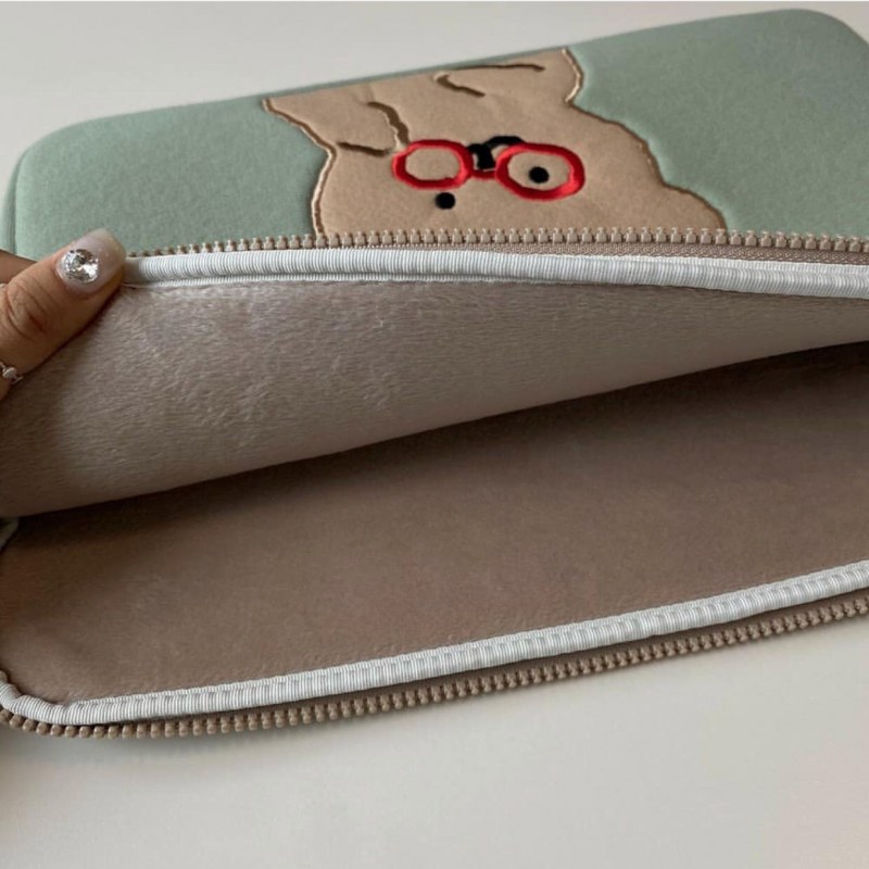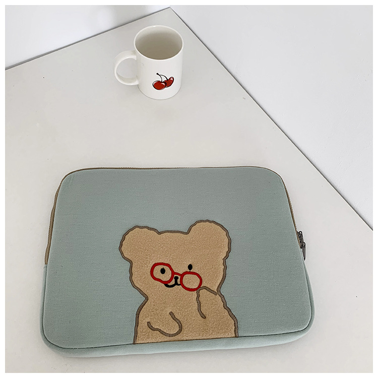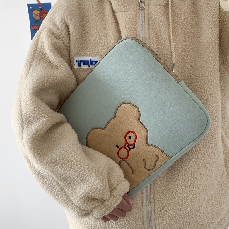 • 韓国 Ipad Pro タブレット収納袋 11/12.9 インチメガネクマ/13/15 インチコンピュータバッグ