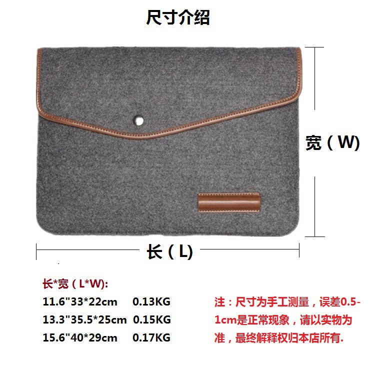 • ノートパソコン保護カバー便利な傷防止Macbook 11インチ13インチ15インチフェルト布ボタンコンピュータスリーブバッグ