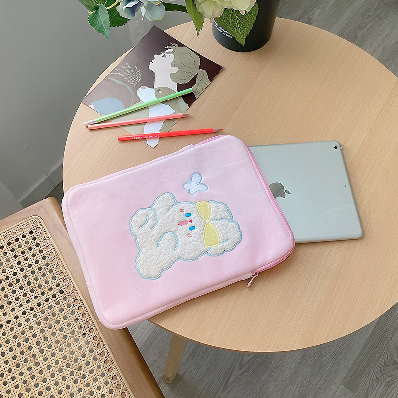 • 新しい漫画バニーぬいぐるみ iPad ライナーバッグ女の子かわいいタブレットバッグ収納袋 11 インチクラッチバッグ