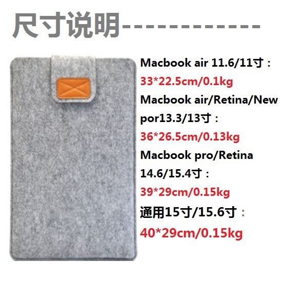 • フェルトラップトップバッグ 13/11/15 インチデジタルタブレット Macbook air ライナーバッグ