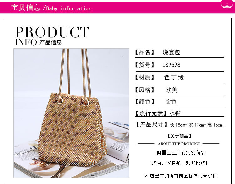 • ポータブルイブニングバッグ ヨーロッパとアメリカのダイヤモンドがちりばめられたイブニングバッグ バケットクラッチクラッチ 多機能ポータブルイブニングバッグ