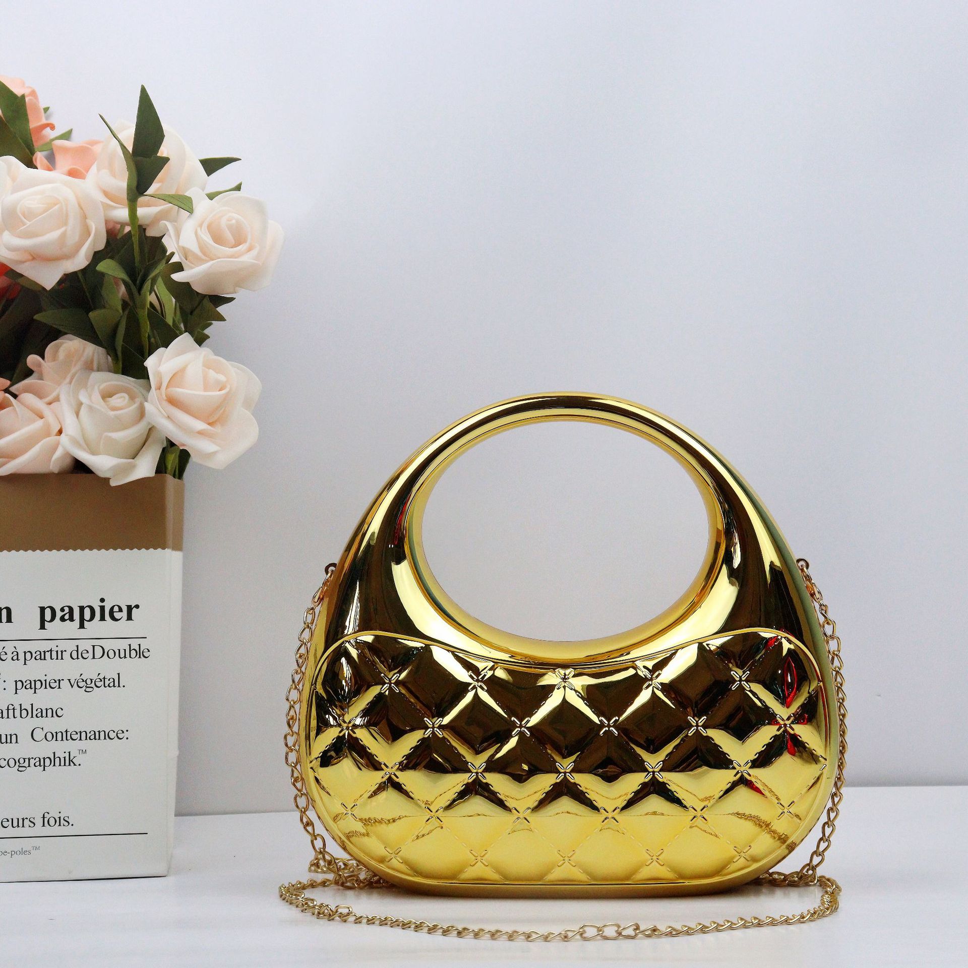 • ゴールデンキャンディーカラーのアクリルバッグ女性のための新しいヨーロッパとアメリカの菱形ファッションニッチシングルショルダーチェーンイブニングバッグ
