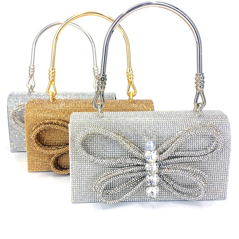 • 新しいイブニングバッグ ドレスバッグ バタフライ シャイニー ダイヤモンド スモールスクエアバッグ チェーンバッグ クラッチバッグ パーティーバッグ