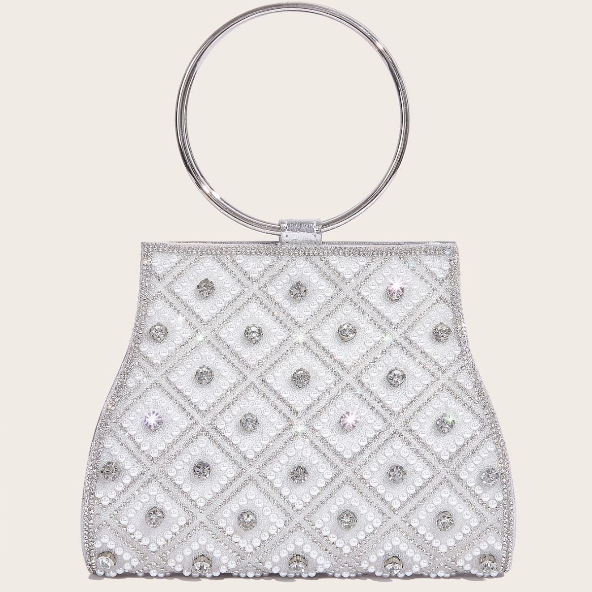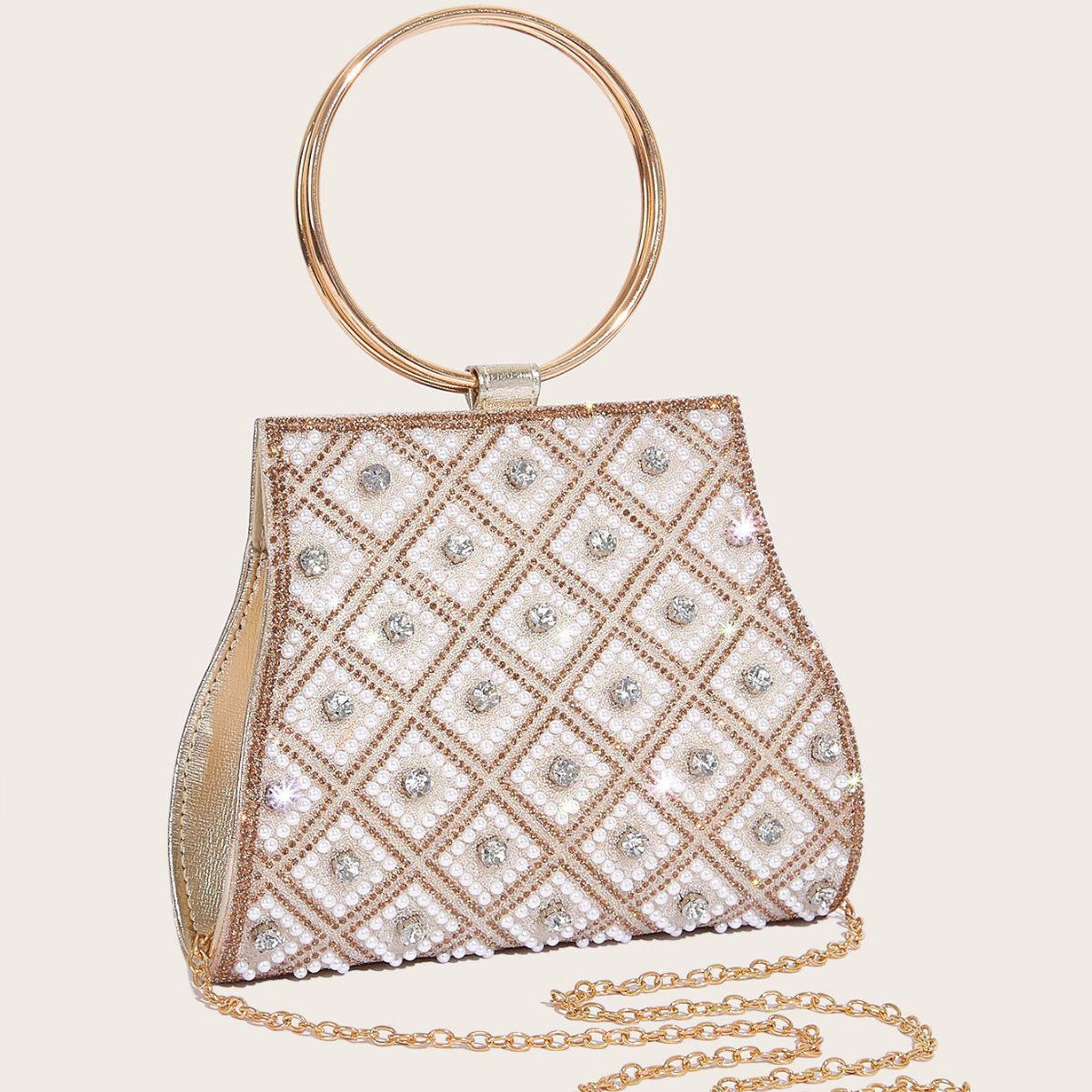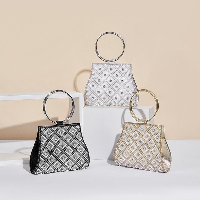 • ヨーロッパとアメリカのファッショナブルな高級真珠がちりばめられたダイヤモンドの小さな香りのよいイブニングバッグリストリングハンドバッグ