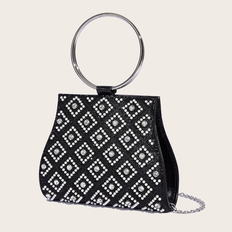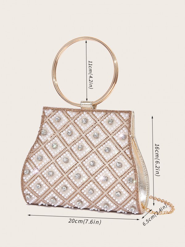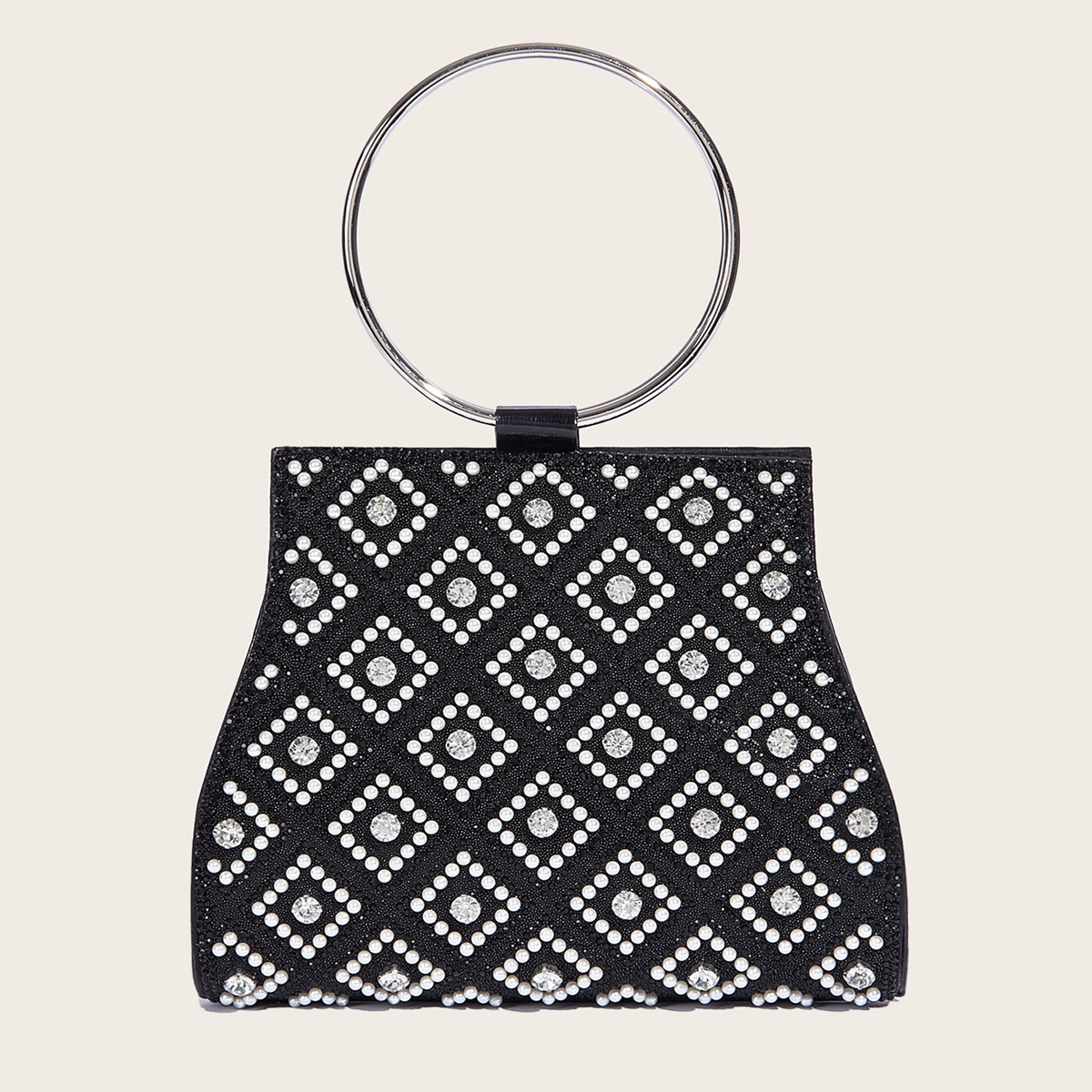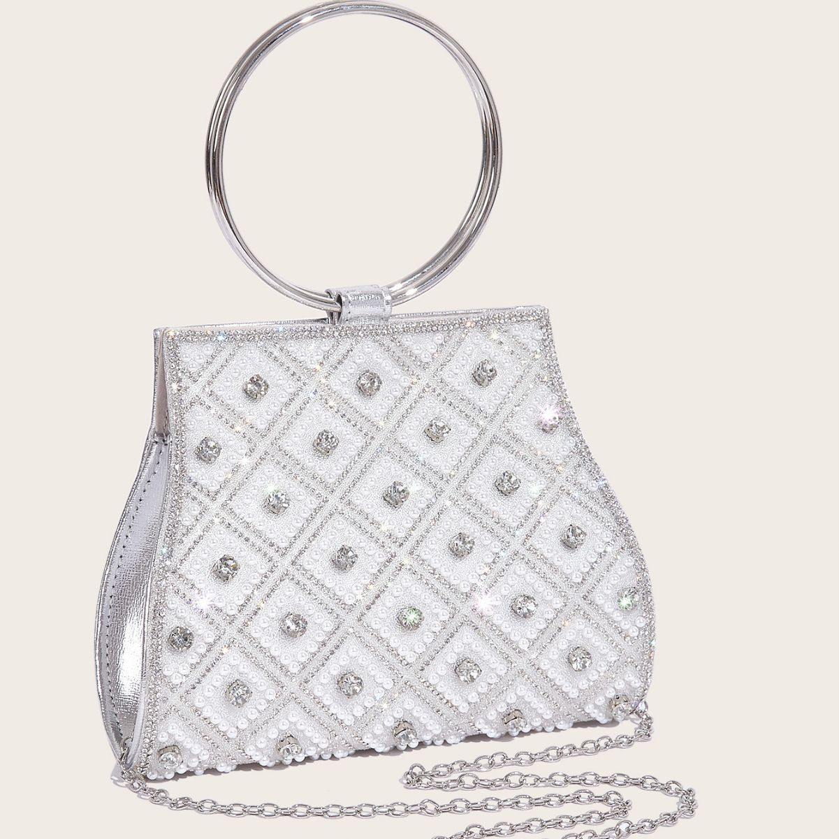• ヨーロッパとアメリカのファッショナブルな高級真珠がちりばめられたダイヤモンドの小さな香りのよいイブニングバッグリストリングハンドバッグ