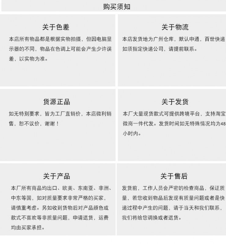 弊社が取り扱っている商品は、自社の海外工場から直送しています。ご入金が確認でき次第に商品を発送いたします。ご注文殺到時や、ご注文数量、種類が多い場合は、発送が遅れる可能性がございます、ご了承ください。ご注文商品の中に在庫がない商品につき、その商品のみキャンセルさせていただき、在庫のある商品のみをまとめて発送させていただきます。また、ご注文後の商品追加や、内容変更、同梱などはお受付しておりません。