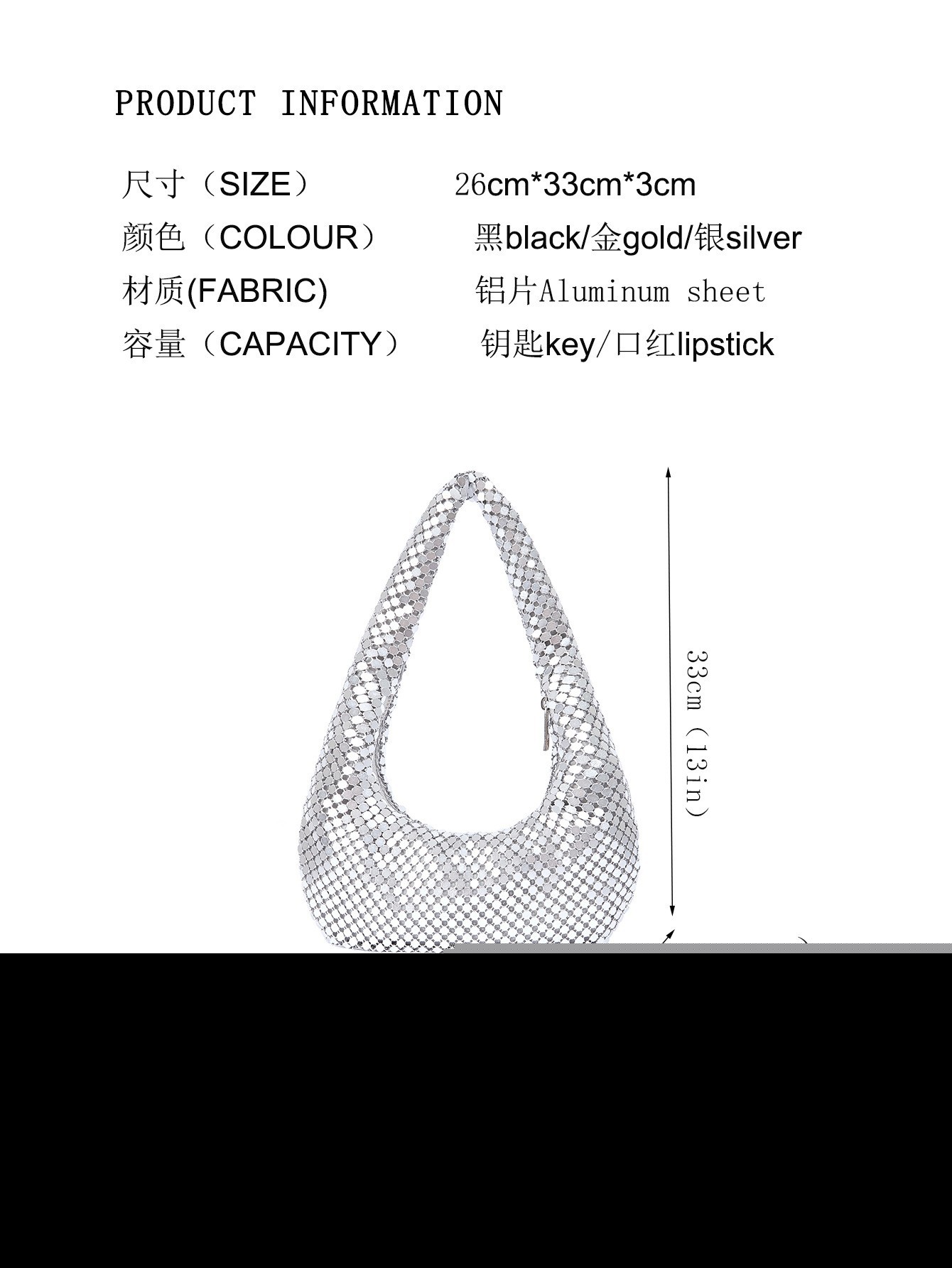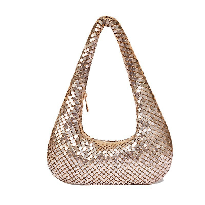 • 新しい女性の脇の下バッグ、ゴールドアルミフレークイブニングバッグ、ヨーロッパとアメリカのファッションハンドバッグ、パーティーレディースの眩しいハンドバッグ