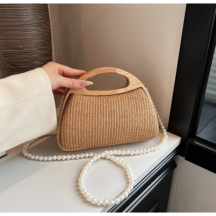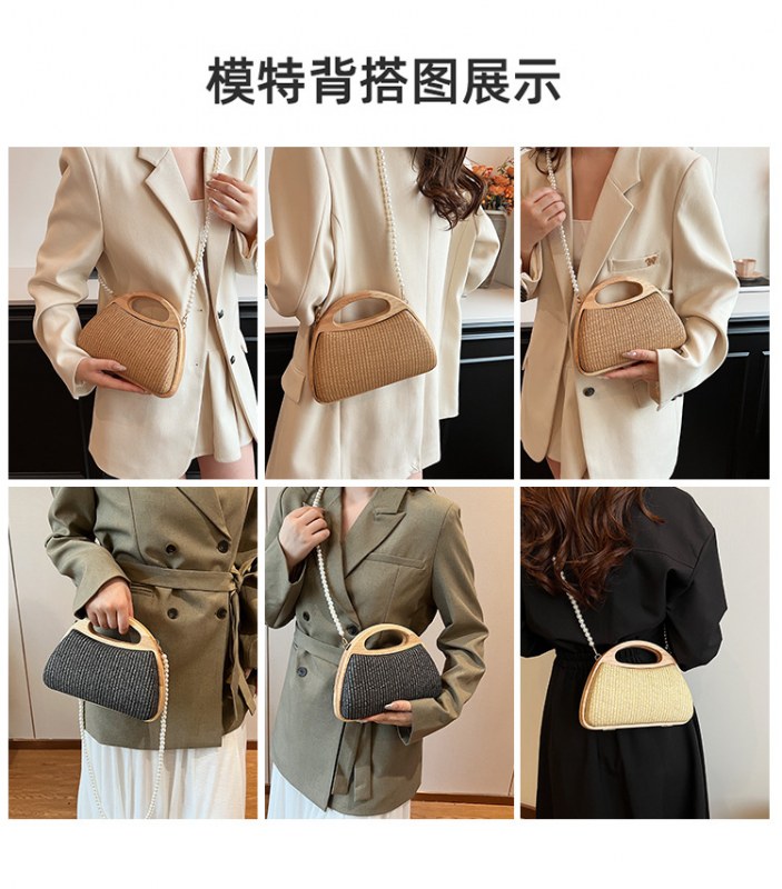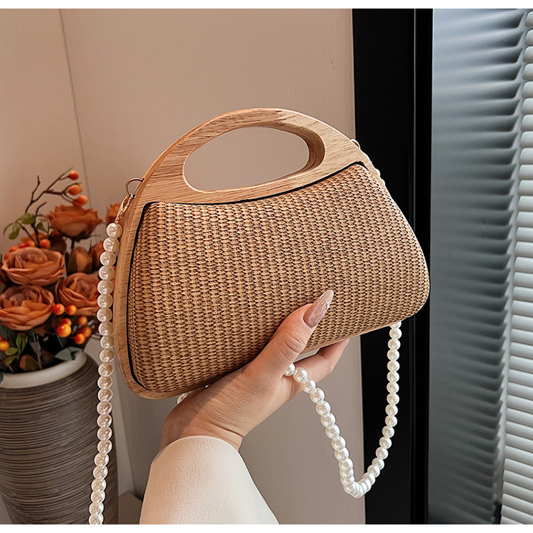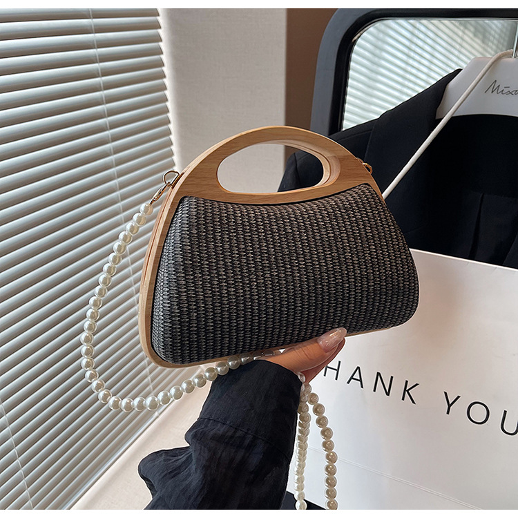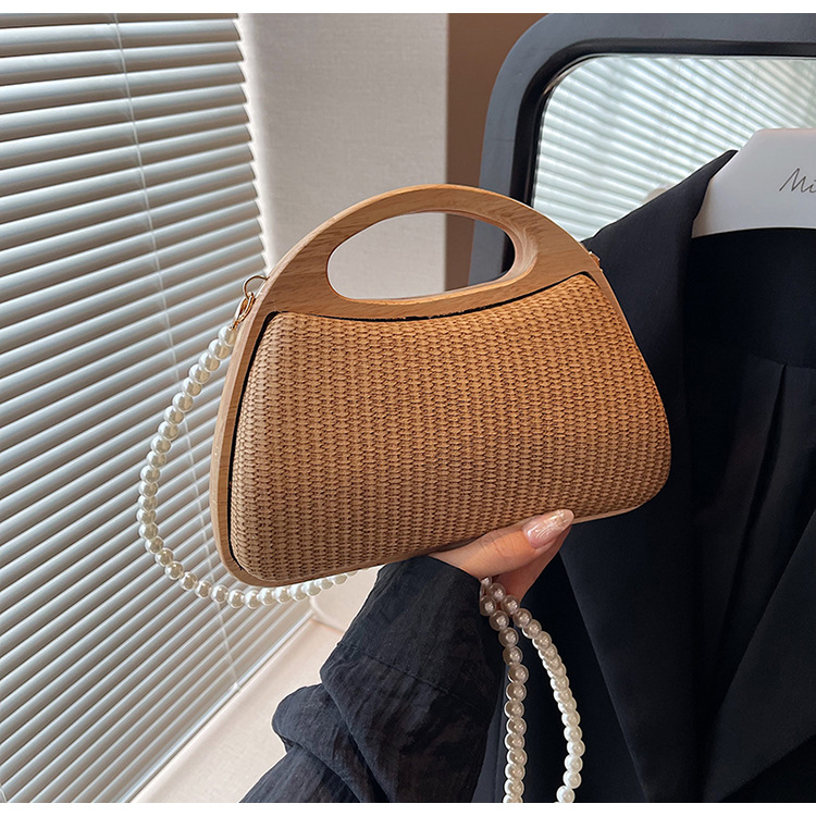 • クリエイティブ女性のイブニングバッグ 2024 秋と冬の新しいチェーン木製ハンドルの女性のショルダーバッグ