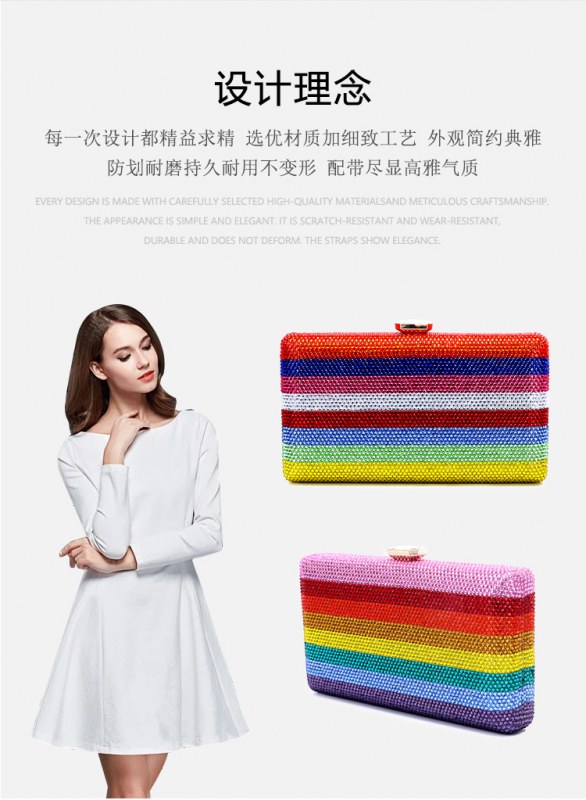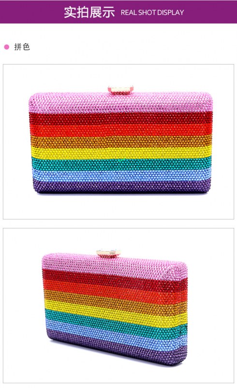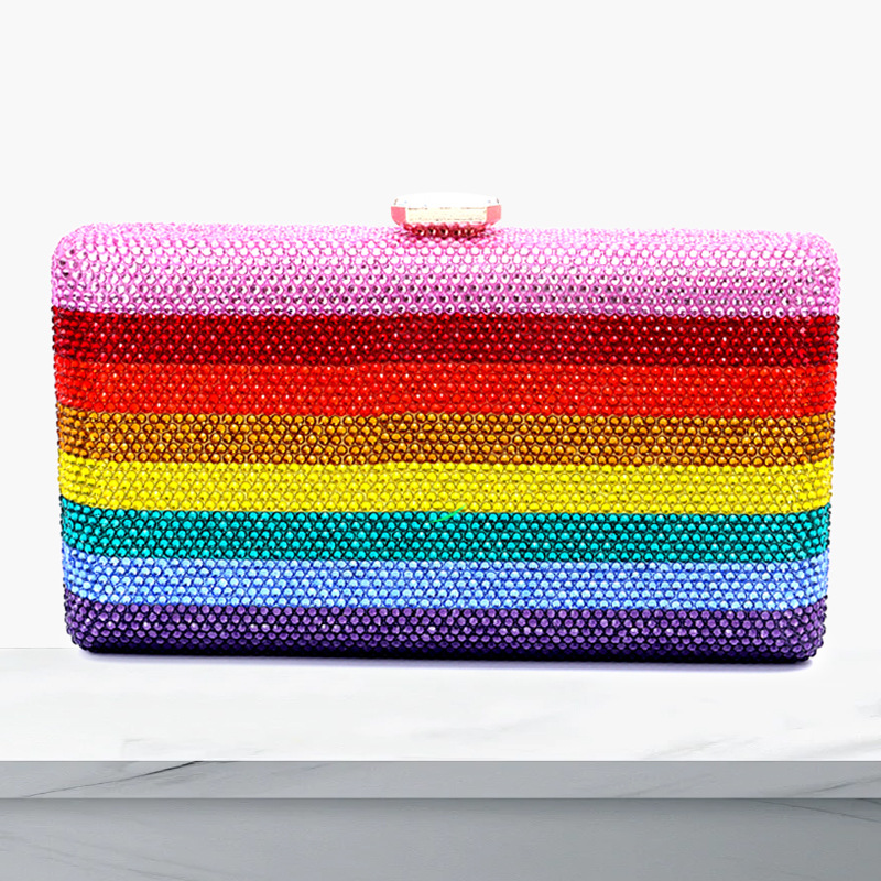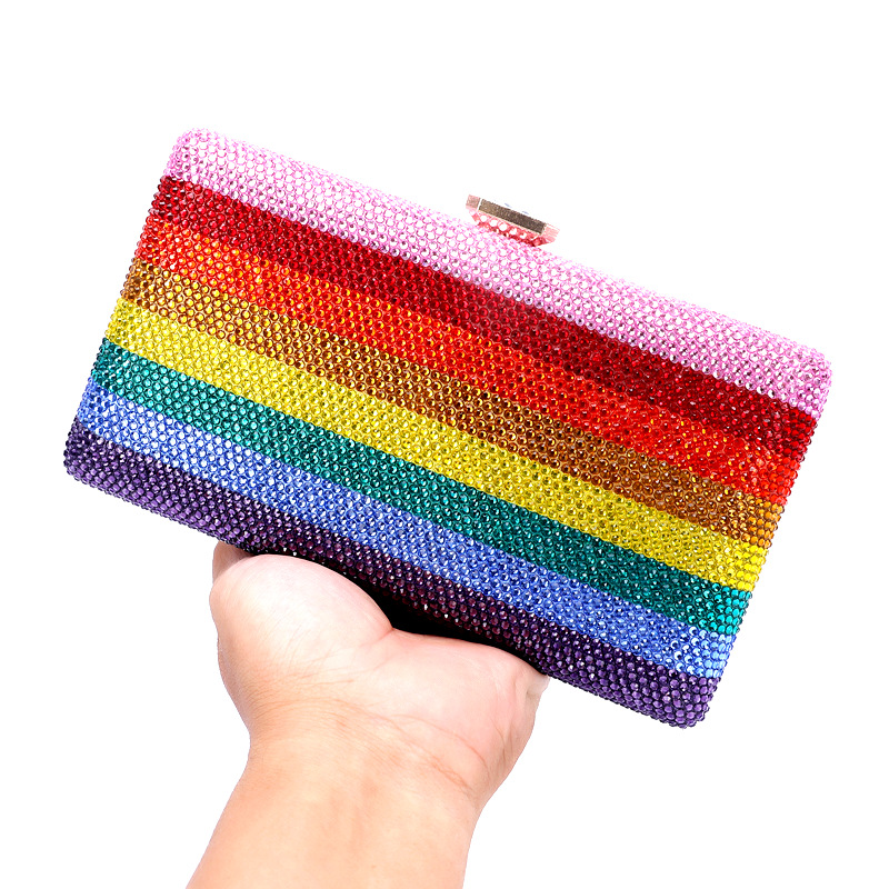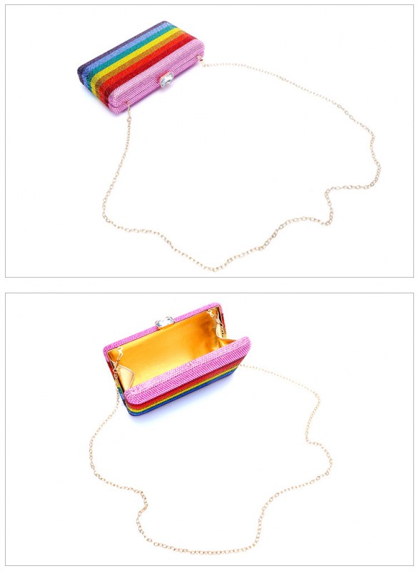 • 人気のレインボー イブニング バッグ レディース スクエア 結婚式 パーティー クリスマスに最適