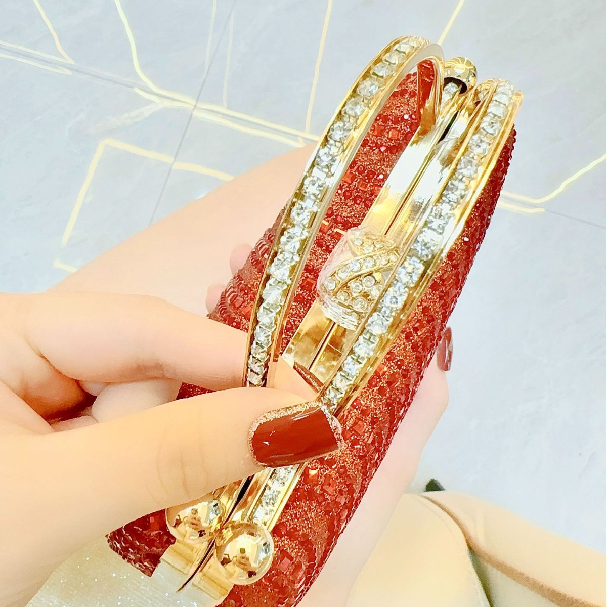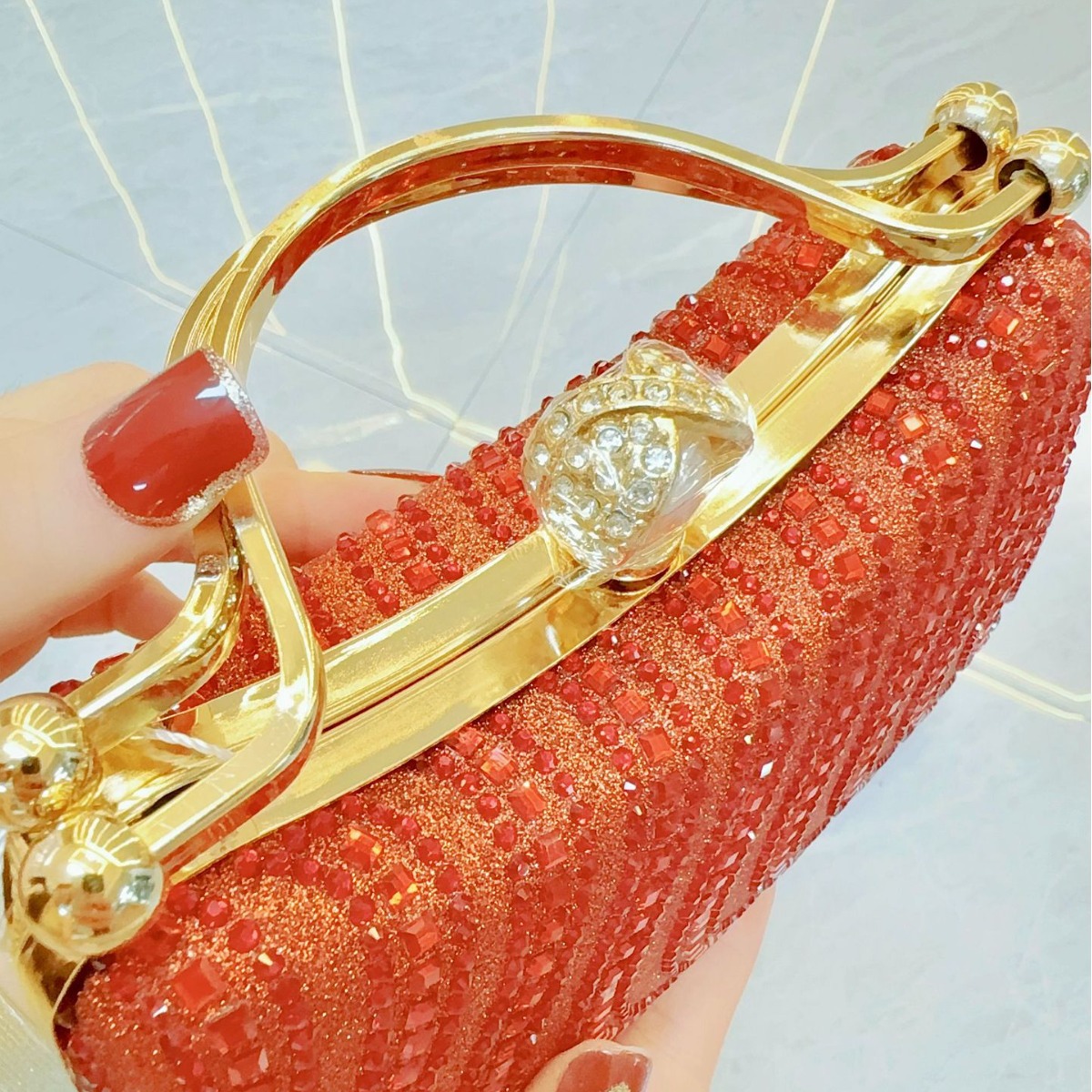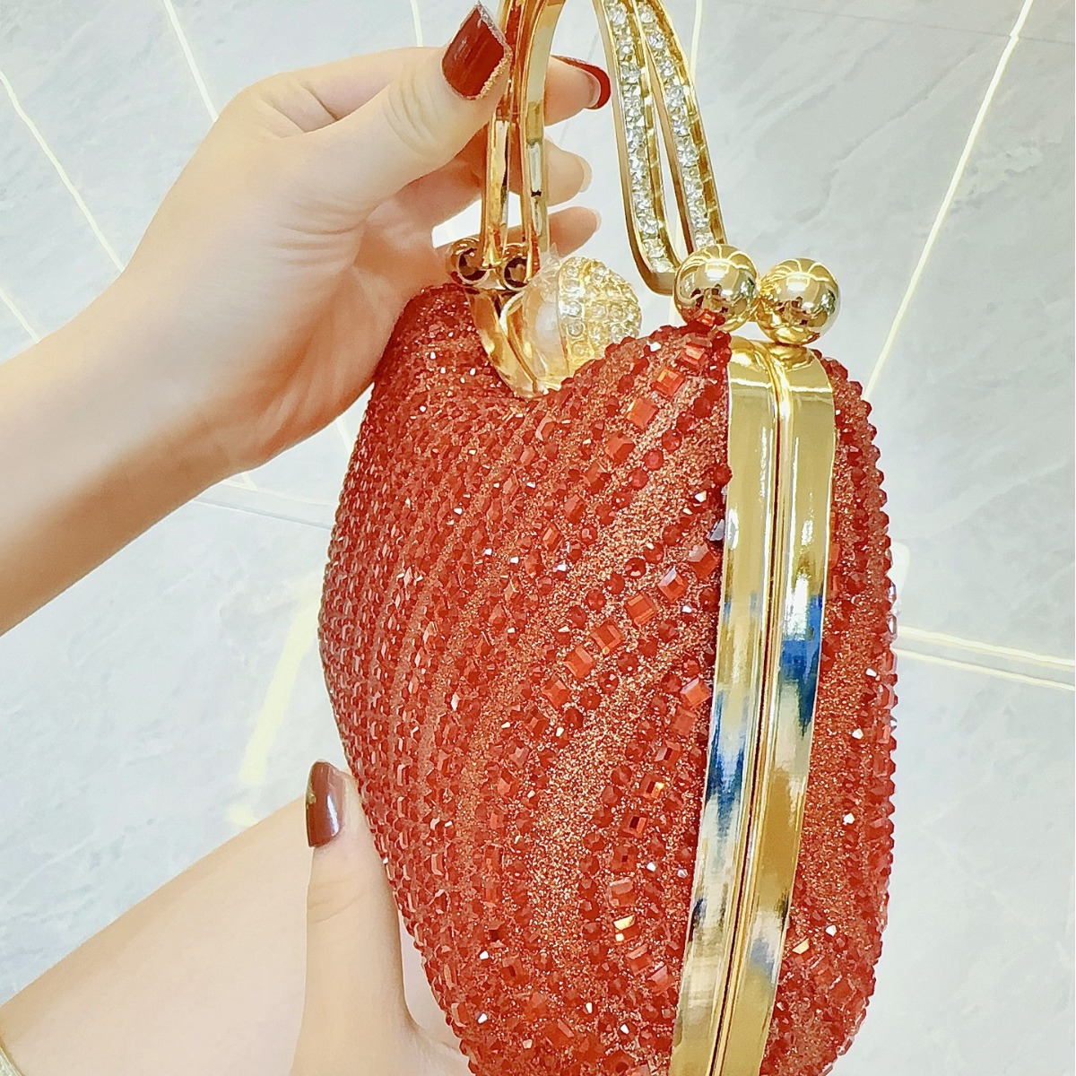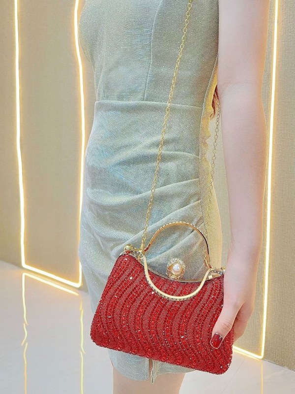 • ヨーロッパとアメリカのレトロなフルダイヤモンドディナーバッグハンドバッグシングルショルダークロスボディバンケットチェーンレディースバッグ