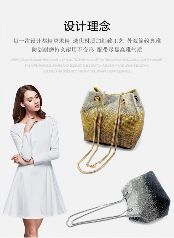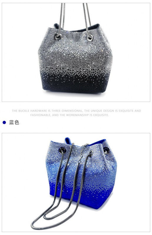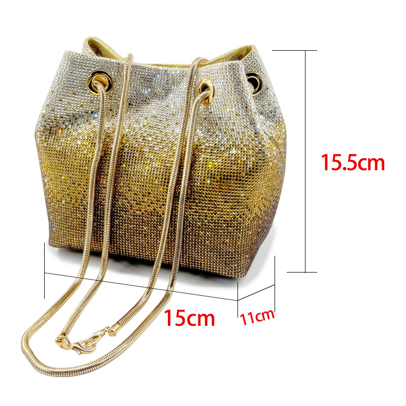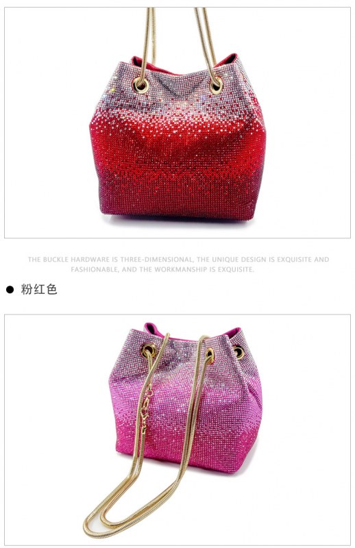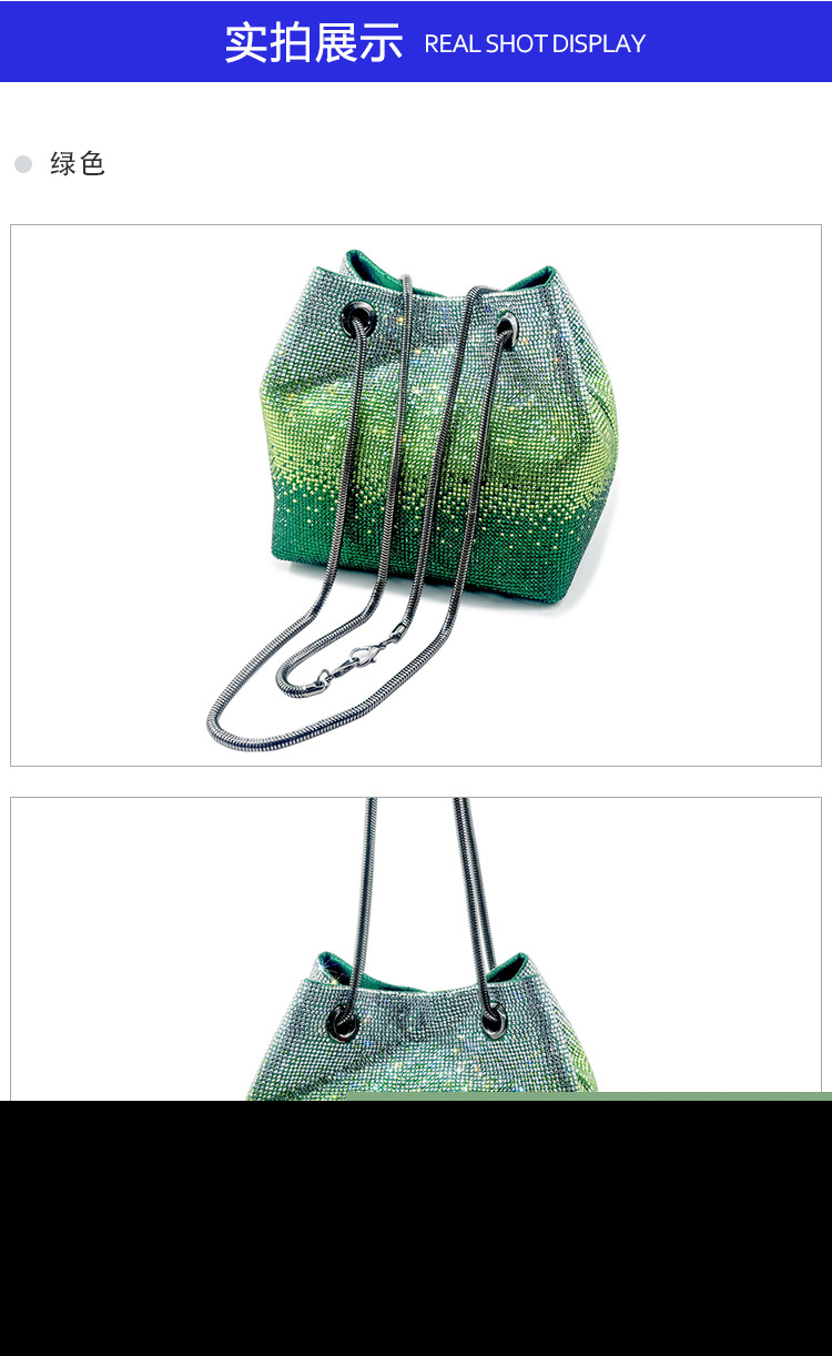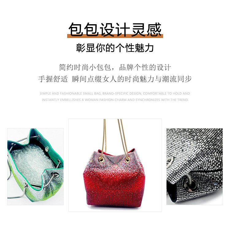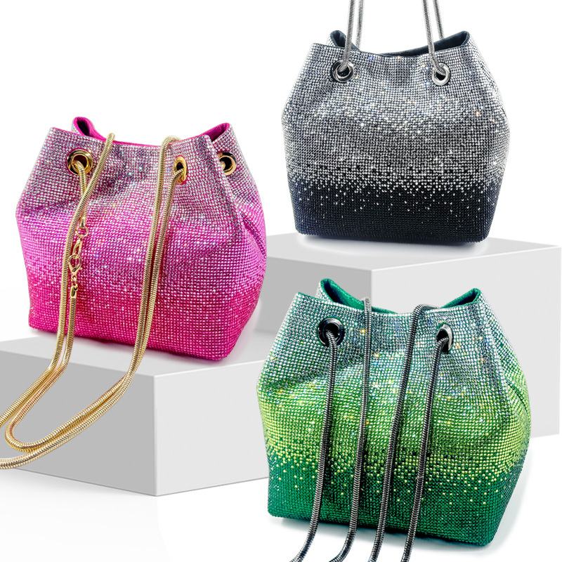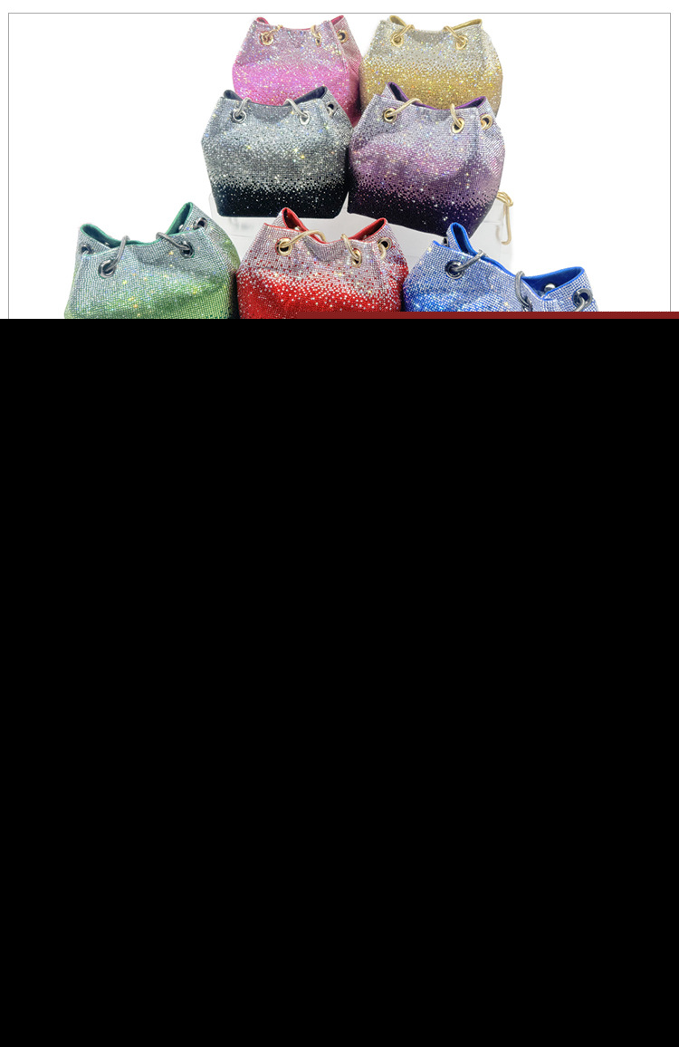 • 新しいダイヤモンドバケットバッグウェディングパーティーラインストーンマルチカラースパークリングハンドバッグ高品質女性のイブニングバッグ