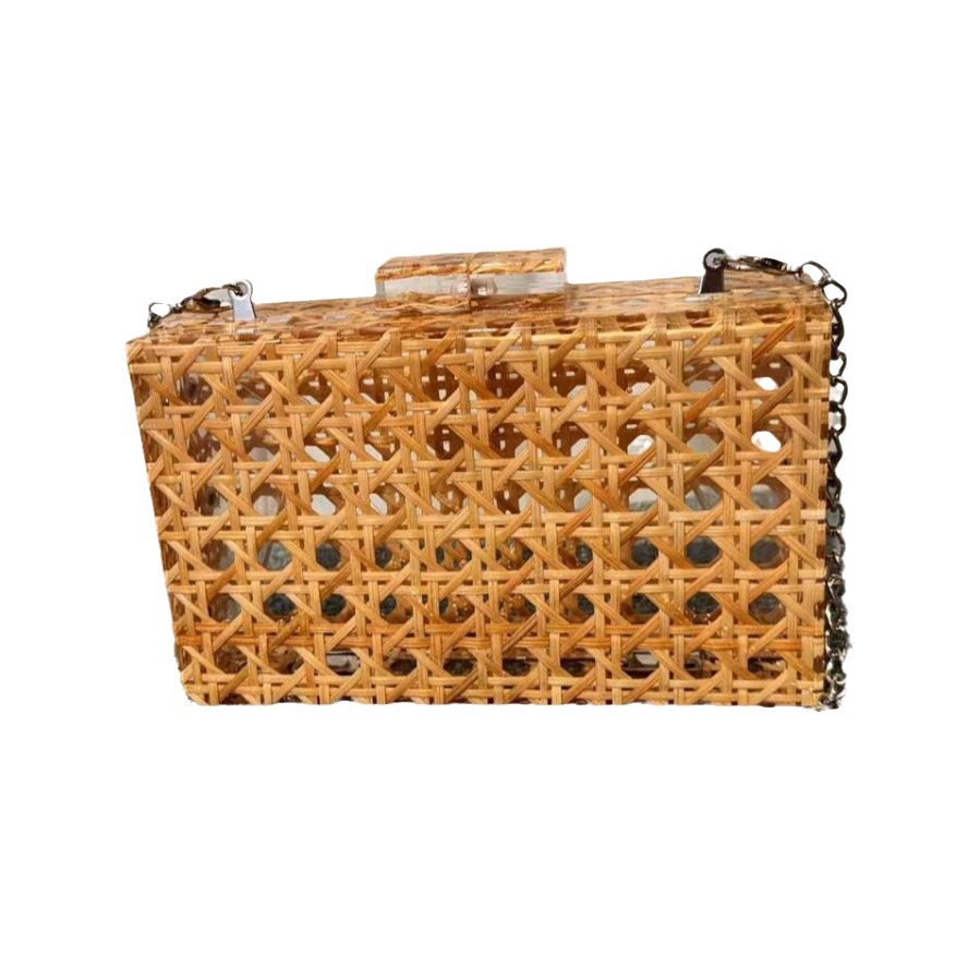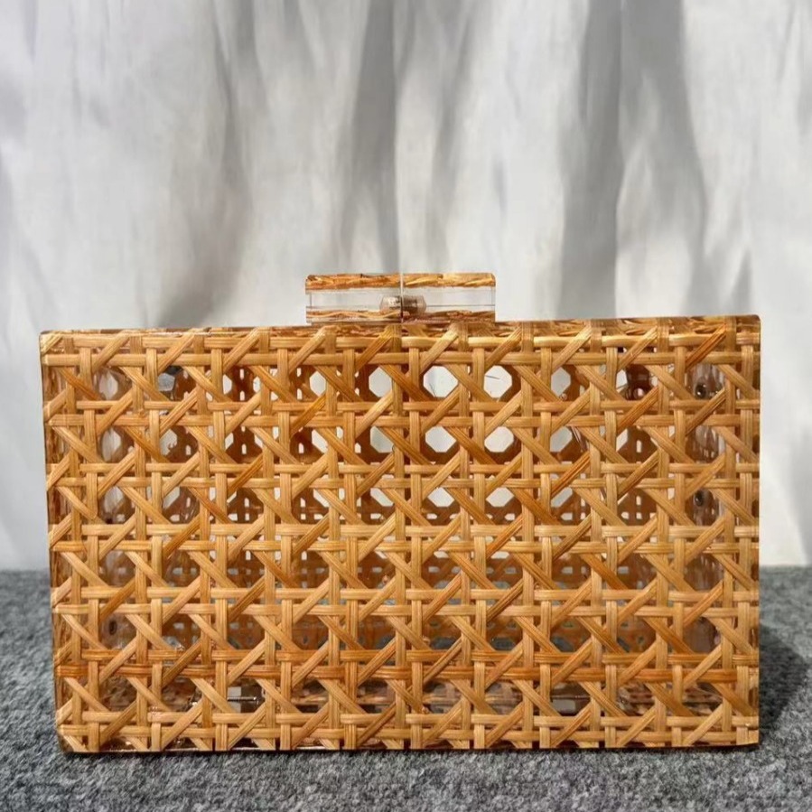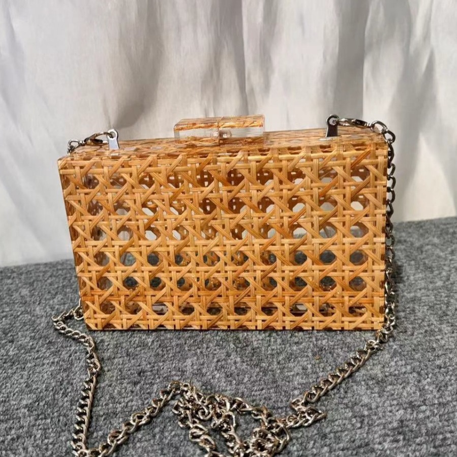 • 2024 イブニングバッグレトロヨーロッパとアメリカの籐トレンディなアクリルショルダーチェーンバッグ女性のための