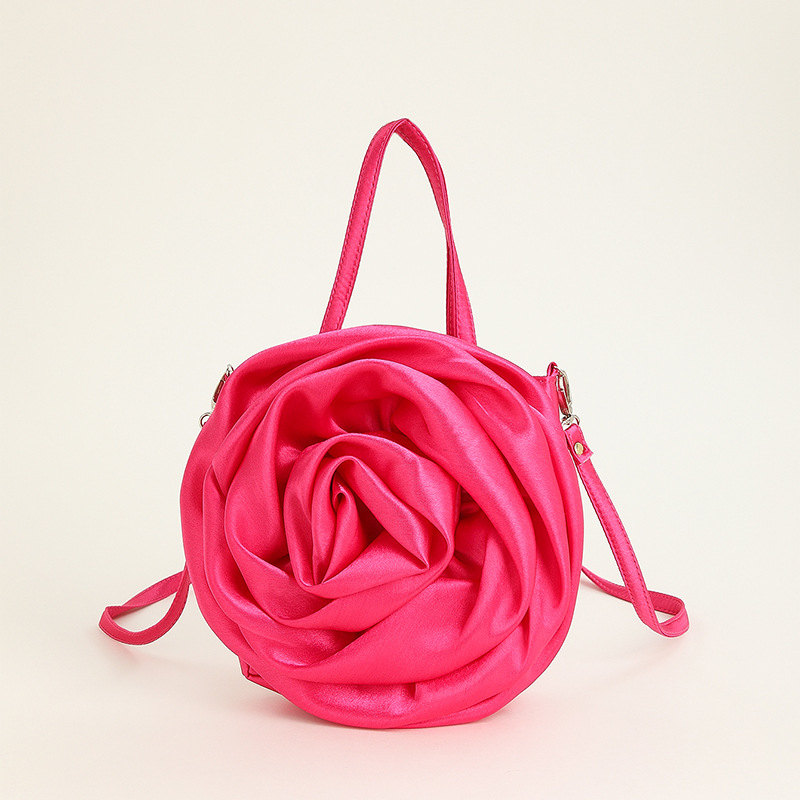 • 新しいスタイルのサテンの立体的なバラの花の形の手持ちクロスボディパーティー結婚式の女性のディナーバッグ