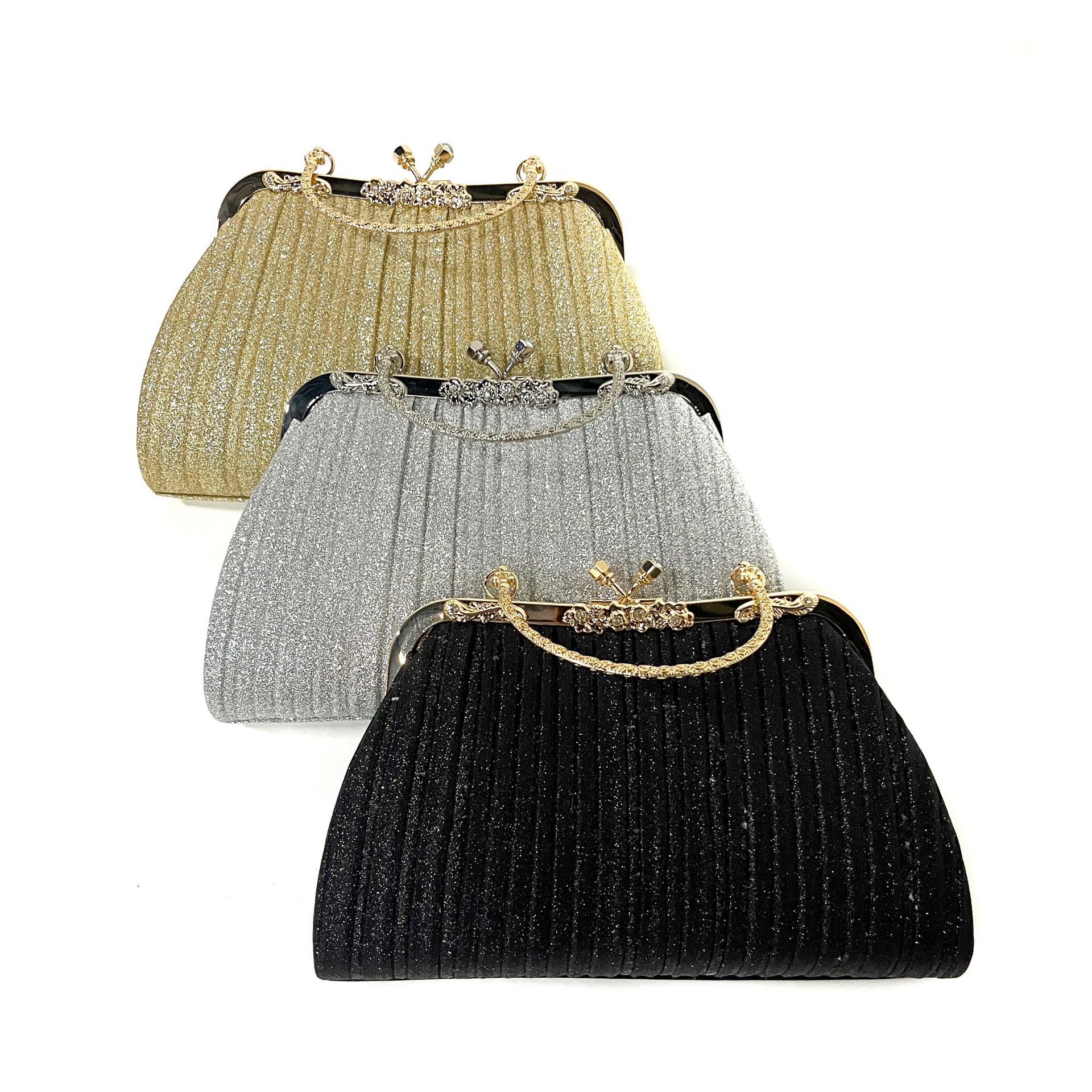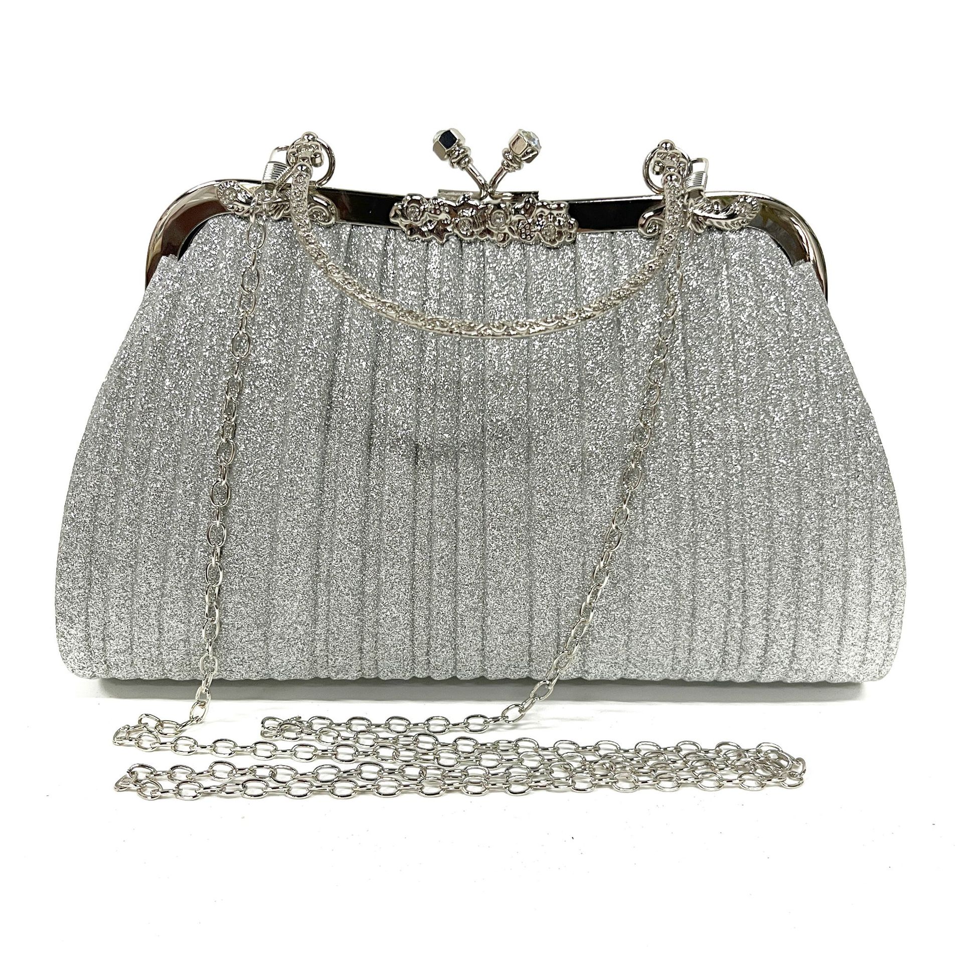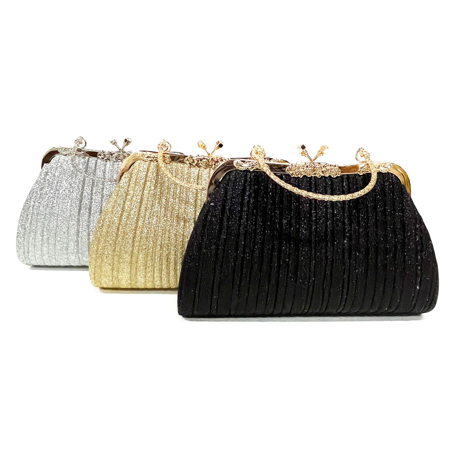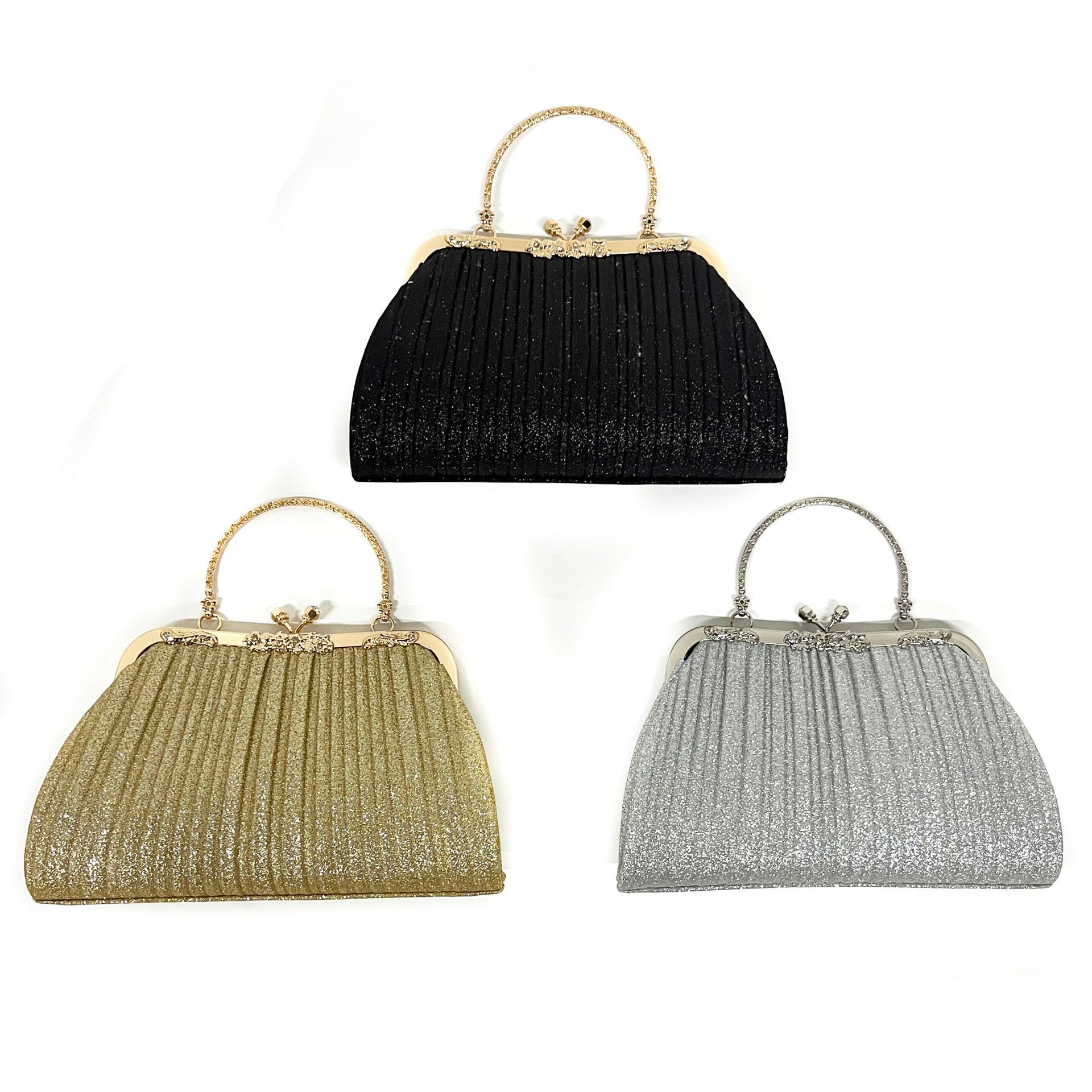 • イブニングバッグ レディースバッグ イブニングバッグ ファイングリッター プリーツ パーティー サシェ ドレス 花嫁 結婚式