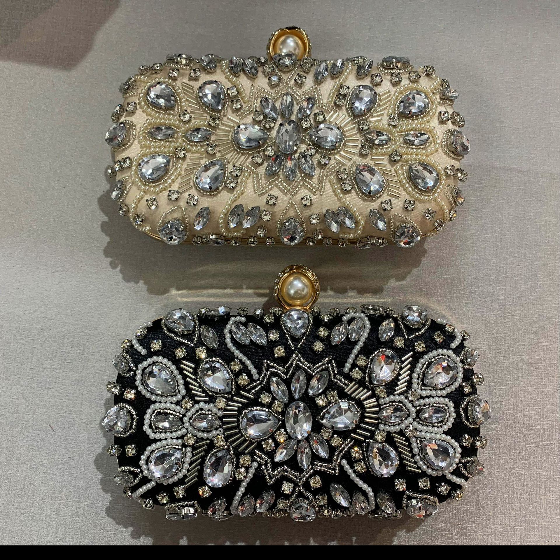 • 手作りビーズクラッチ、ラインストーンイブニングバッグ、チェーンバッグ