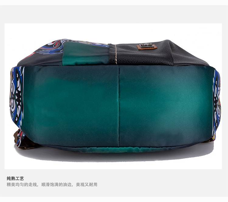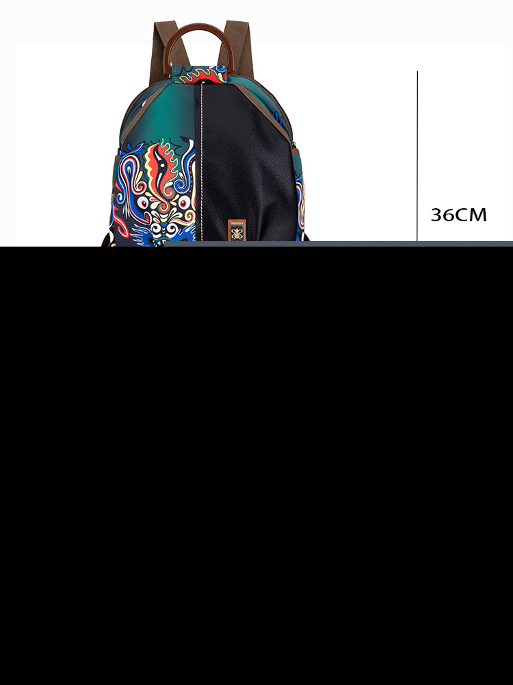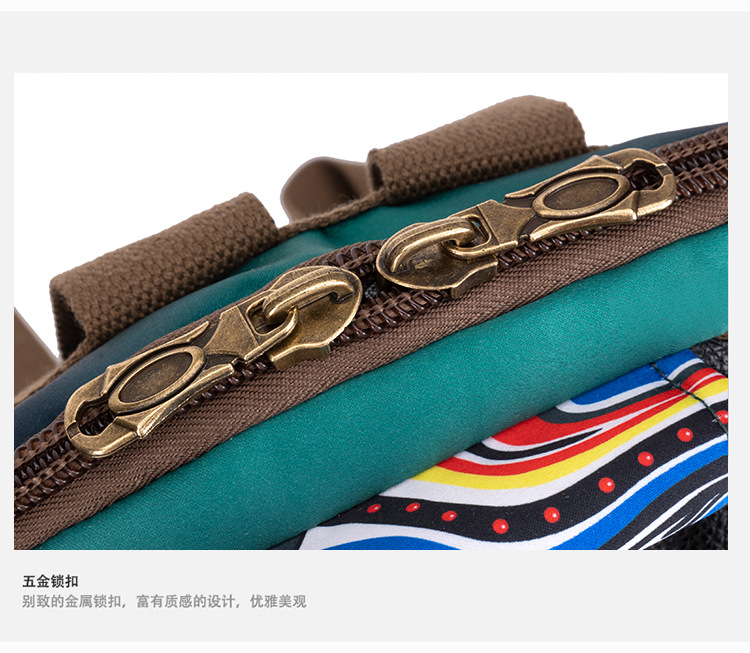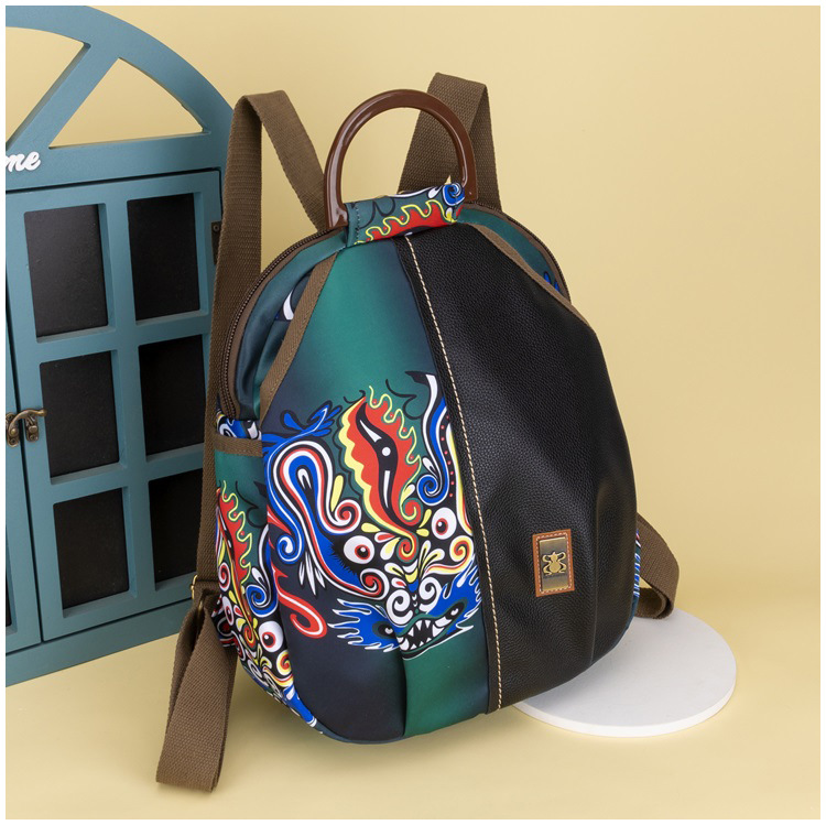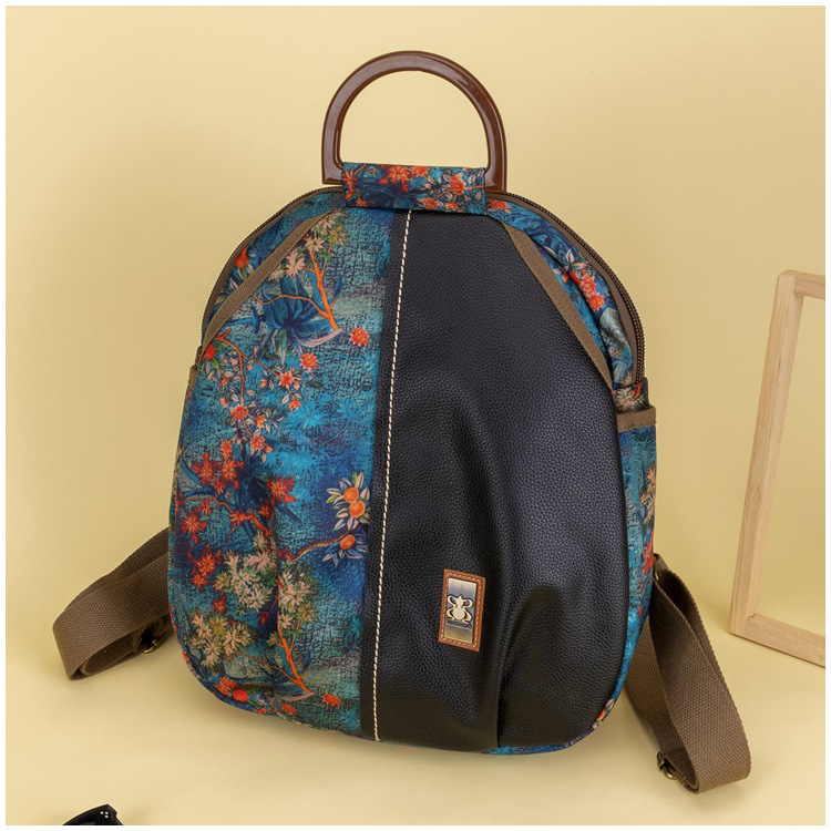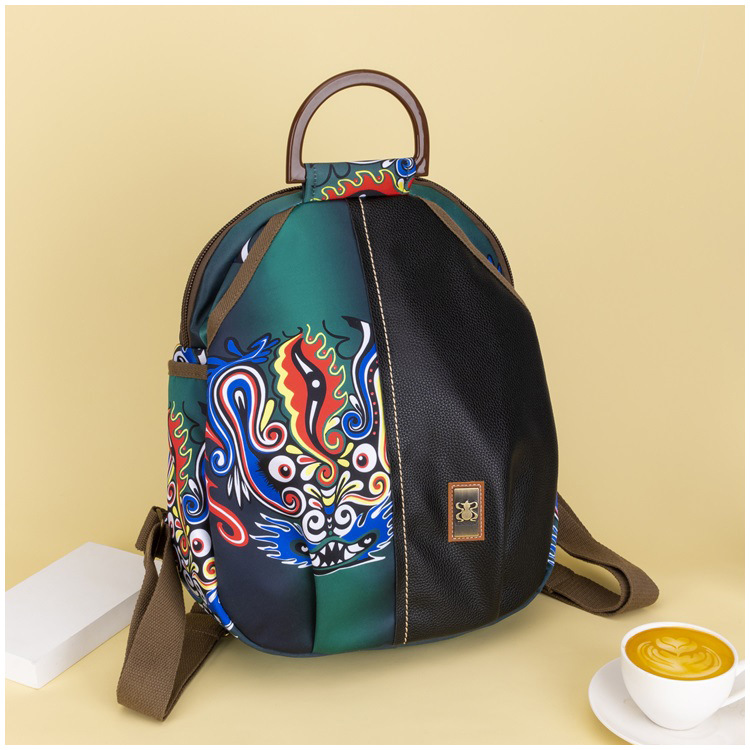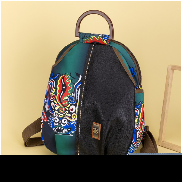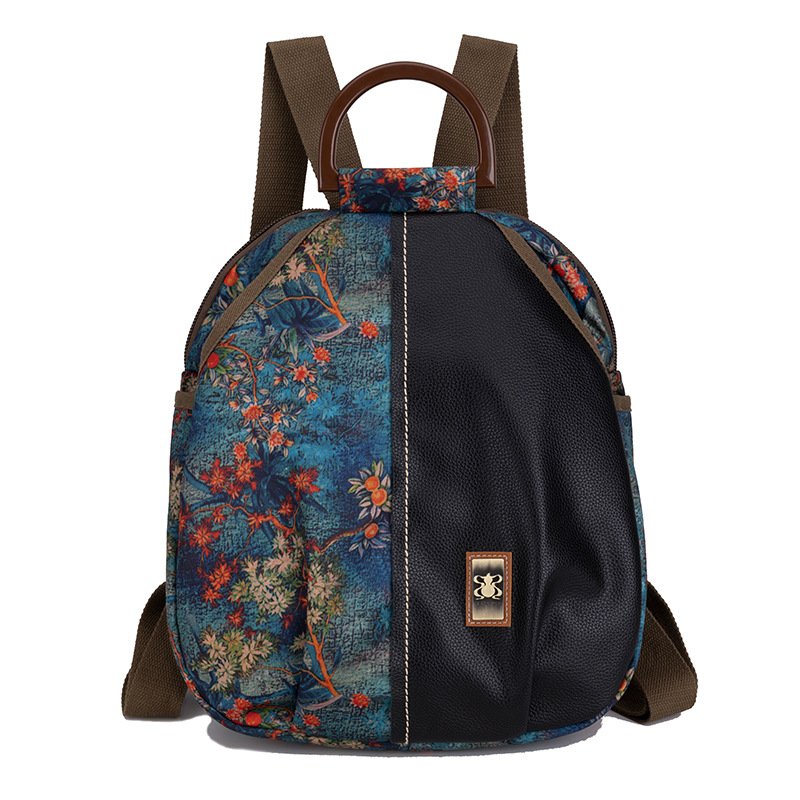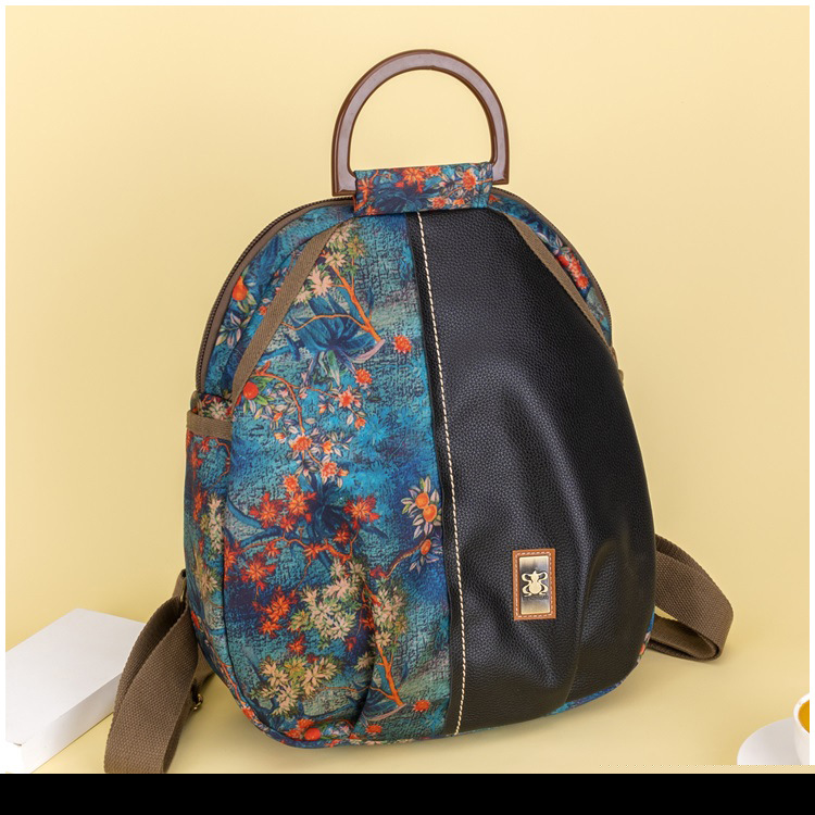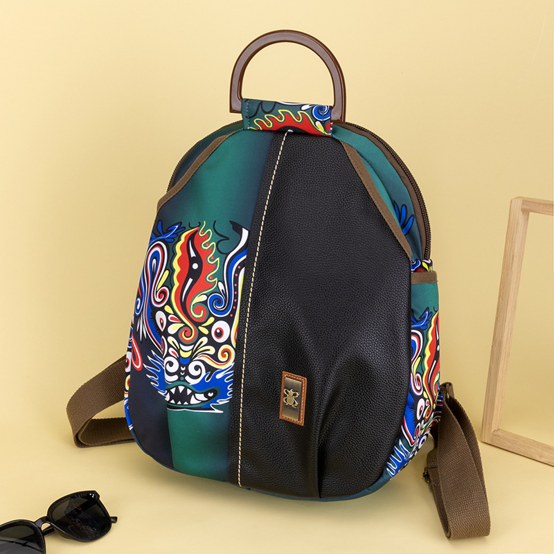 • エスニックスタイルのレトロなバックパックハンドバッグ、小さな旅行用バックパック、国民的ファッションナイロン生地、大容量プリントレディースバッグ