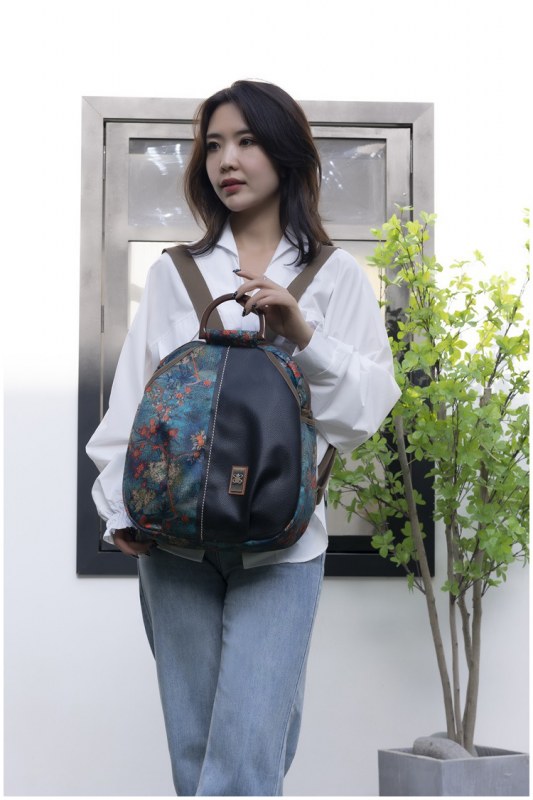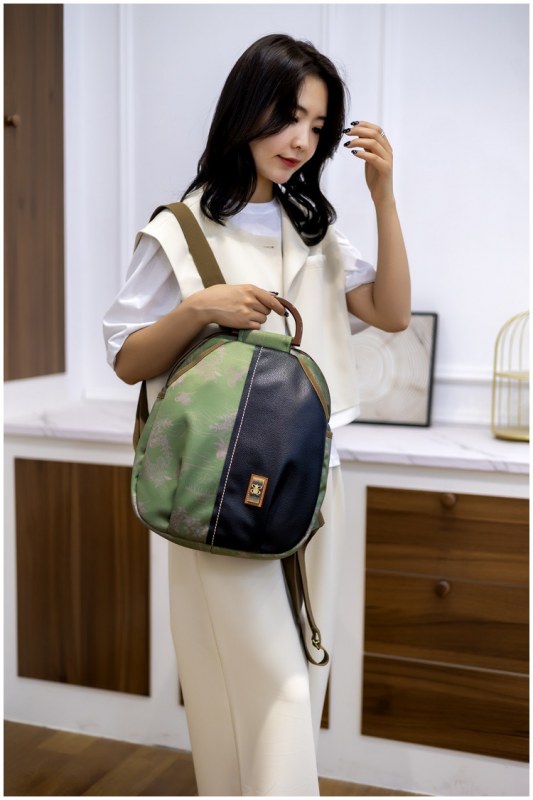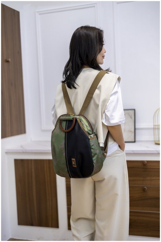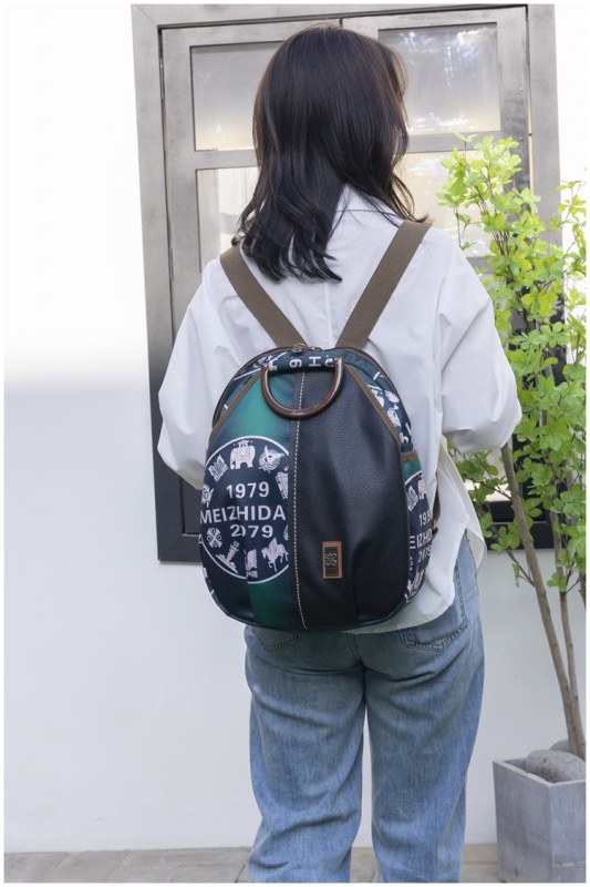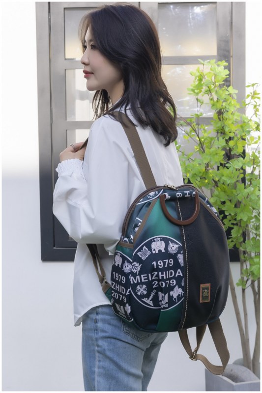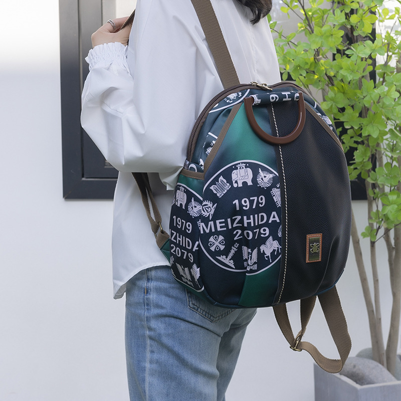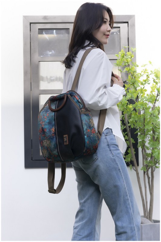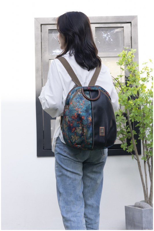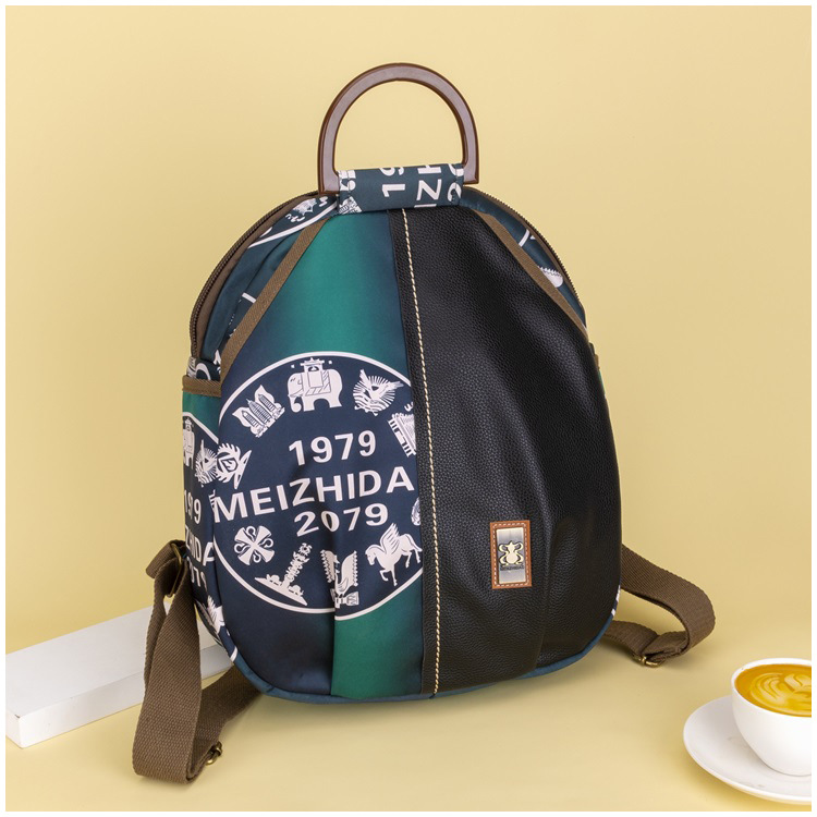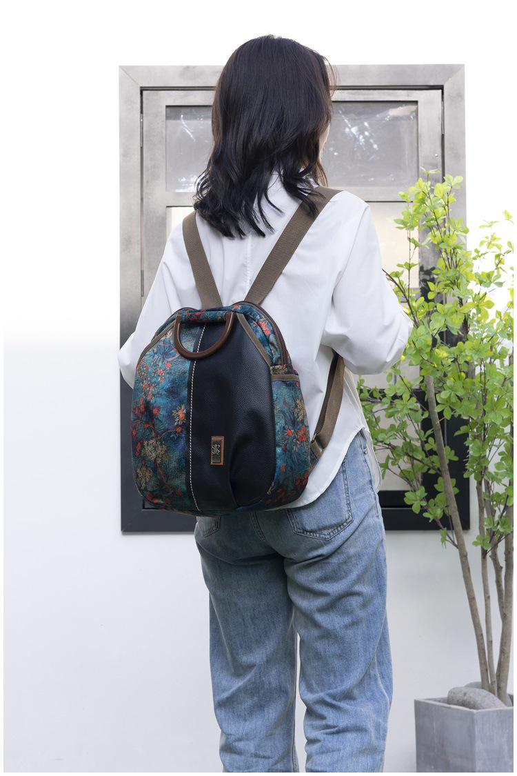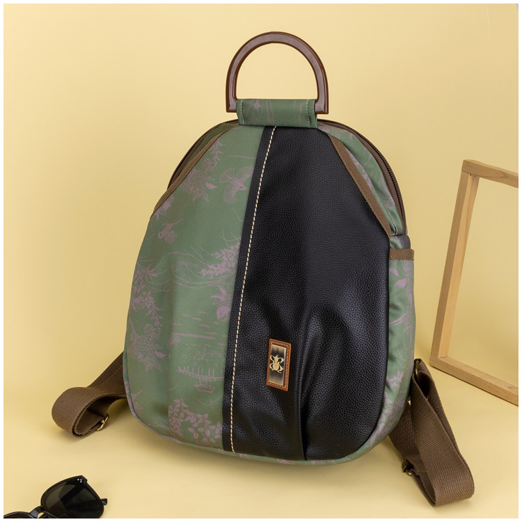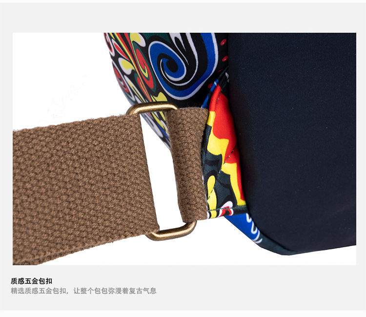 • エスニックスタイルのレトロなバックパックハンドバッグ、小さな旅行用バックパック、国民的ファッションナイロン生地、大容量プリントレディースバッグ